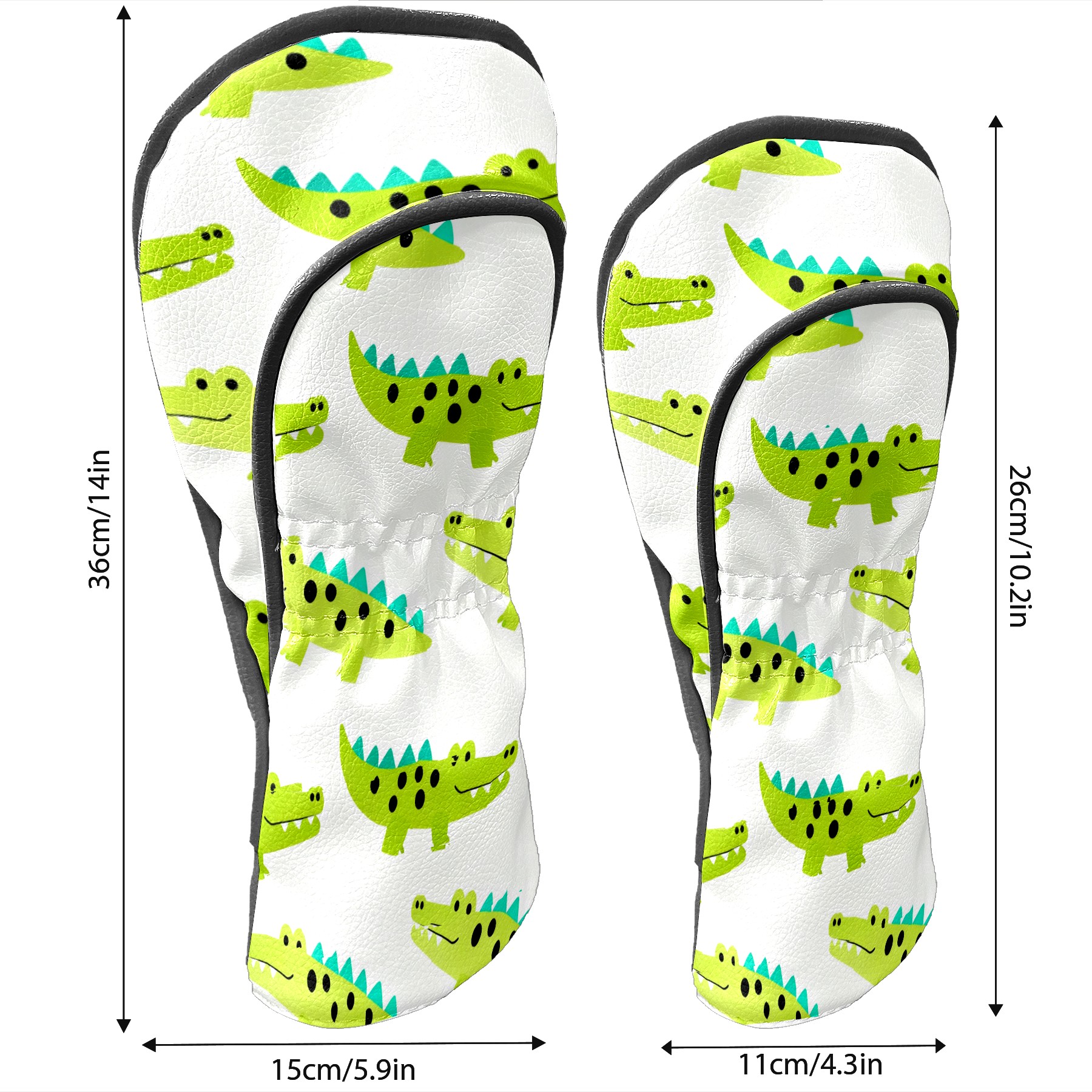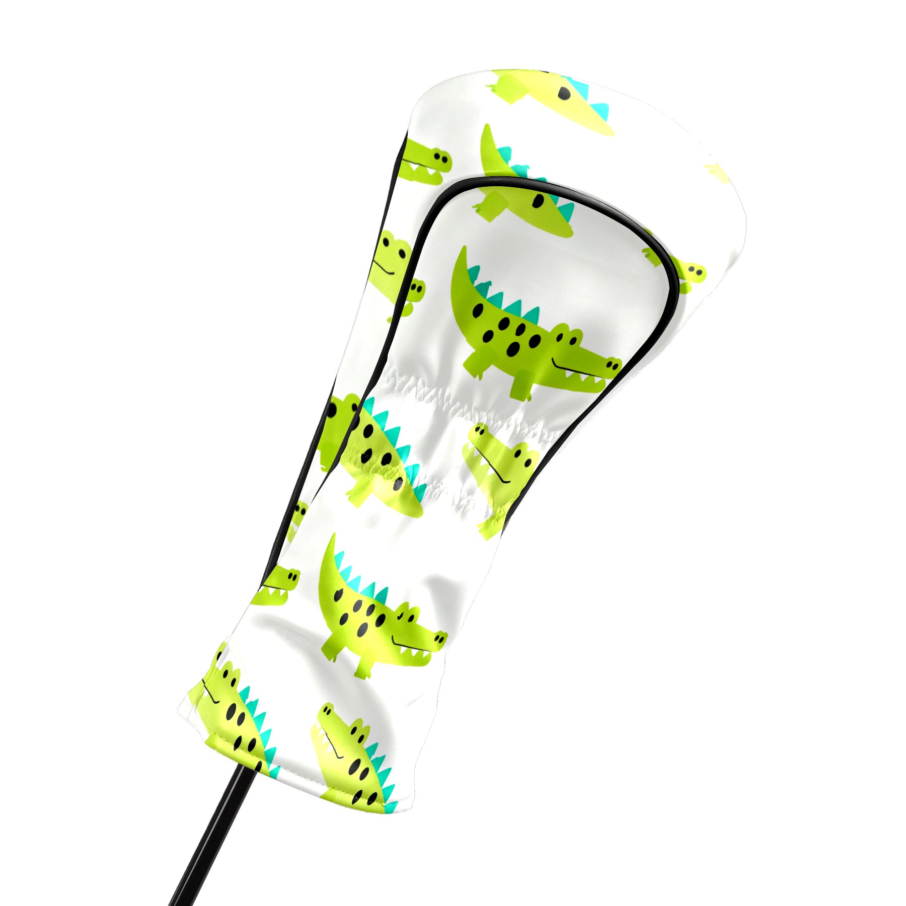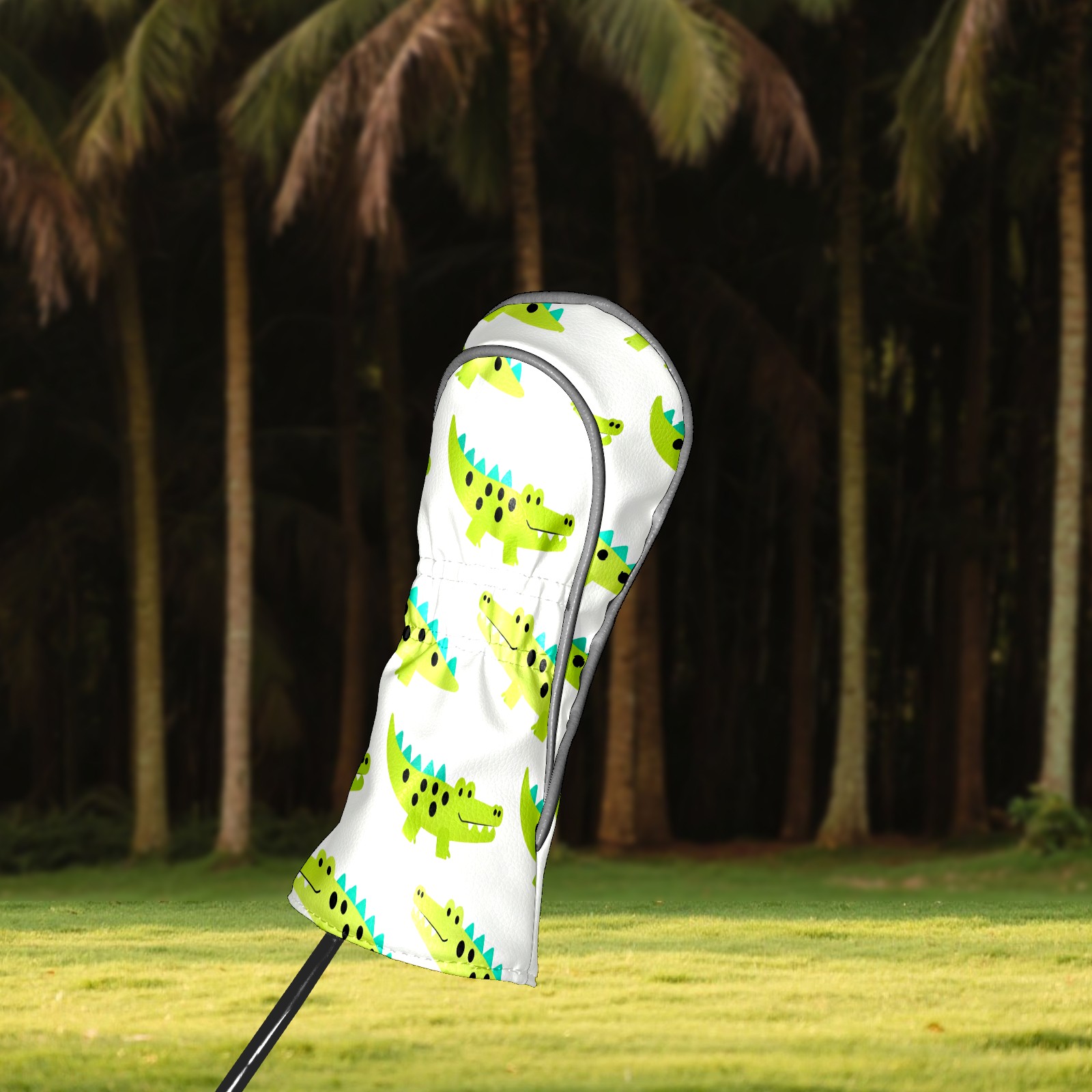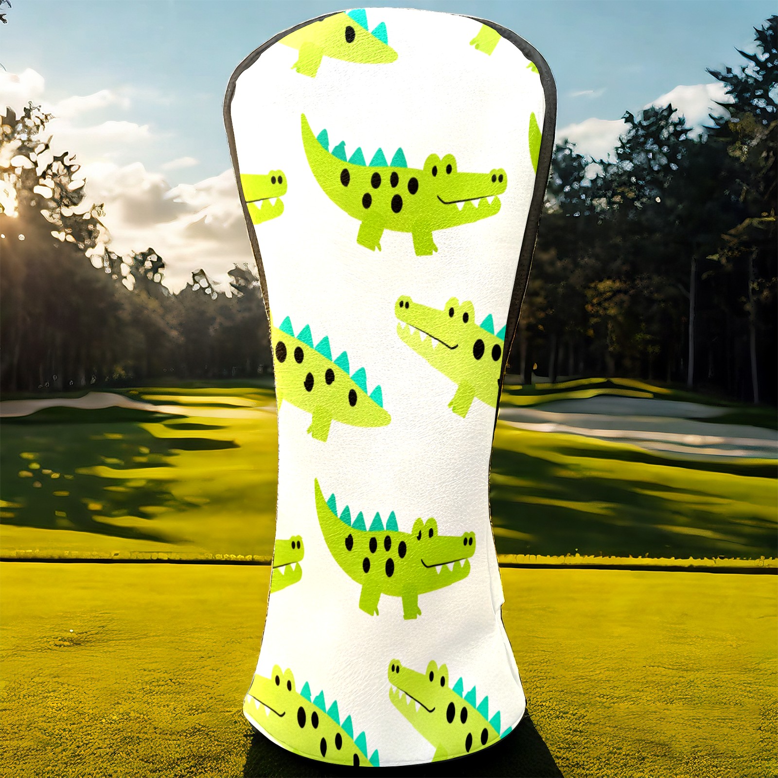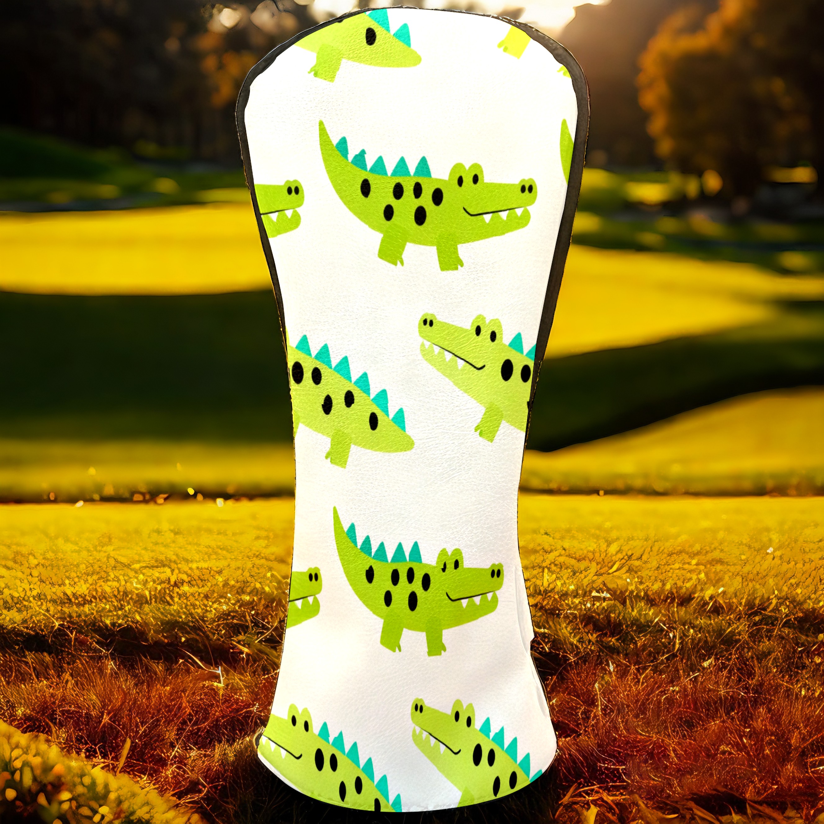 Golf Club Covers, Green Crocodile Premium PU Leather Driver Hybrid Putter Head Covers with Velvet Lining, Waterproof Golf Gifts for Men Women