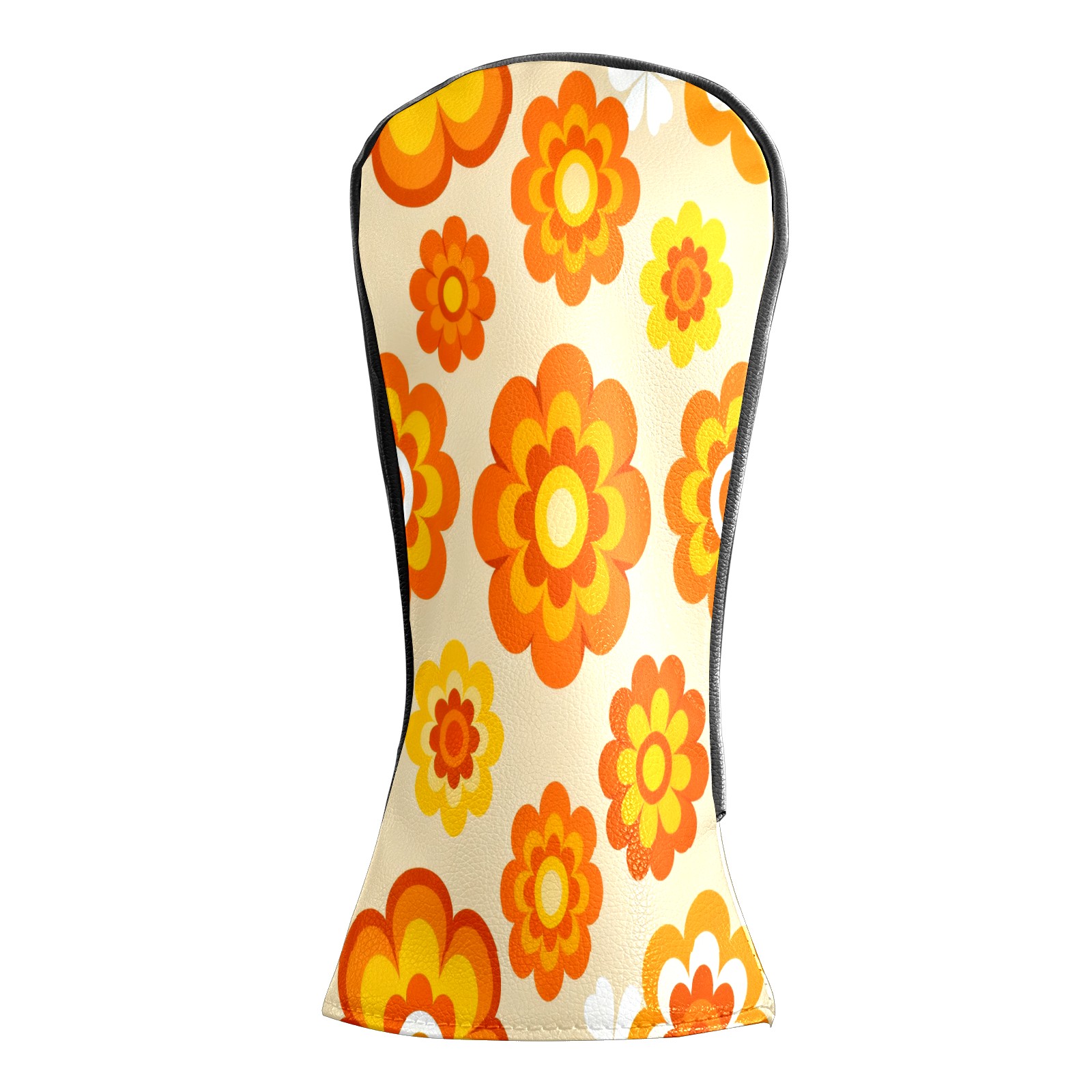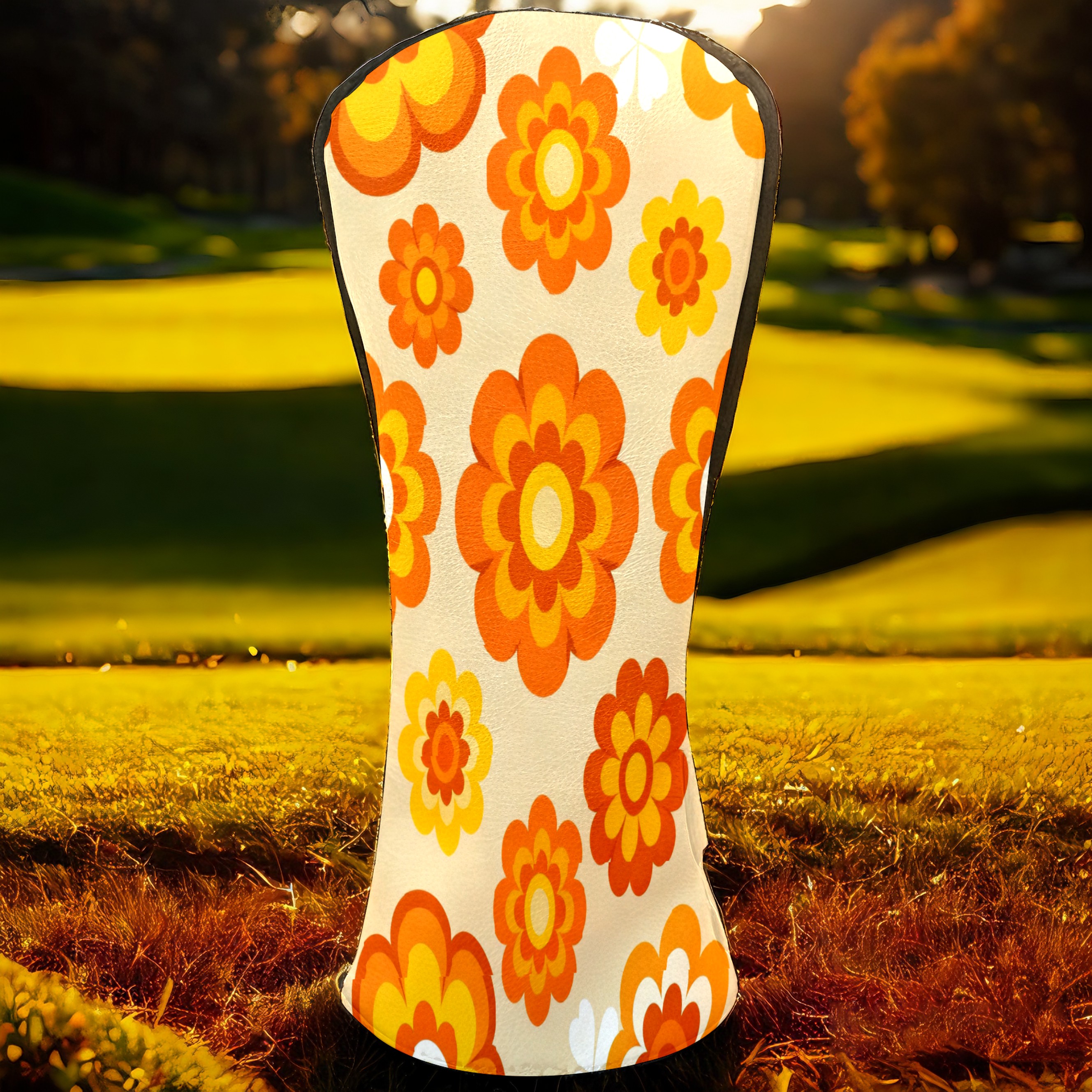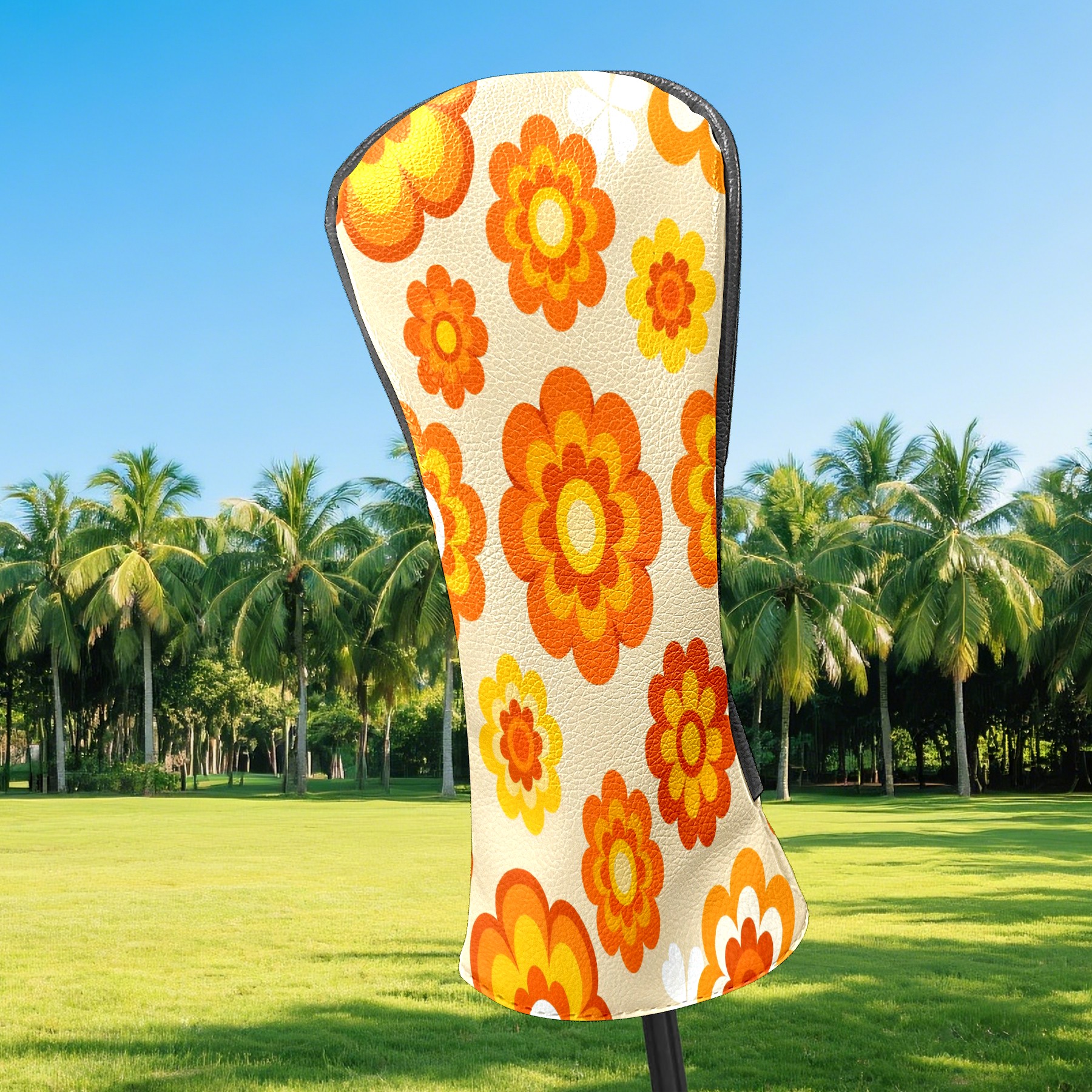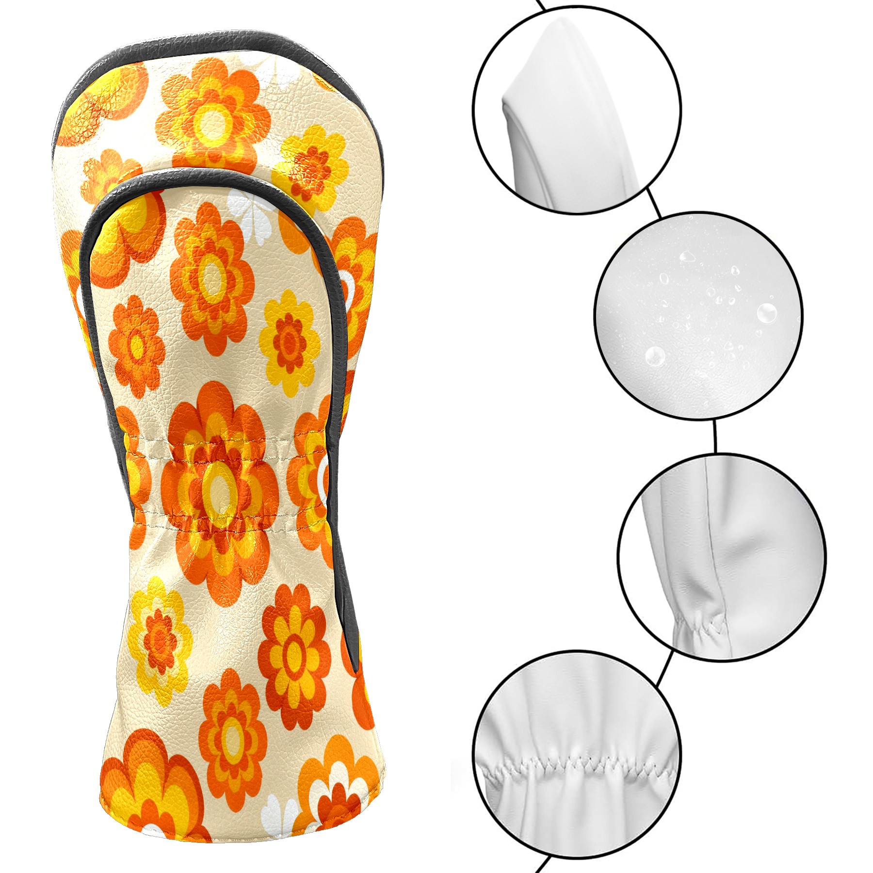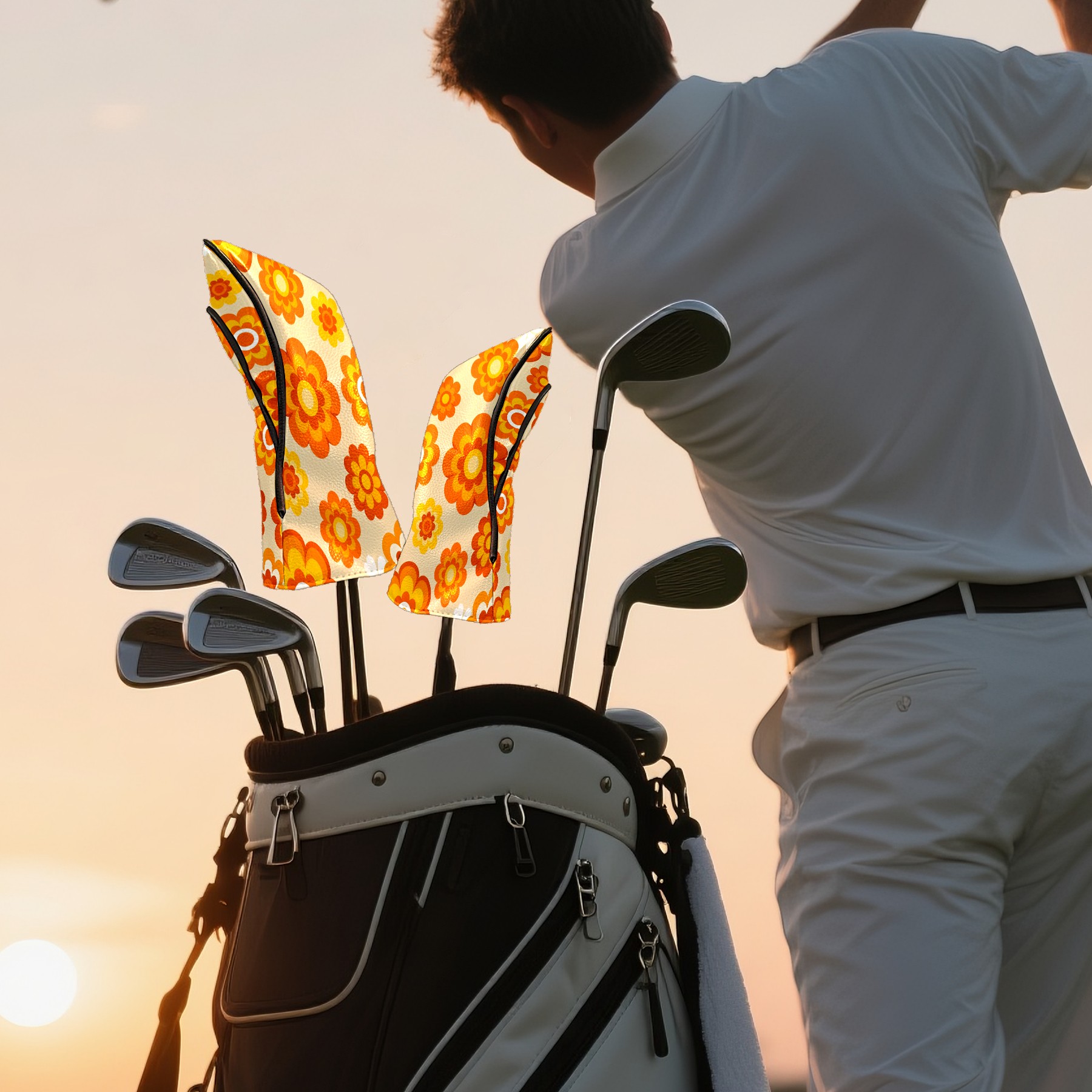 Golf Club Covers, Orange Flower Premium PU Leather Driver Hybrid Putter Head Covers with Velvet Lining, Waterproof Golf Gifts for Men Women