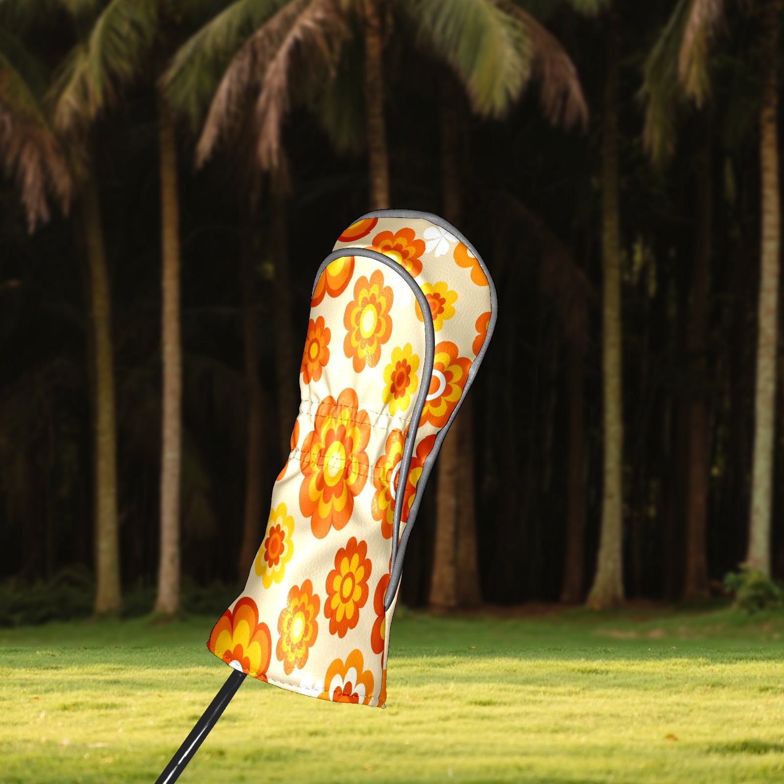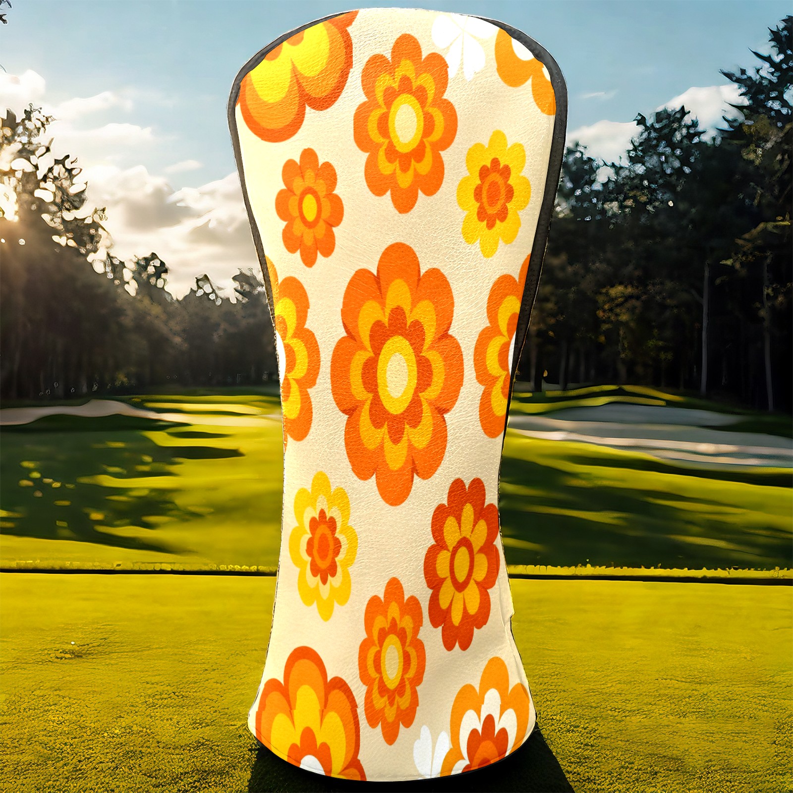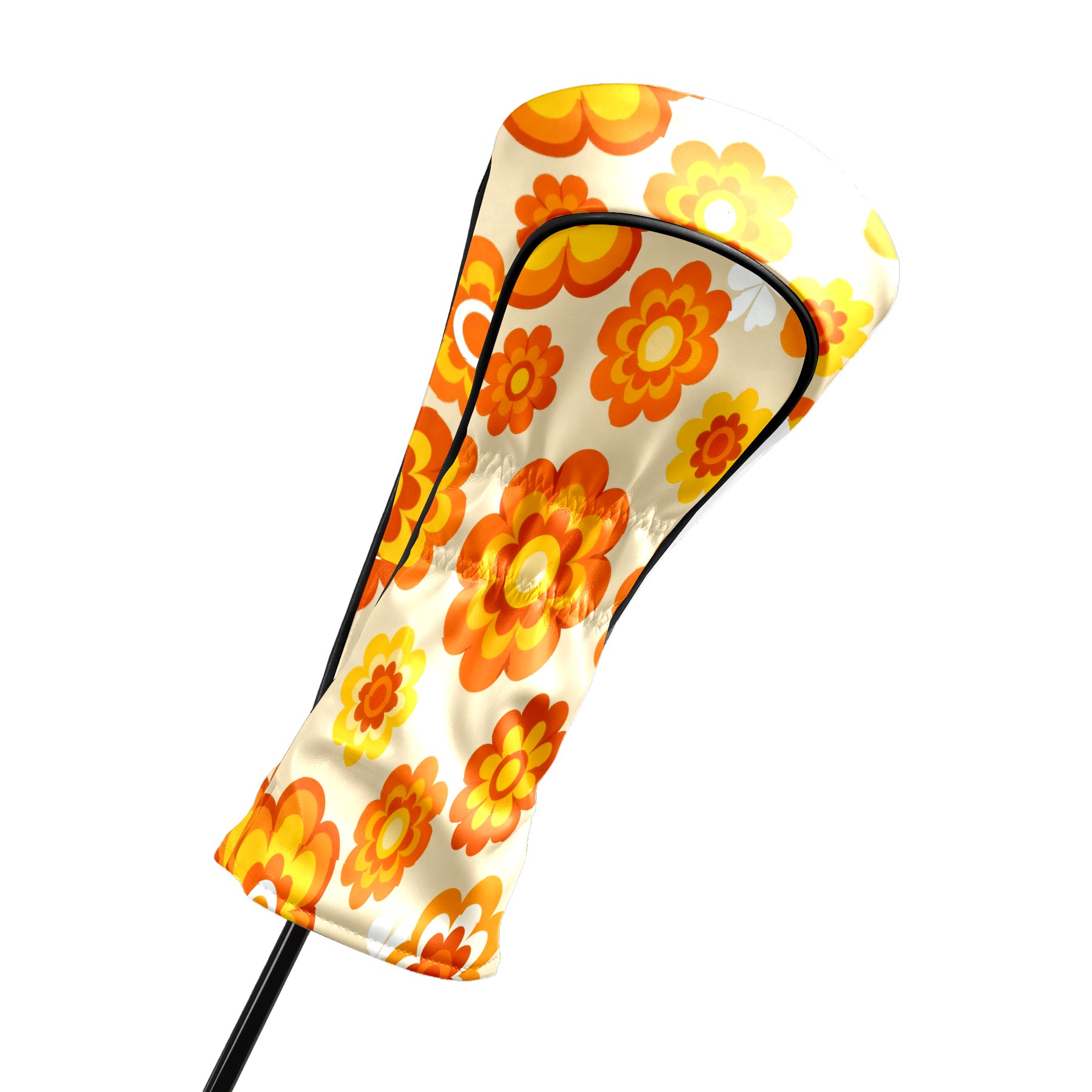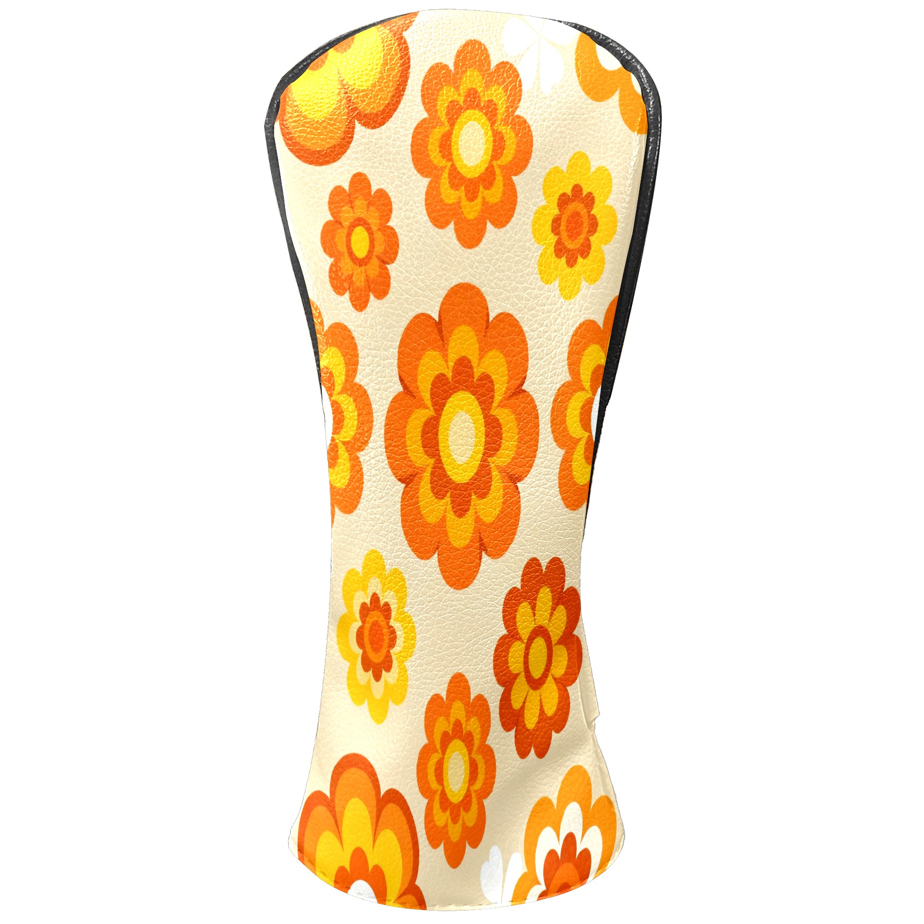 Golf Club Covers, Orange Flower Premium PU Leather Driver Hybrid Putter Head Covers with Velvet Lining, Waterproof Golf Gifts for Men Women