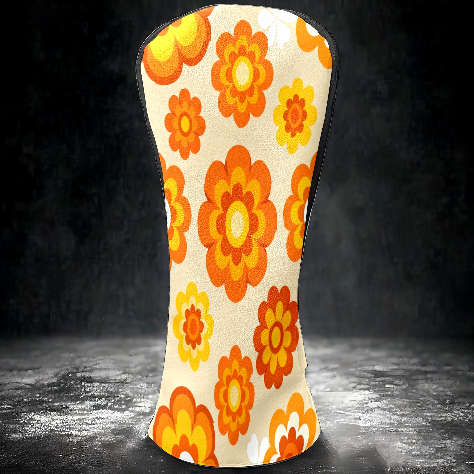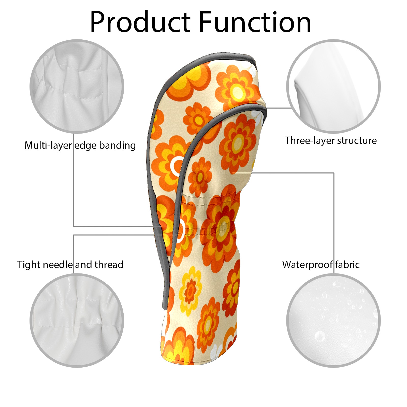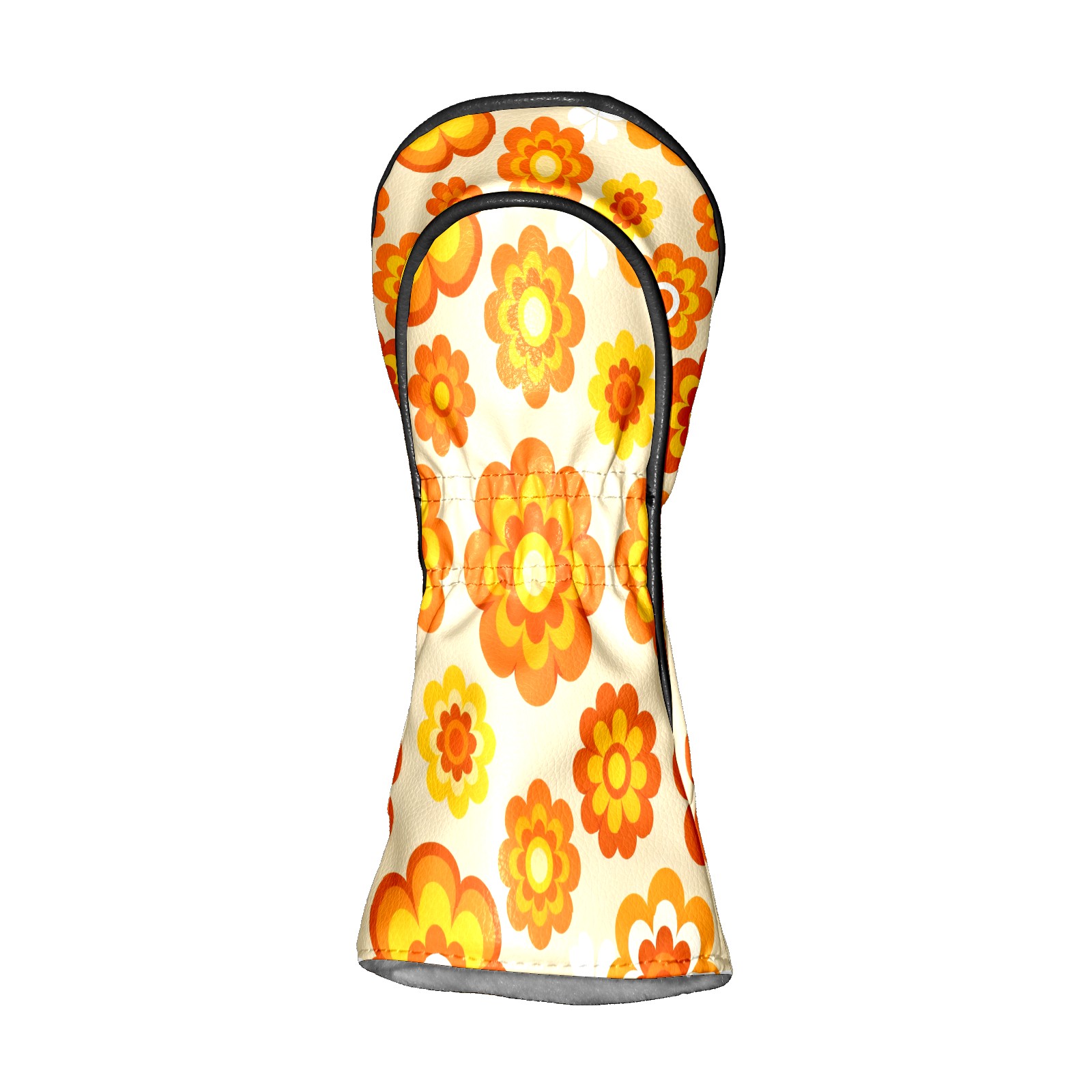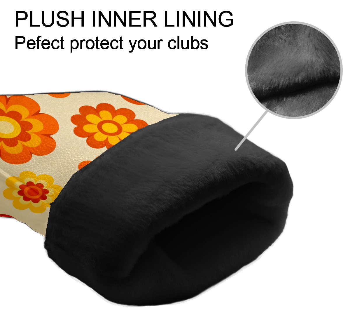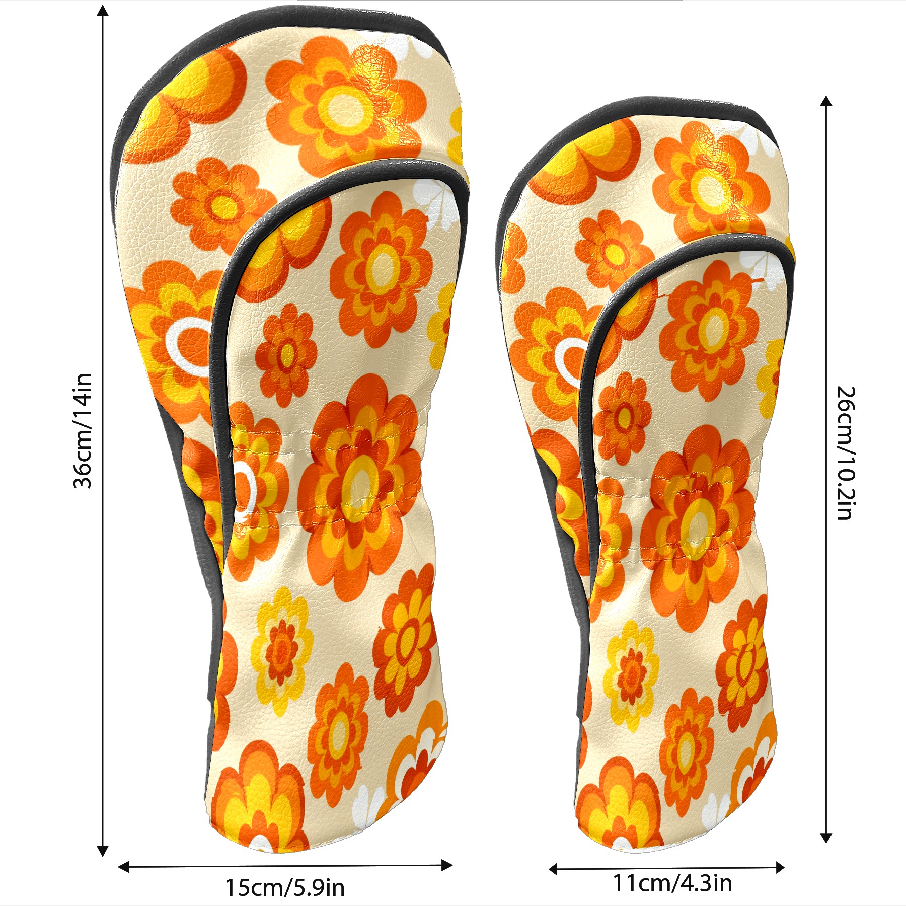 Golf Club Covers, Orange Flower Premium PU Leather Driver Hybrid Putter Head Covers with Velvet Lining, Waterproof Golf Gifts for Men Women