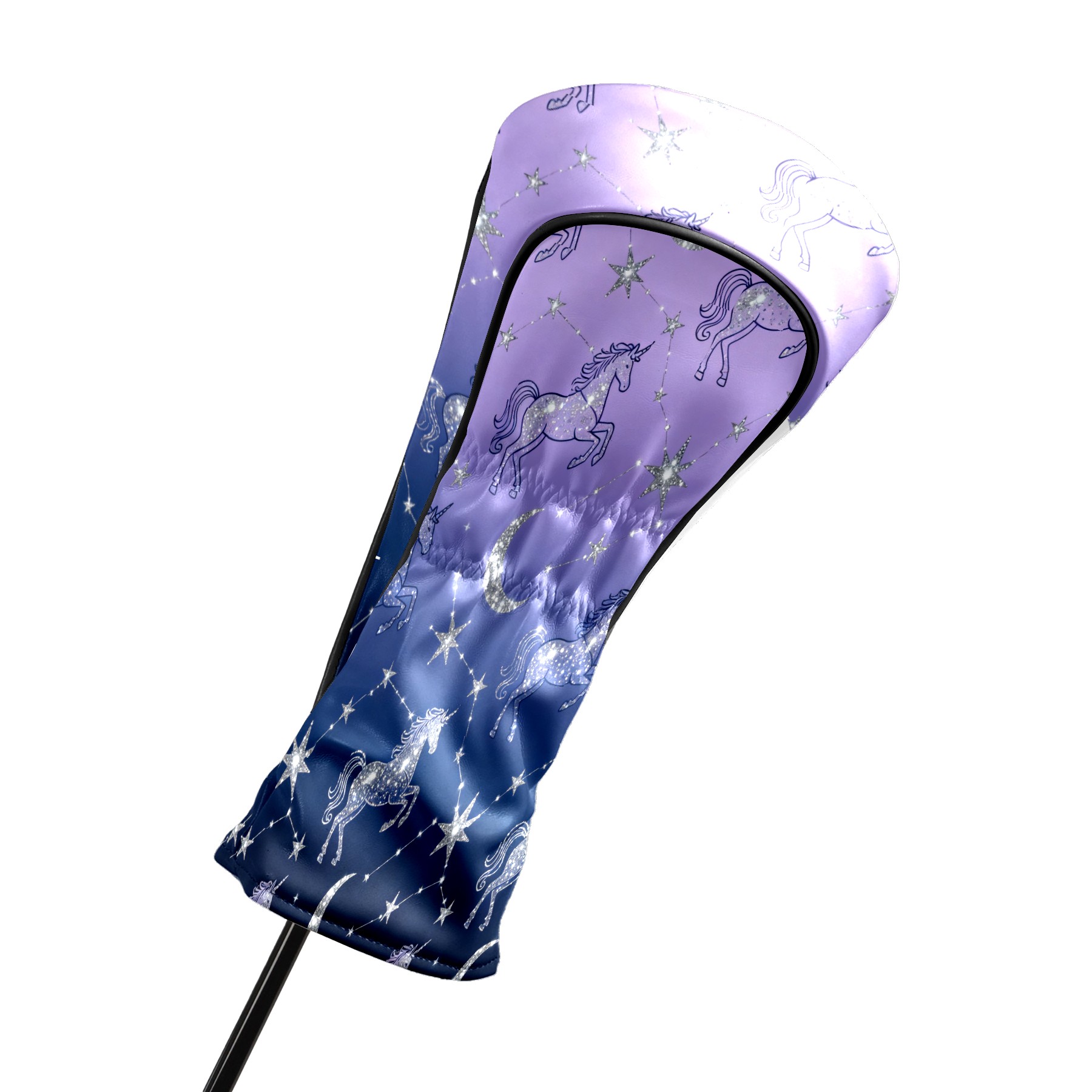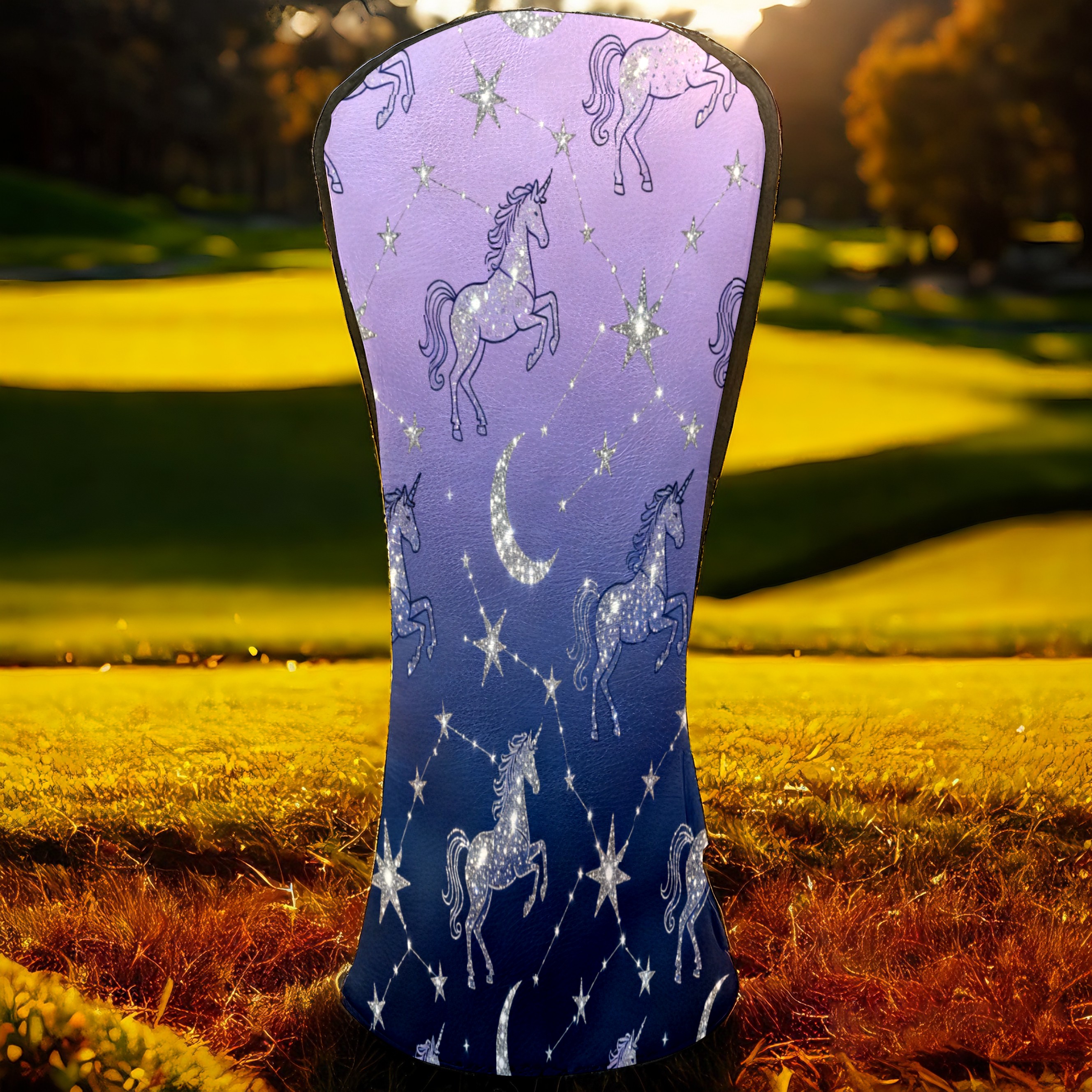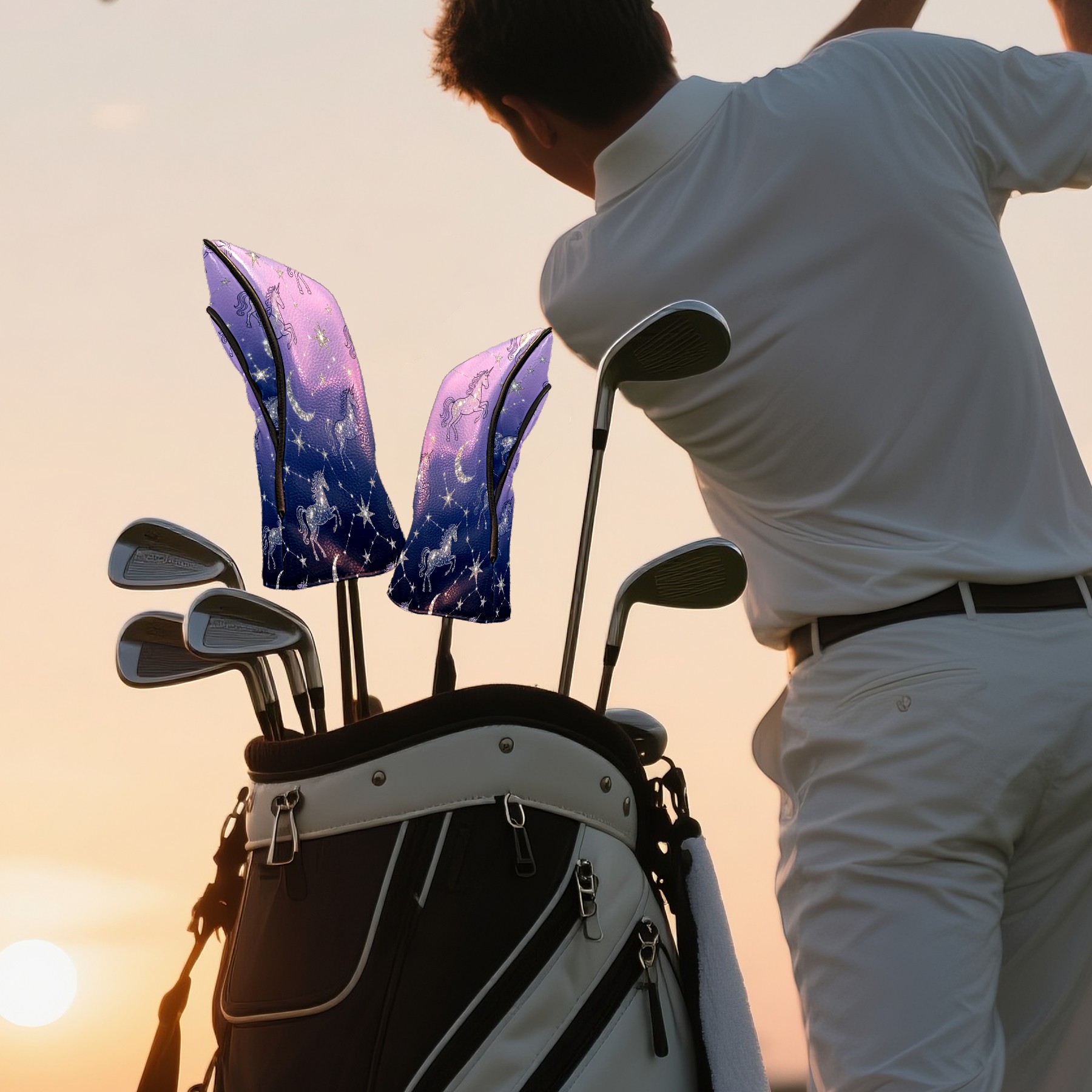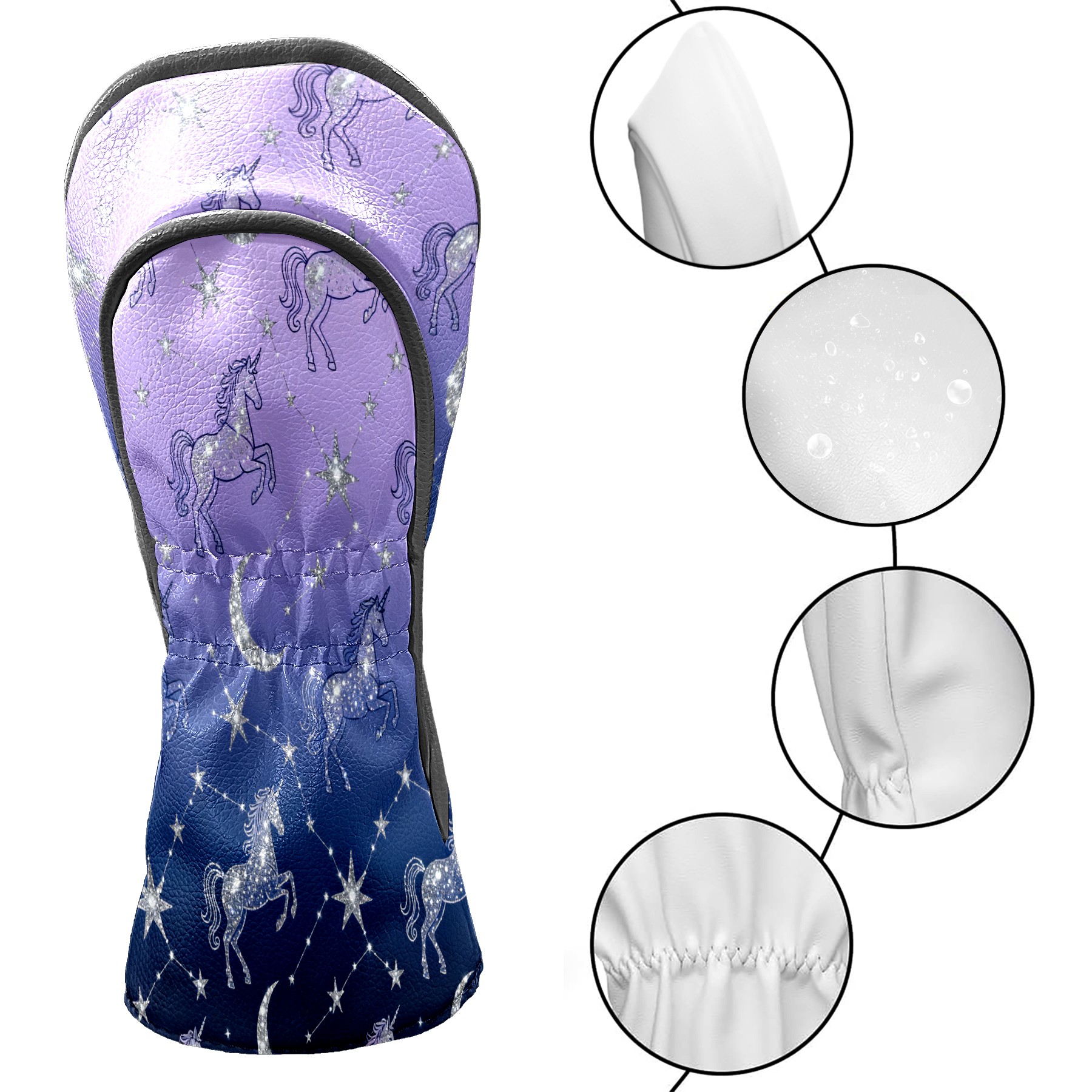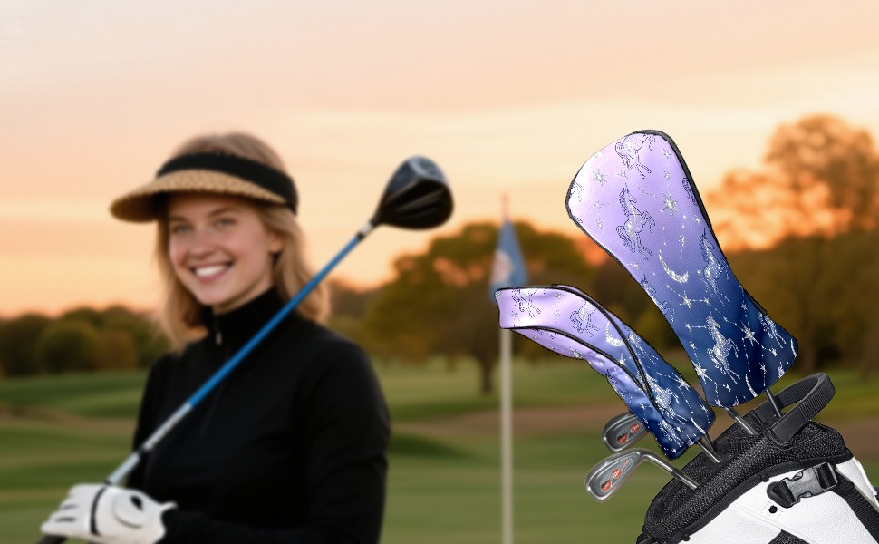 Golf Club Covers, Purple UnicornConstellation Premium PU Leather Driver Hybrid Putter Head Covers with Velvet Lining, Waterproof Golf Gifts for Men Women