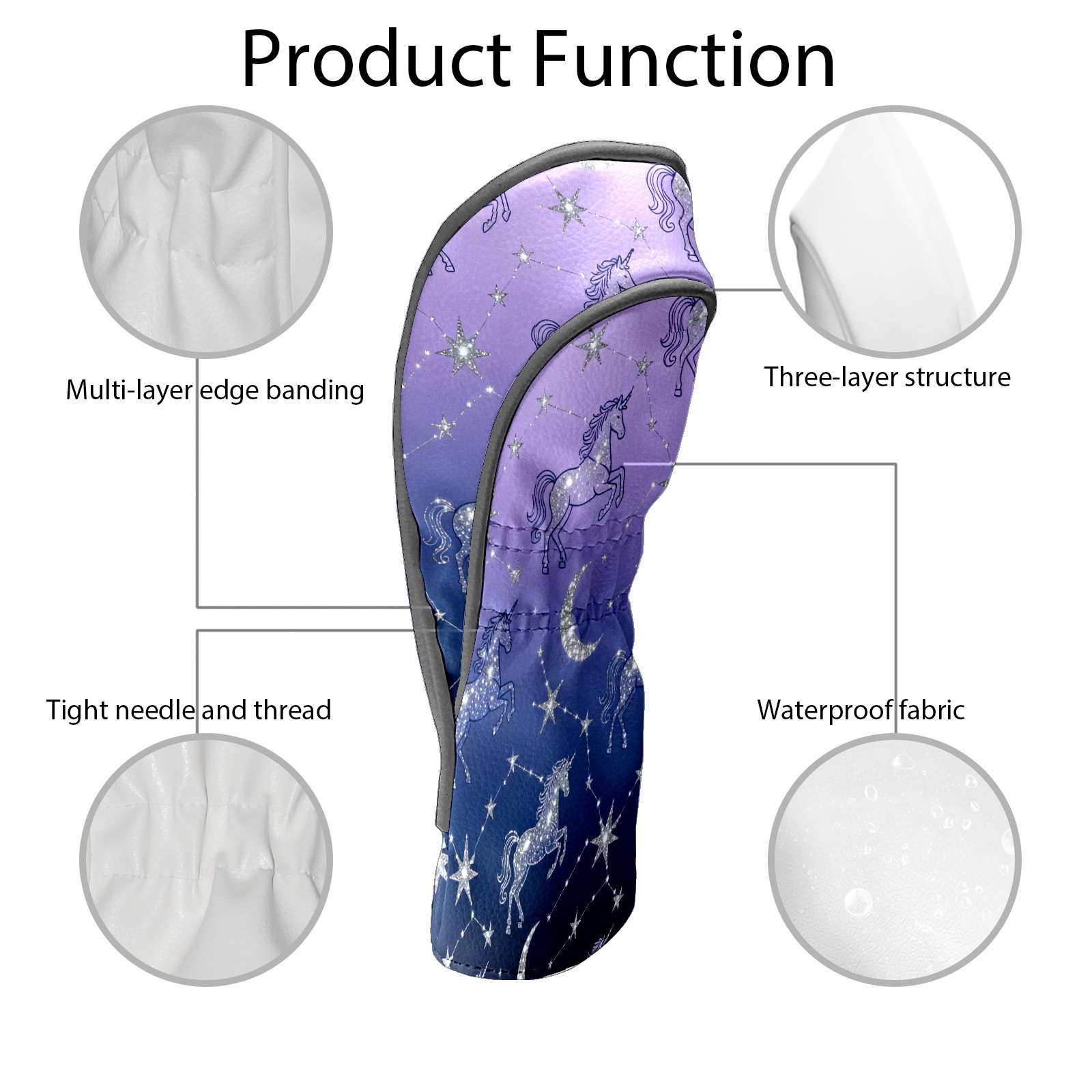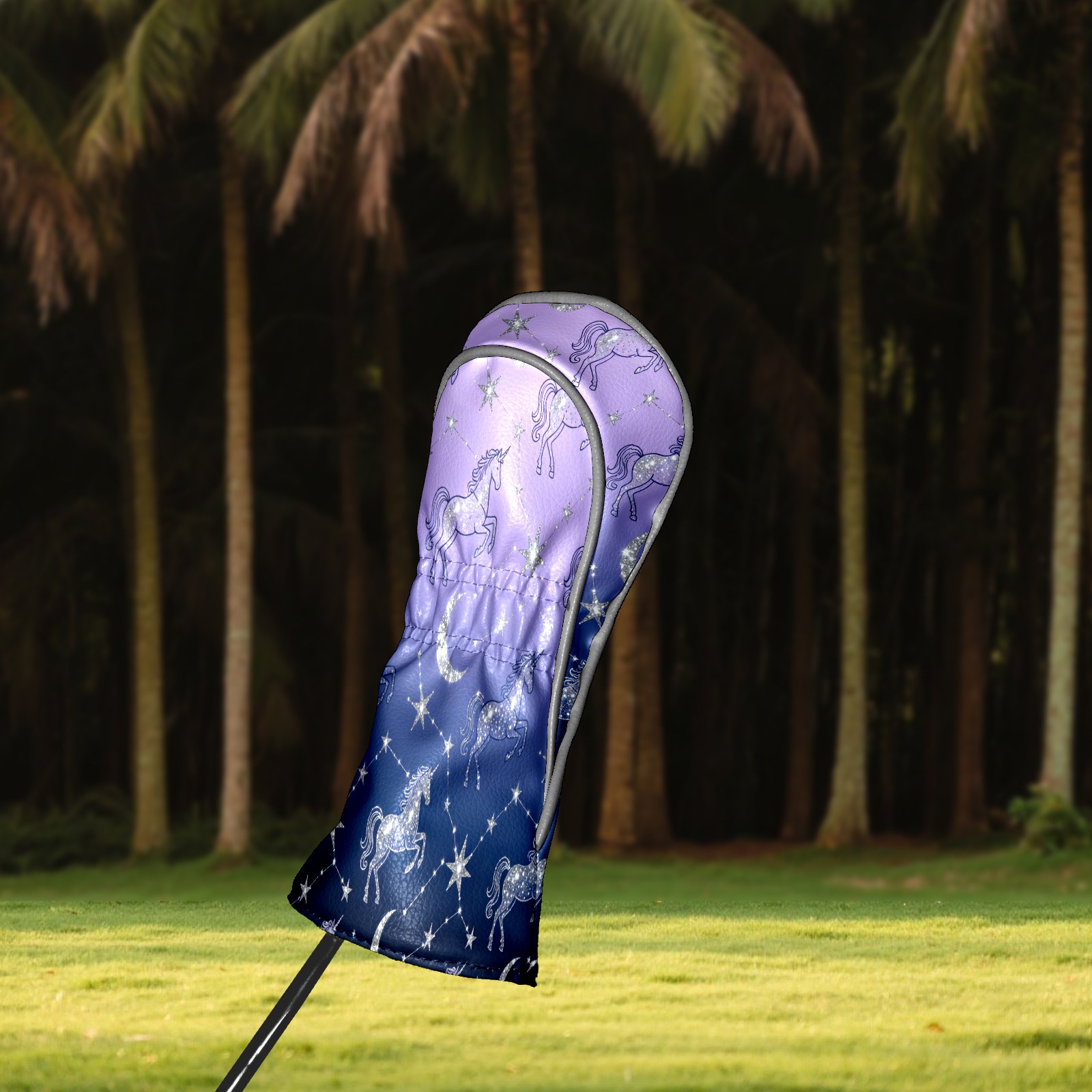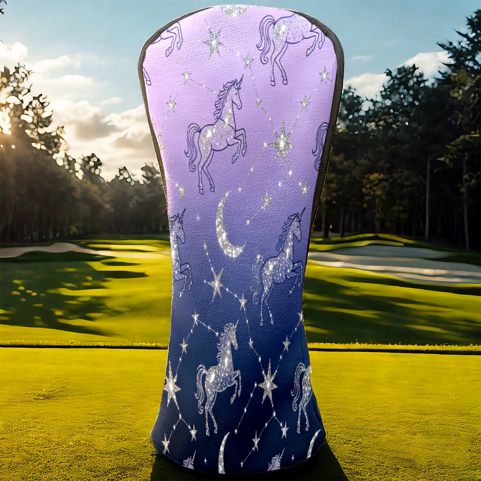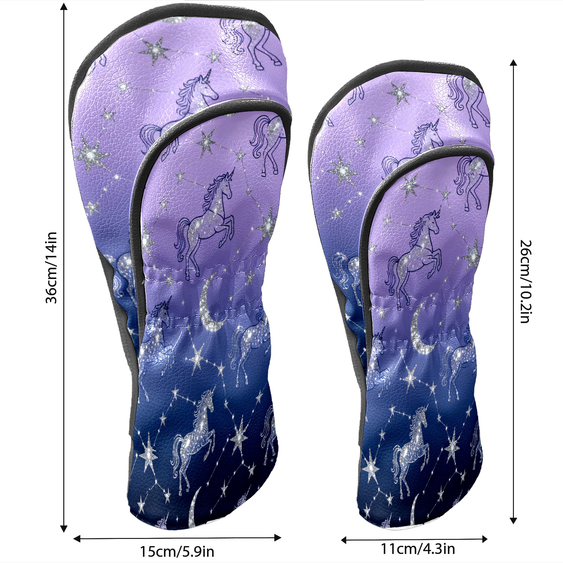 Golf Club Covers, Purple UnicornConstellation Premium PU Leather Driver Hybrid Putter Head Covers with Velvet Lining, Waterproof Golf Gifts for Men Women