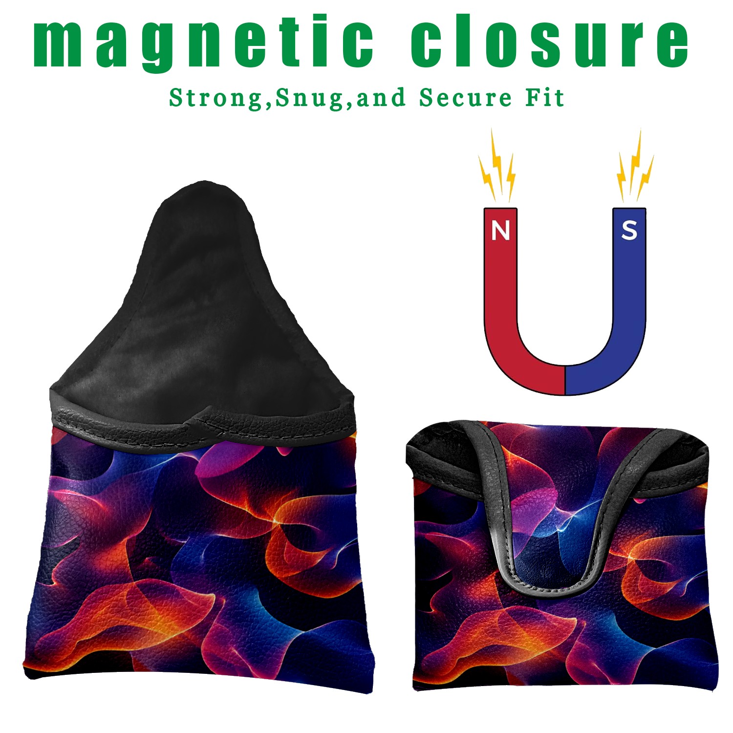 Putter Cover, Golf Club Headcovers BlueRed Flame Premium PU Leather with Velvet Lining, Waterproof Putter Head Cover for Men Women (5.1"x5.5")