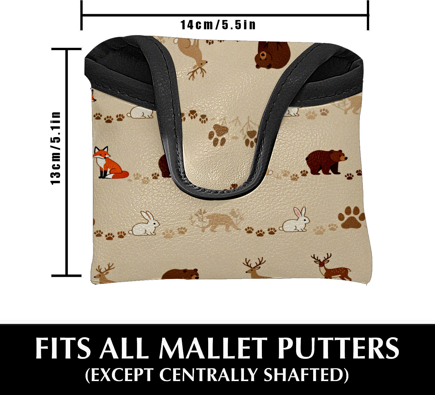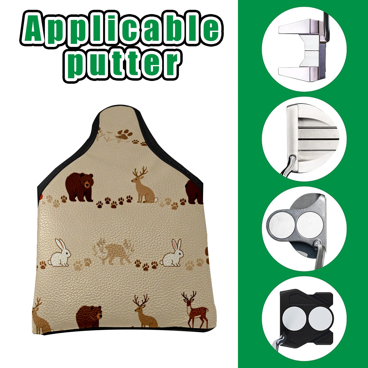 Putter Cover, Golf Club Headcovers Beige ForestAnimal Premium PU Leather with Velvet Lining, Waterproof Putter Head Cover for Men Women (5.1"x5.5")