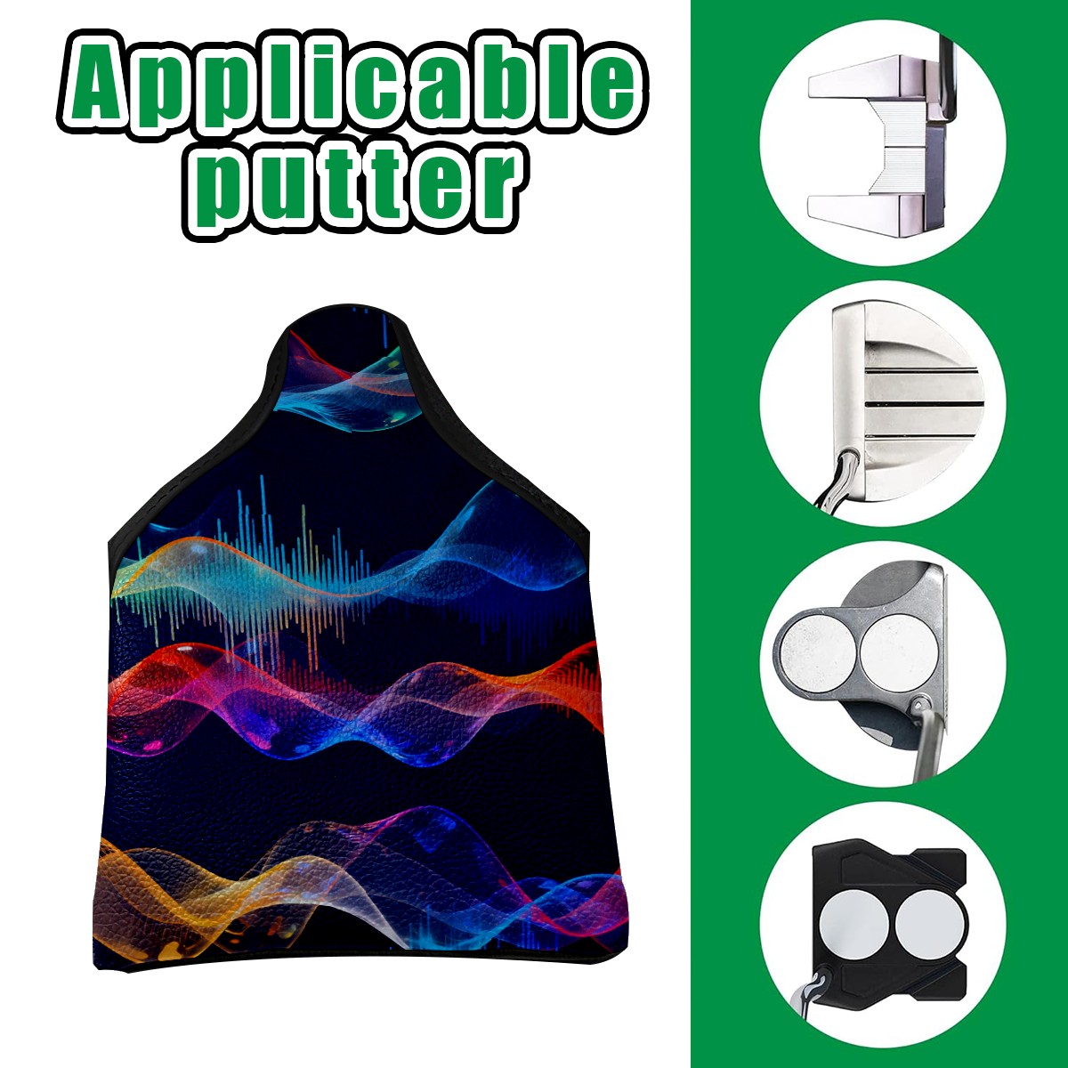 Putter Cover, Golf Club Headcovers Blue Wave Premium PU Leather with Velvet Lining, Waterproof Putter Head Cover for Men Women (5.1"x5.5")