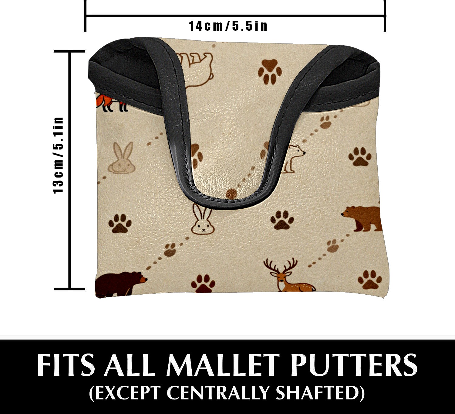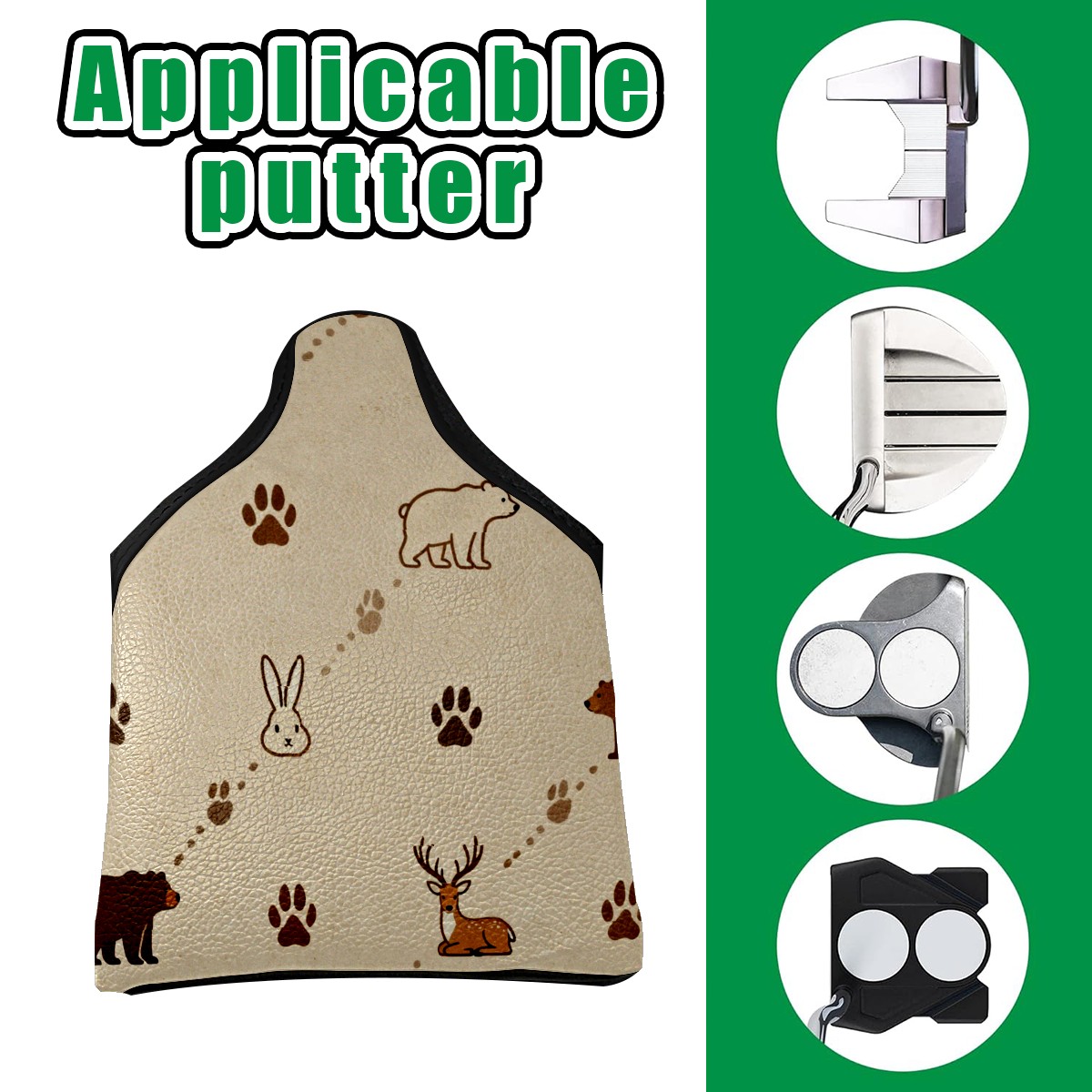 Putter Cover, Golf Club Headcovers Beige AnimalPaw Premium PU Leather with Velvet Lining, Waterproof Putter Head Cover for Men Women (5.1"x5.5")