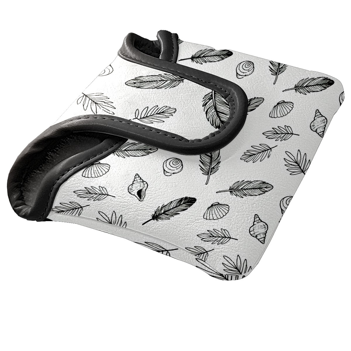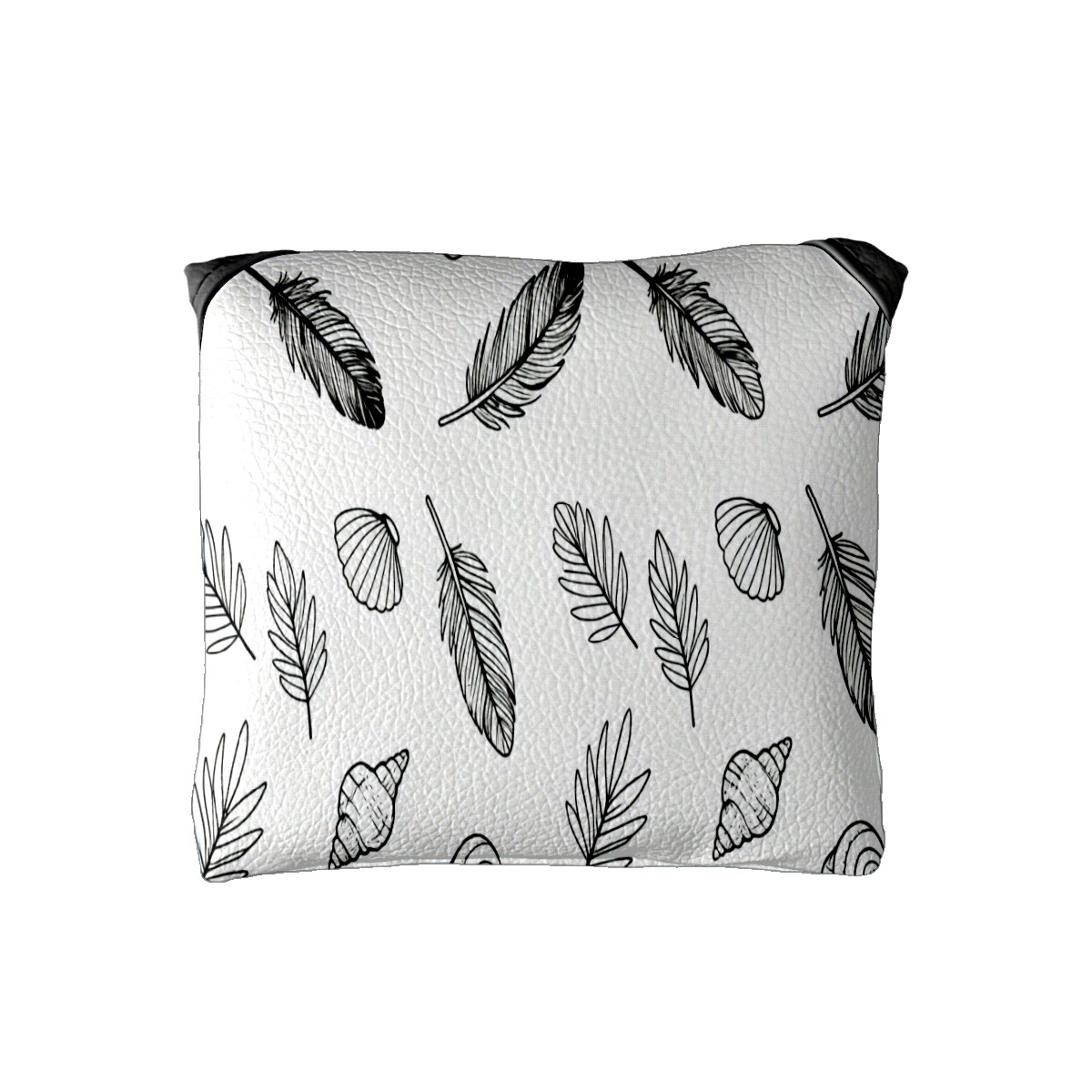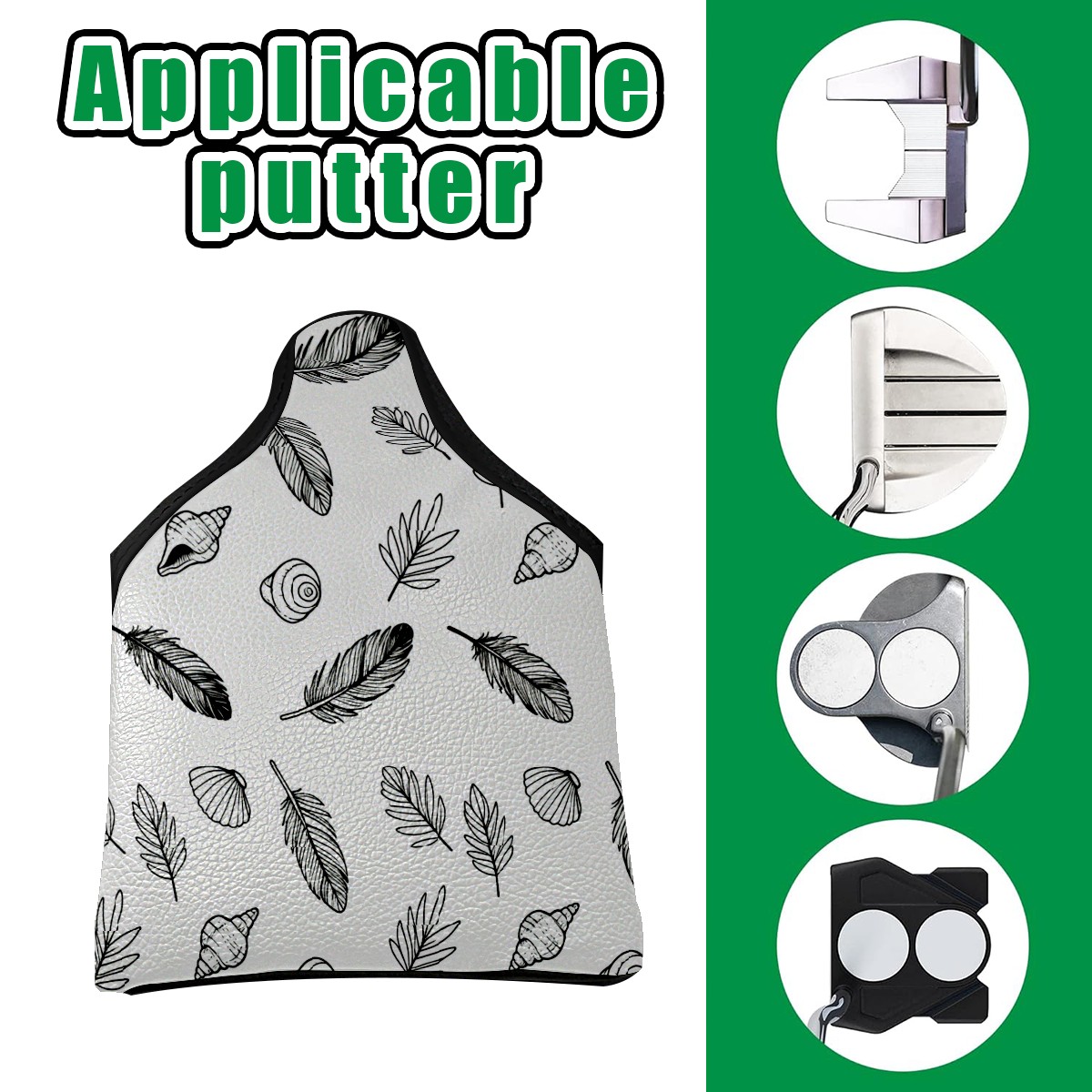 Putter Cover, Golf Club Headcovers White LeafFeather Premium PU Leather with Velvet Lining, Waterproof Putter Head Cover for Men Women (5.1"x5.5")