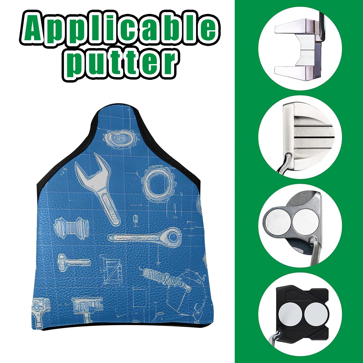 Putter Cover, Golf Club Headcovers LightBlue ToolGear Premium PU Leather with Velvet Lining, Waterproof Putter Head Cover for Men Women (5.1"x5.5")