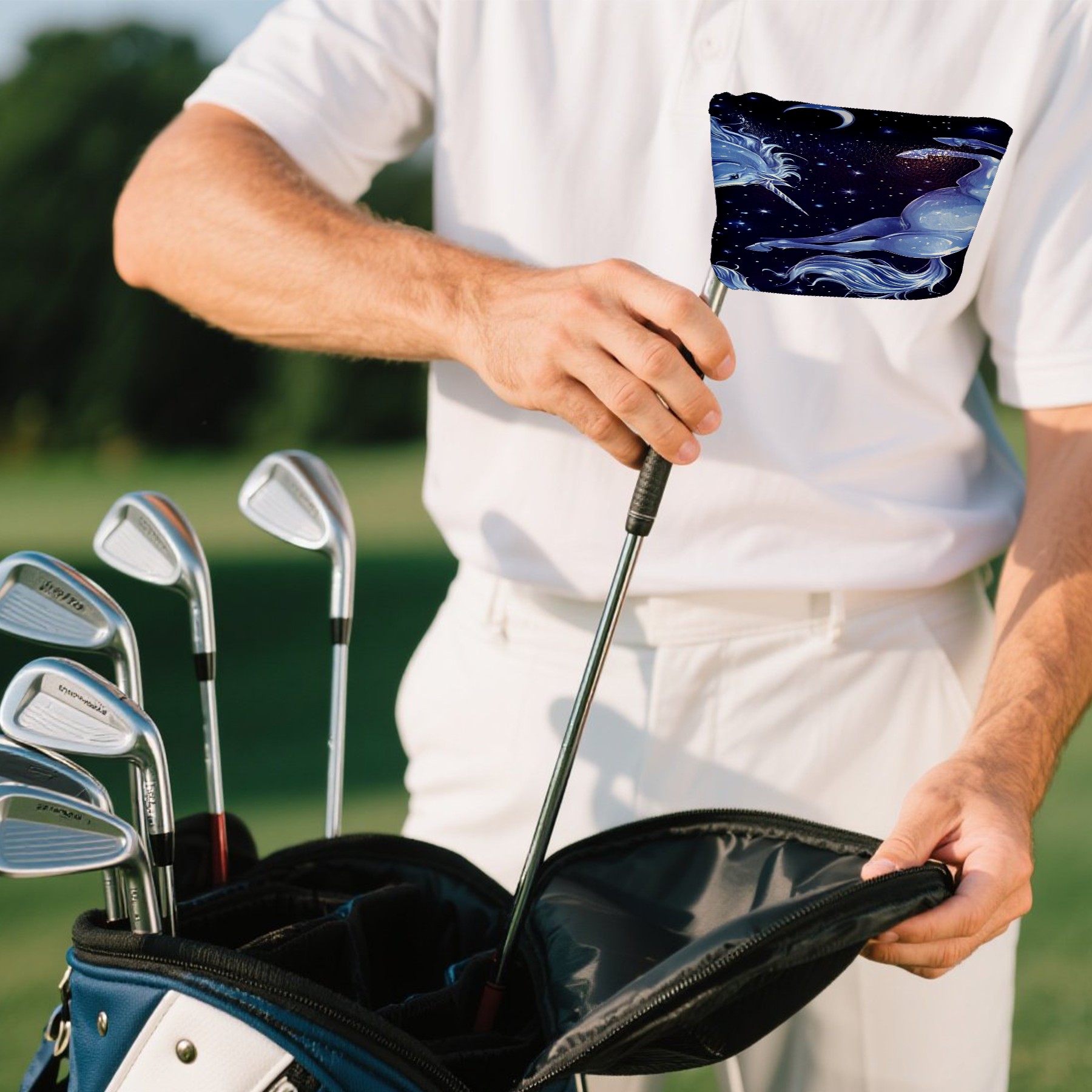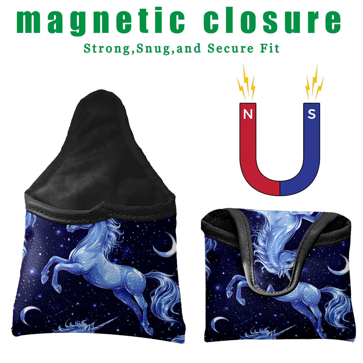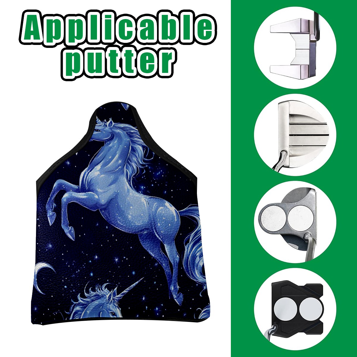 Putter Cover, Golf Club Headcovers Blue UnicornStar Premium PU Leather with Velvet Lining, Waterproof Putter Head Cover for Men Women (5.1"x5.5")