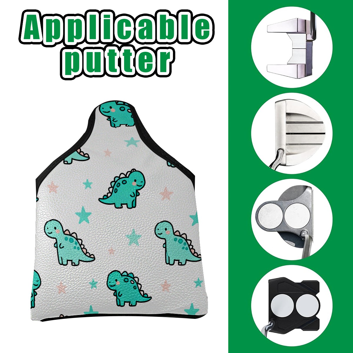 Putter Cover, Golf Club Headcovers LightBlue DinosaurStar Premium PU Leather with Velvet Lining, Waterproof Putter Head Cover for Men Women (5.1"x5.5")