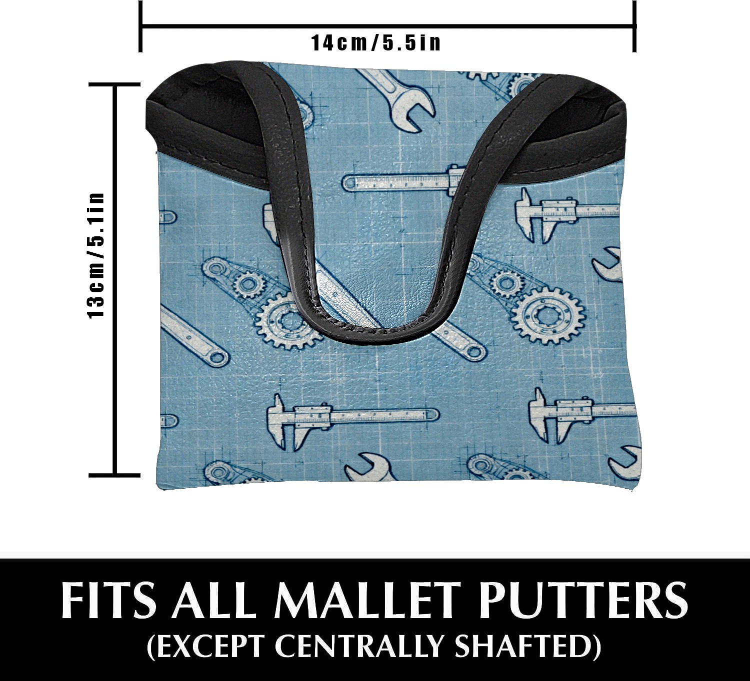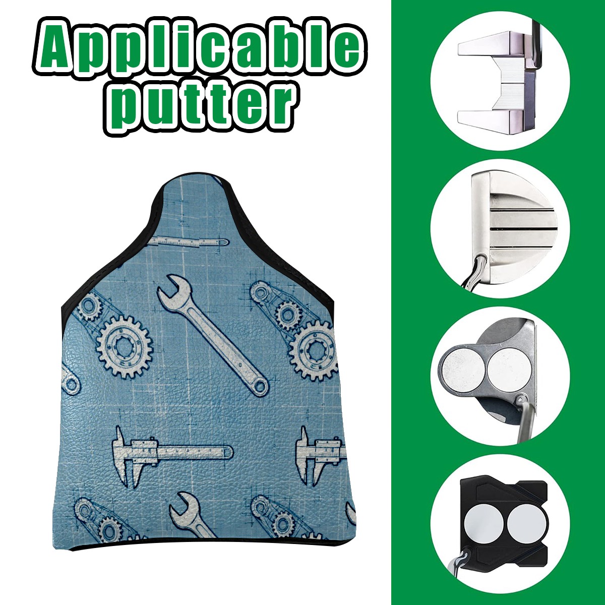 Putter Cover, Golf Club Headcovers LightBlue ToolPattern Premium PU Leather with Velvet Lining, Waterproof Putter Head Cover for Men Women (5.1"x5.5")