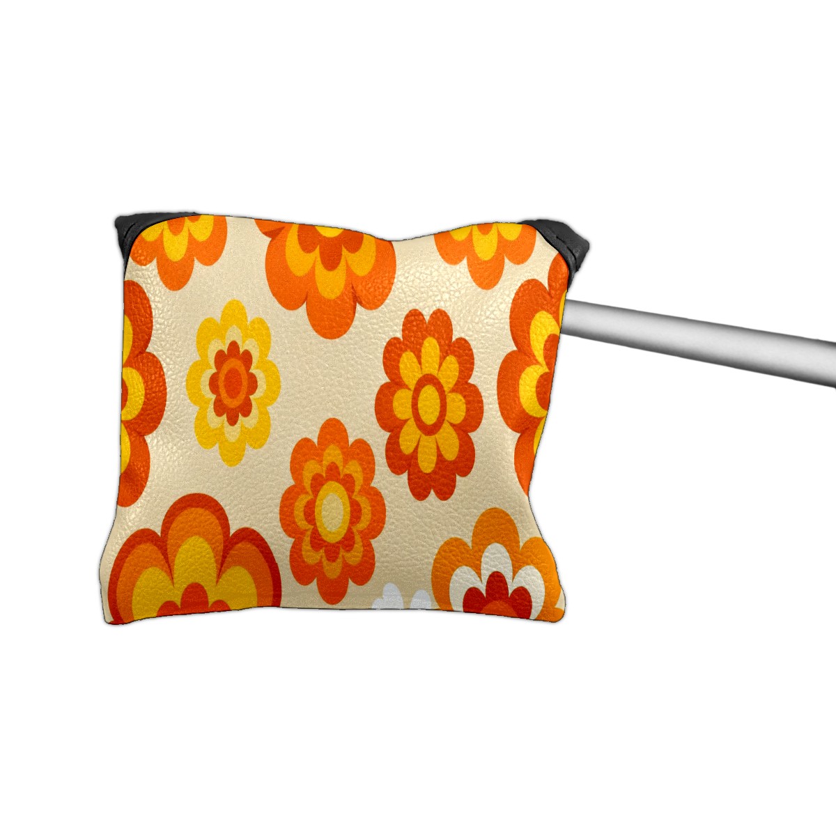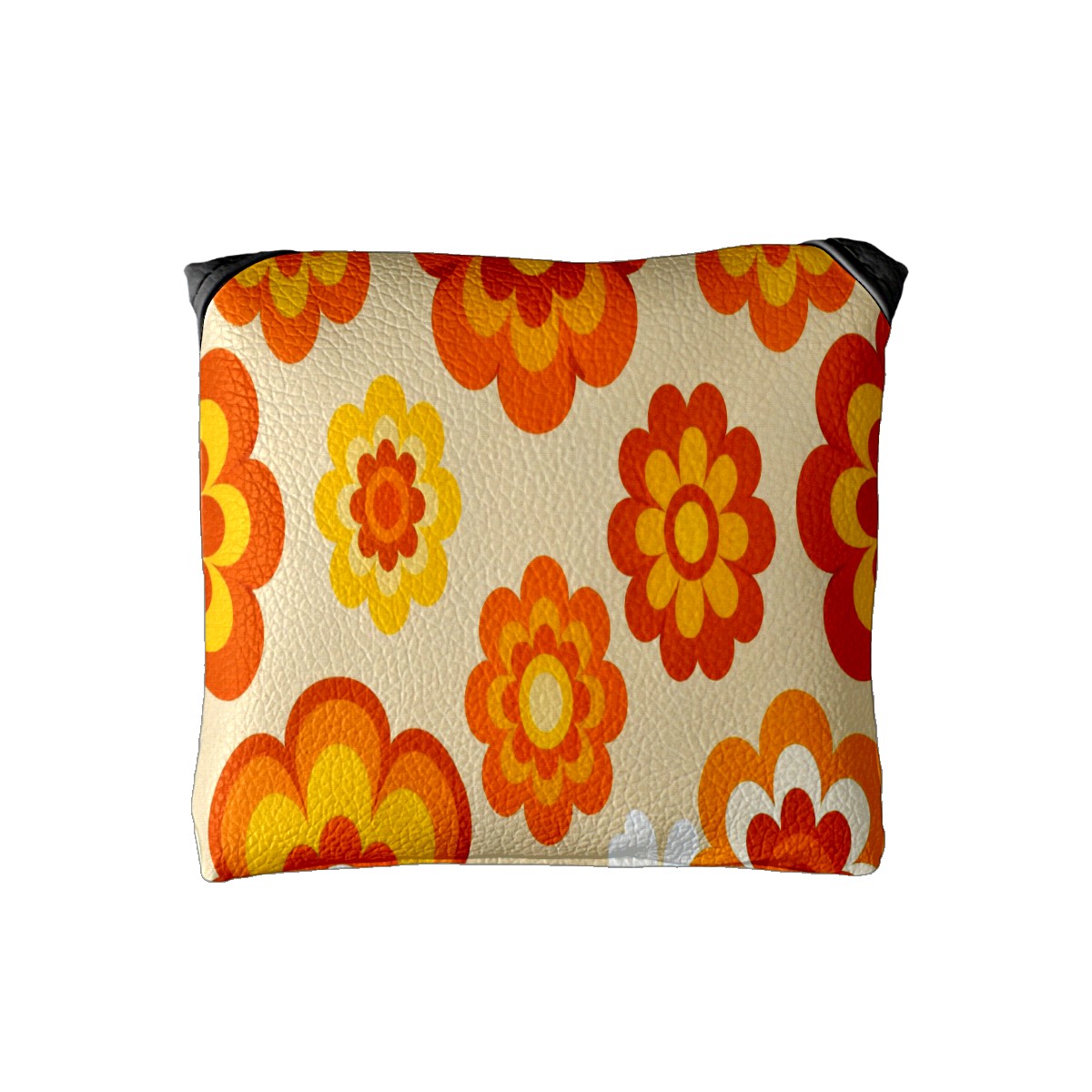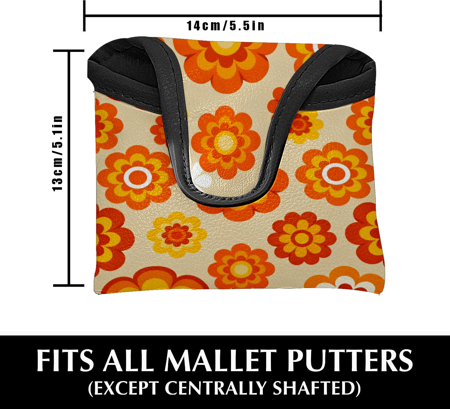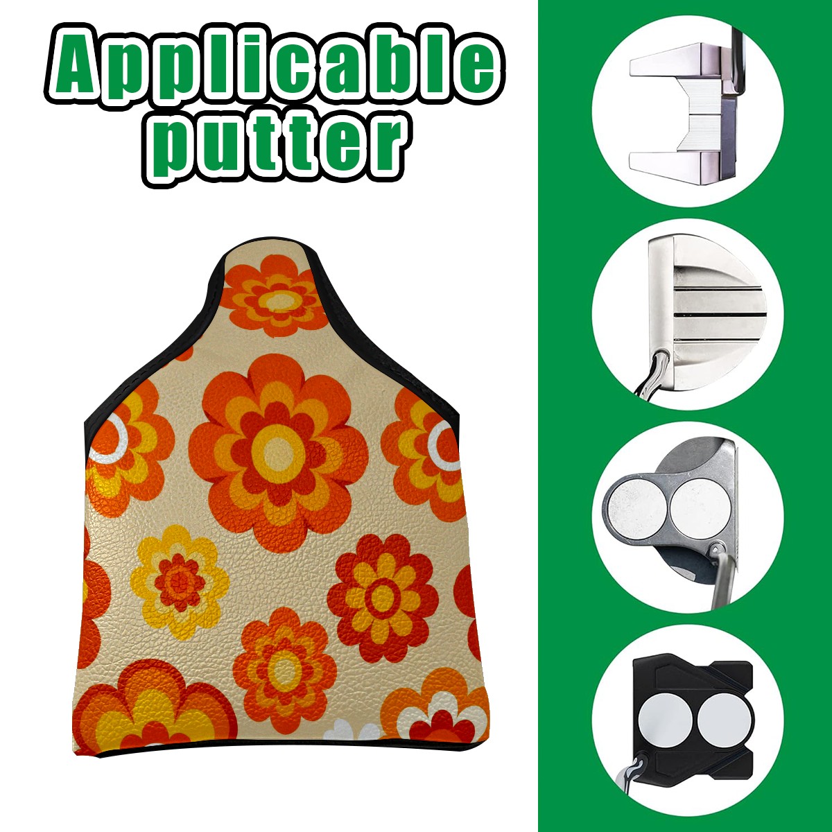 Putter Cover, Golf Club Headcovers Orange Flower Premium PU Leather with Velvet Lining, Waterproof Putter Head Cover for Men Women (5.1"x5.5")