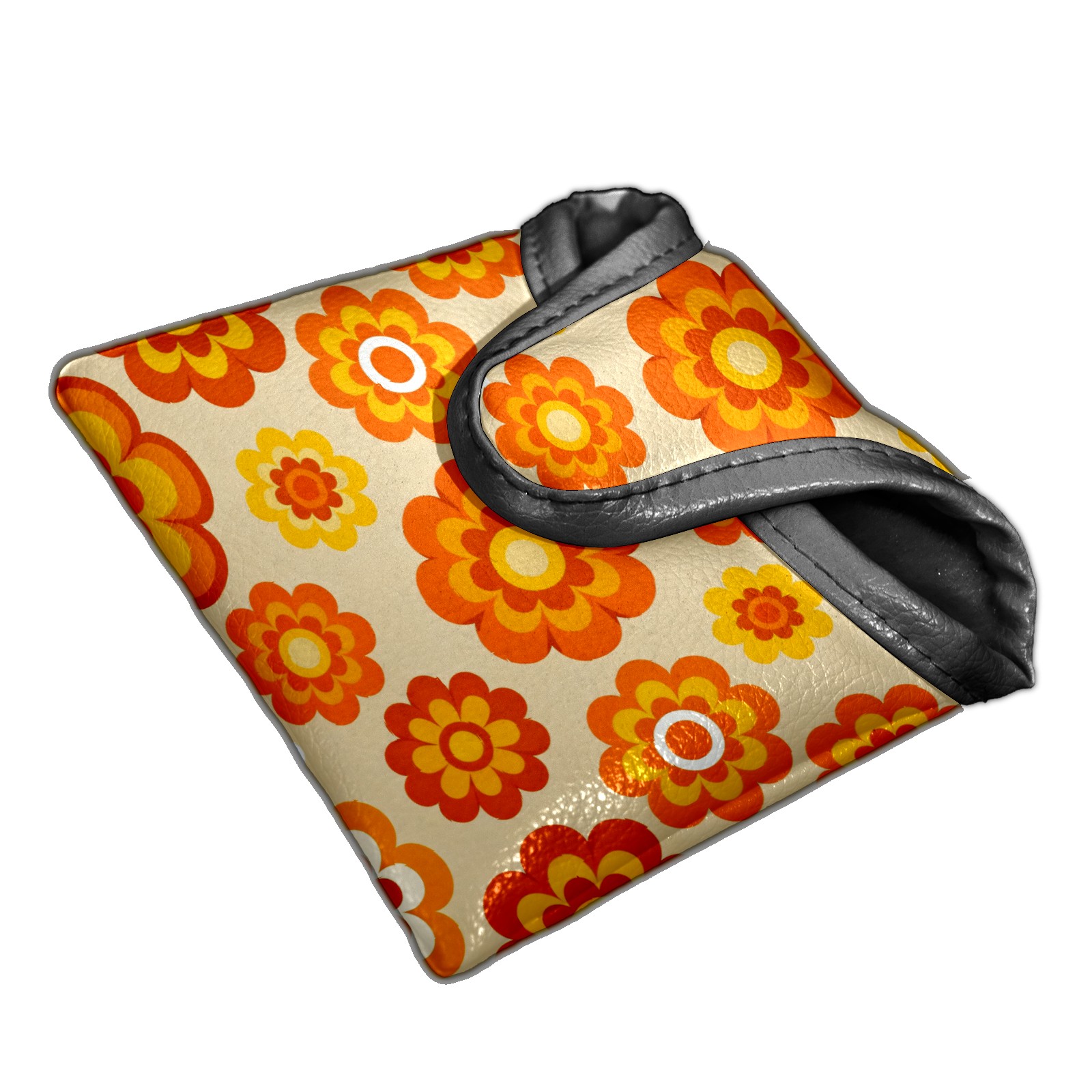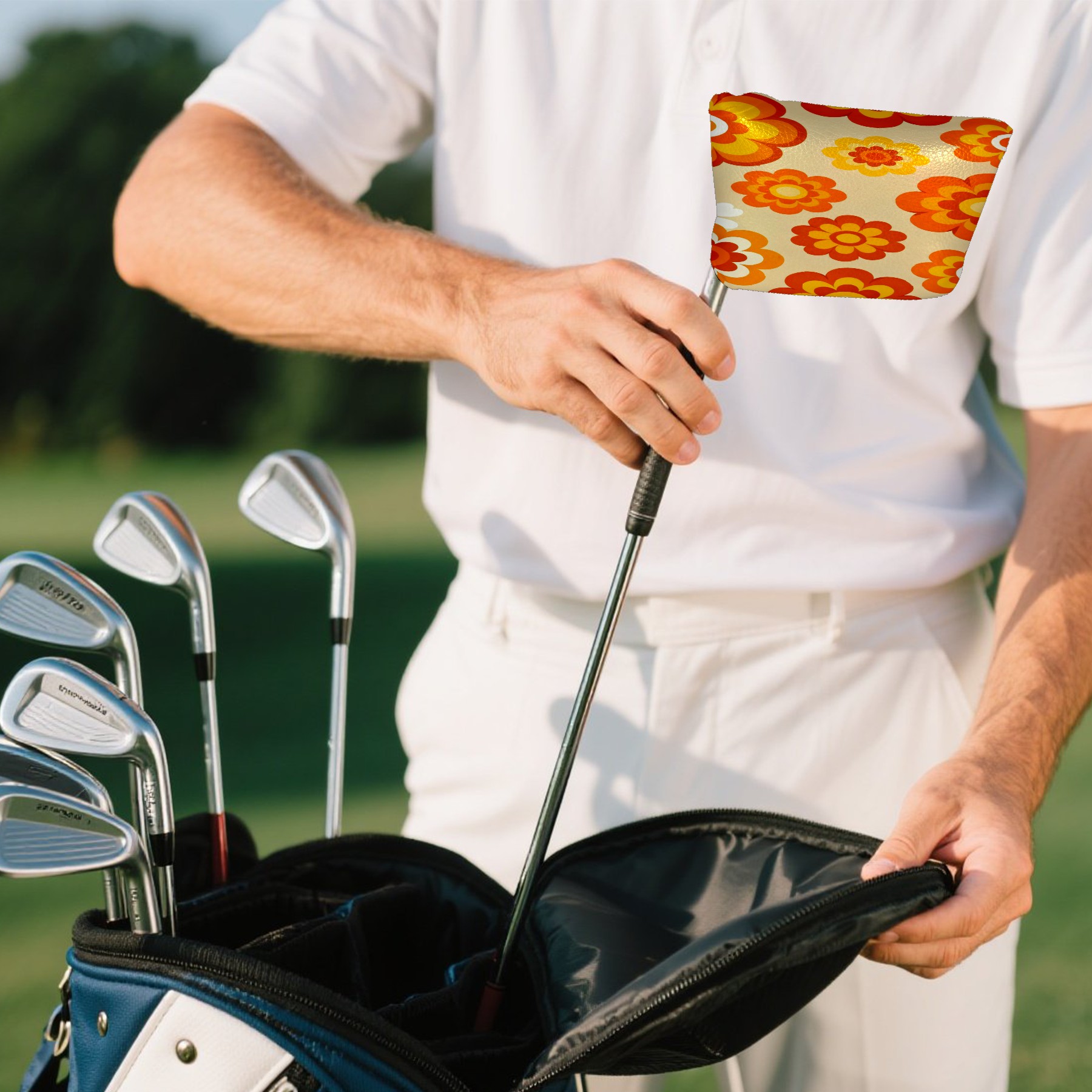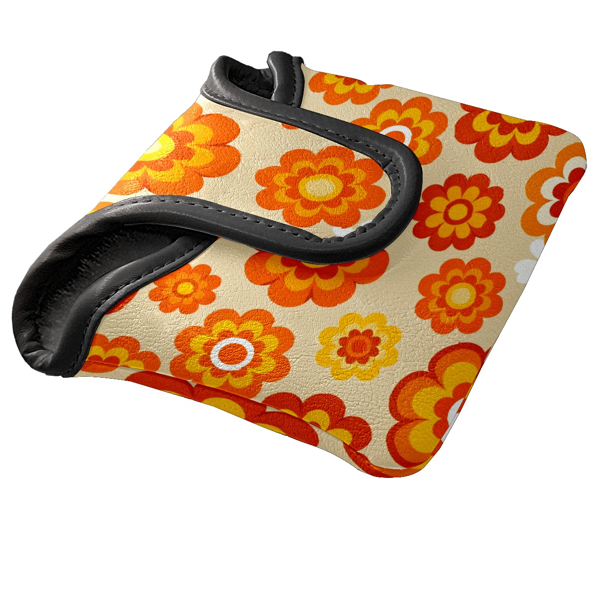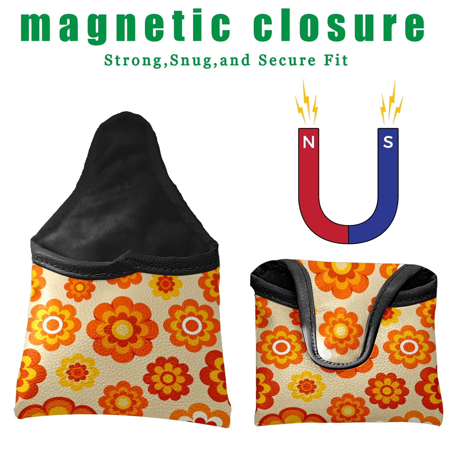 Putter Cover, Golf Club Headcovers Orange Flower Premium PU Leather with Velvet Lining, Waterproof Putter Head Cover for Men Women (5.1"x5.5")