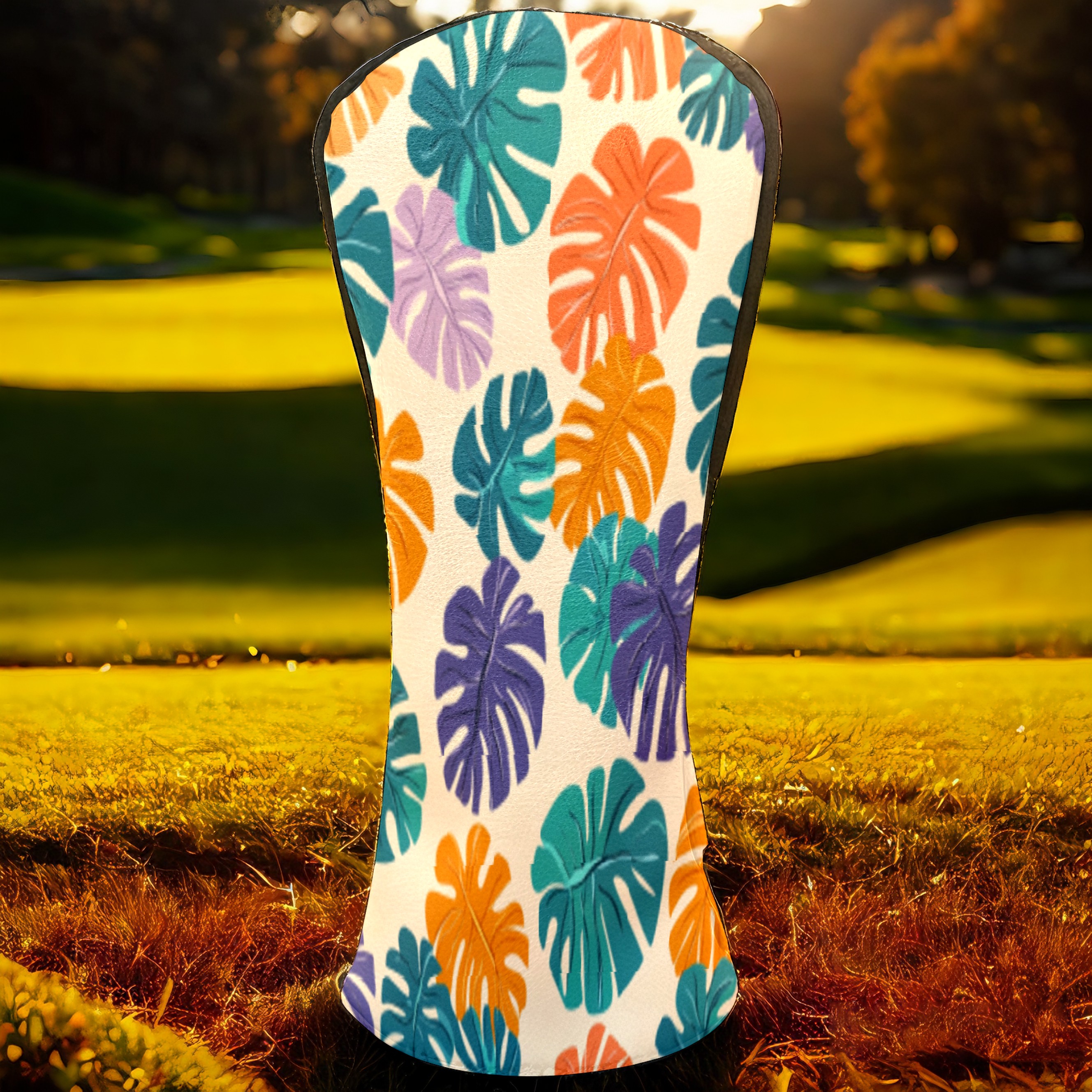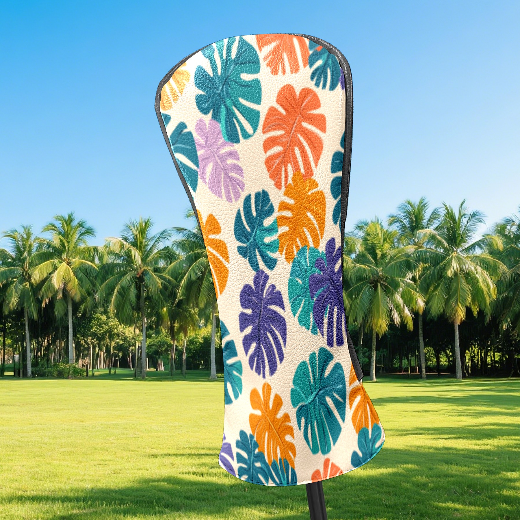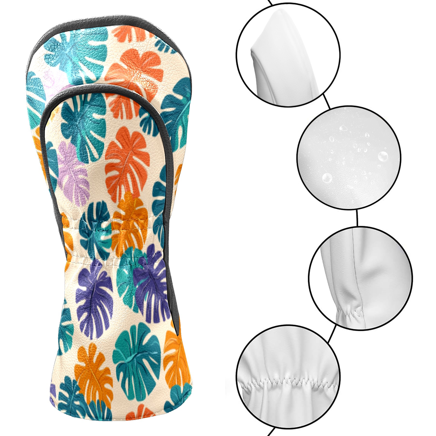 Golf Head Covers for Woods and Driver Waterproof Leather Golf Club Head Covers for Women Men Golf Driver Fairway Wood Headcover Tropical Leaf Pattern