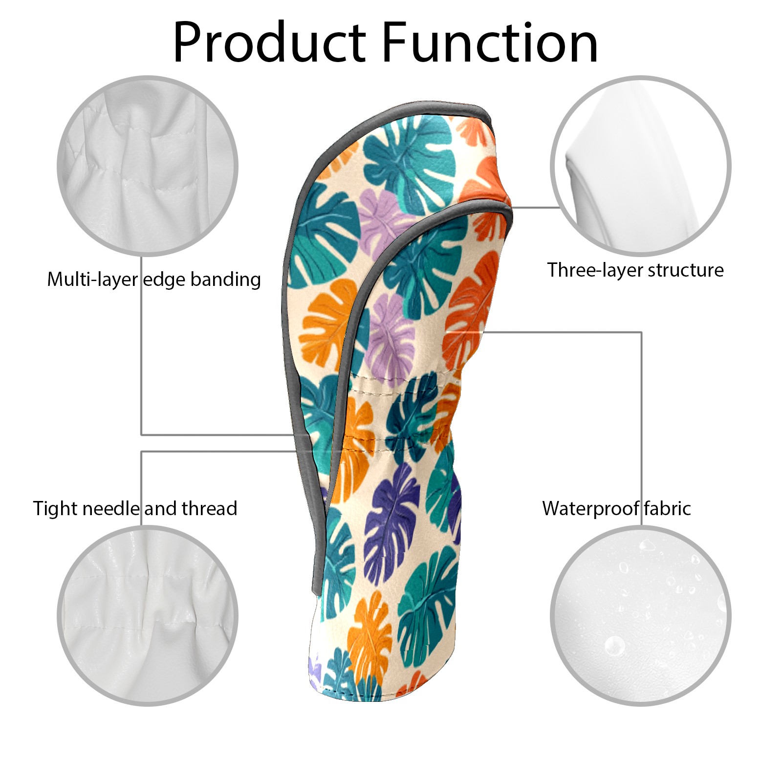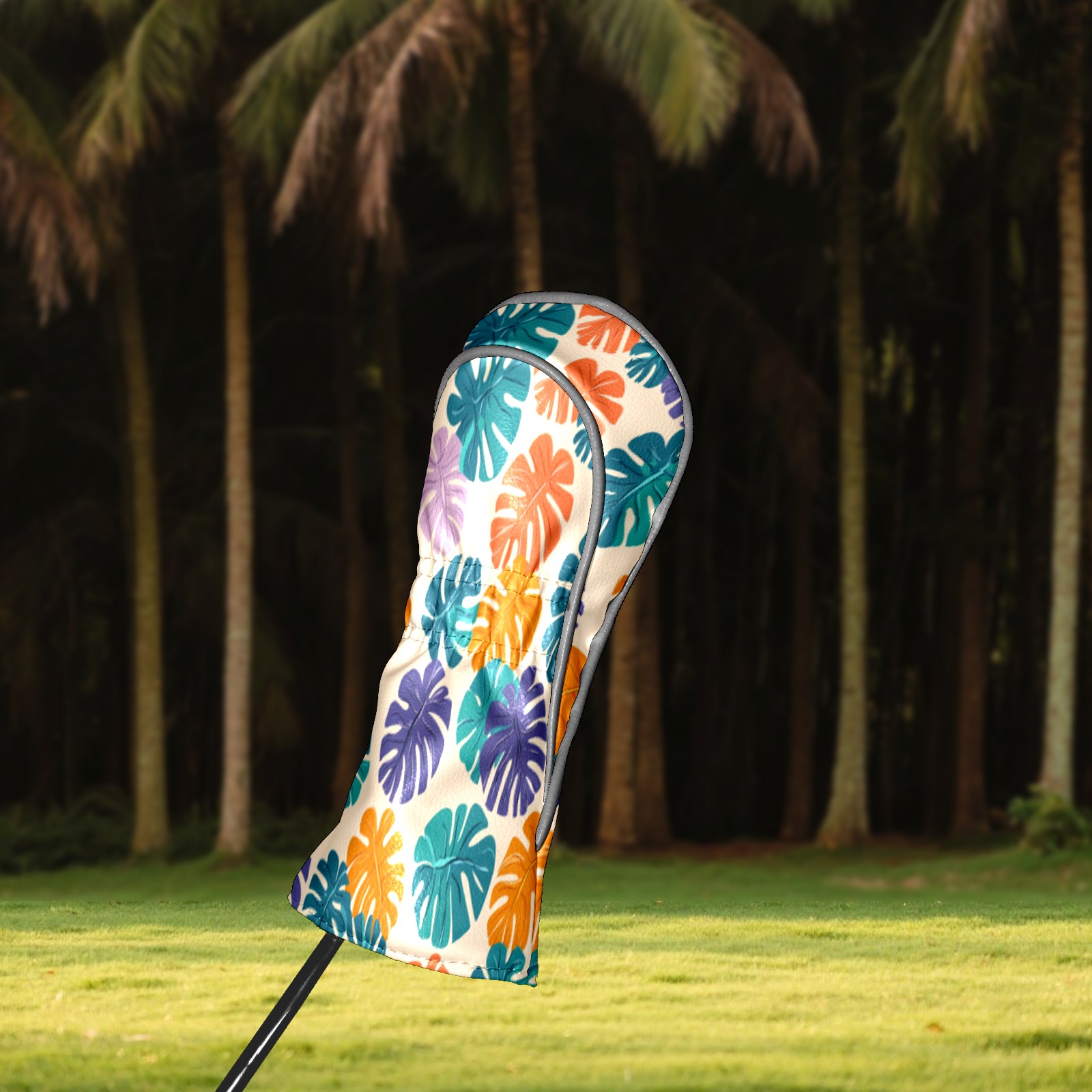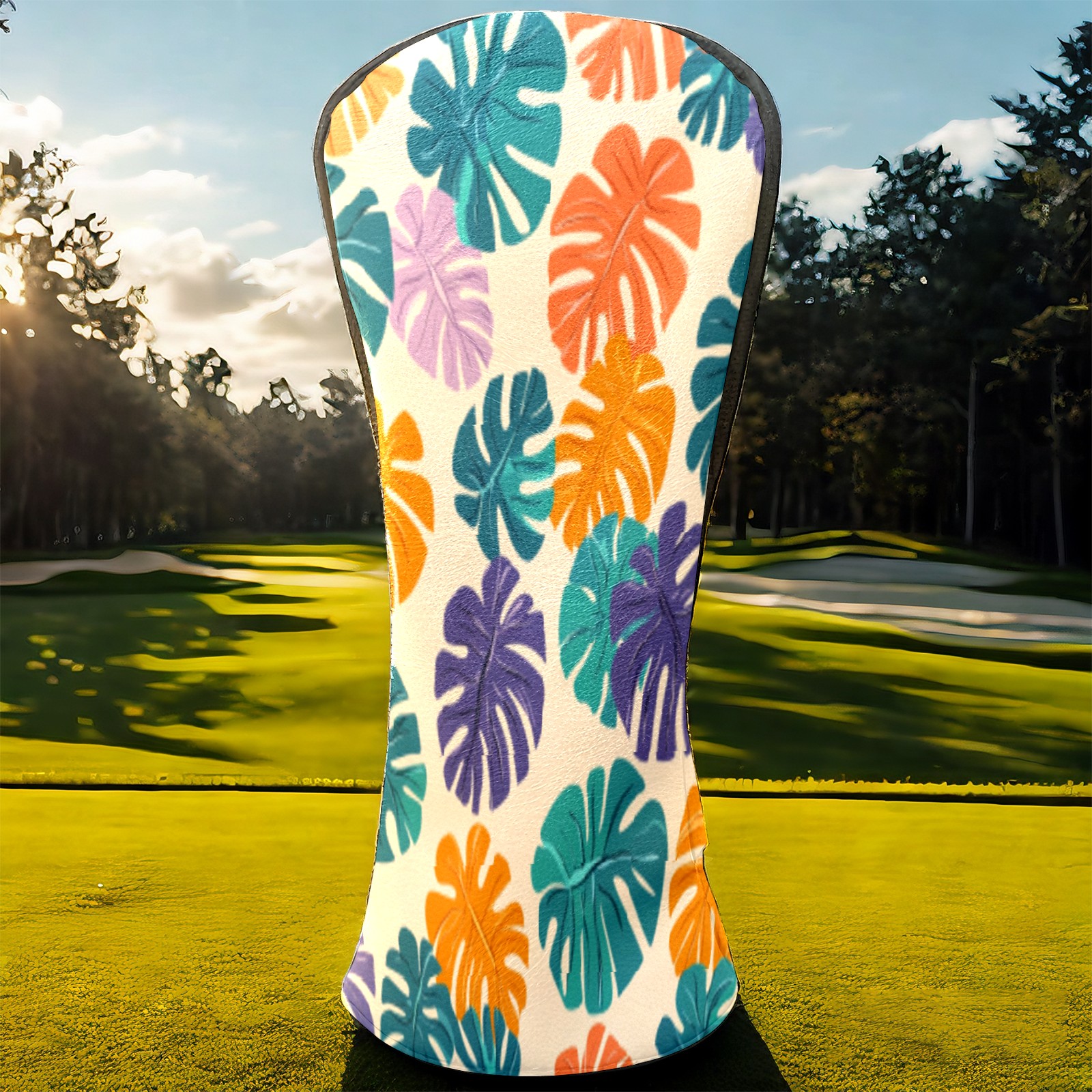 Golf Head Covers for Woods and Driver Waterproof Leather Golf Club Head Covers for Women Men Golf Driver Fairway Wood Headcover Tropical Leaf Pattern