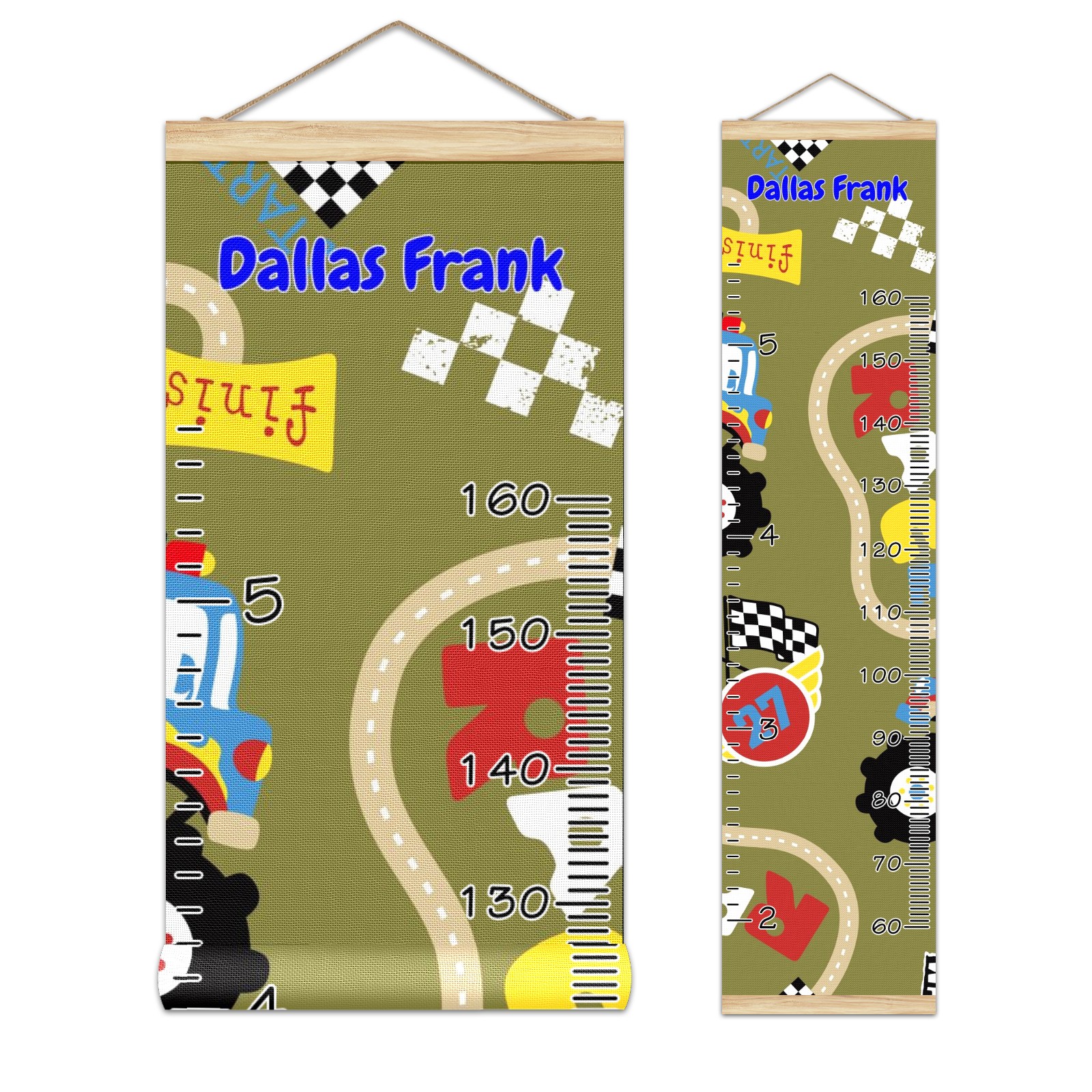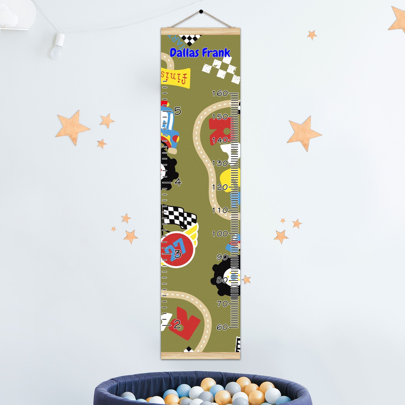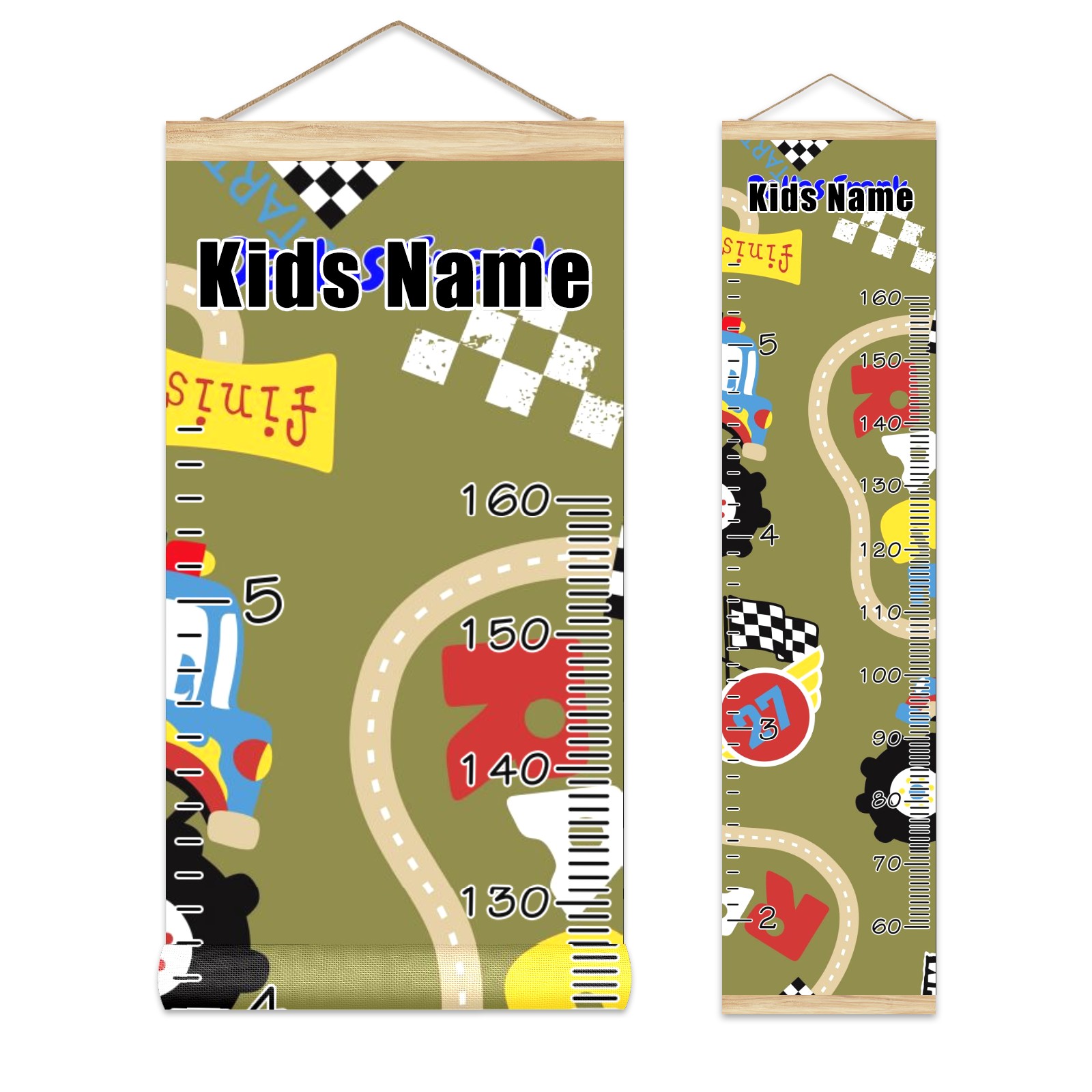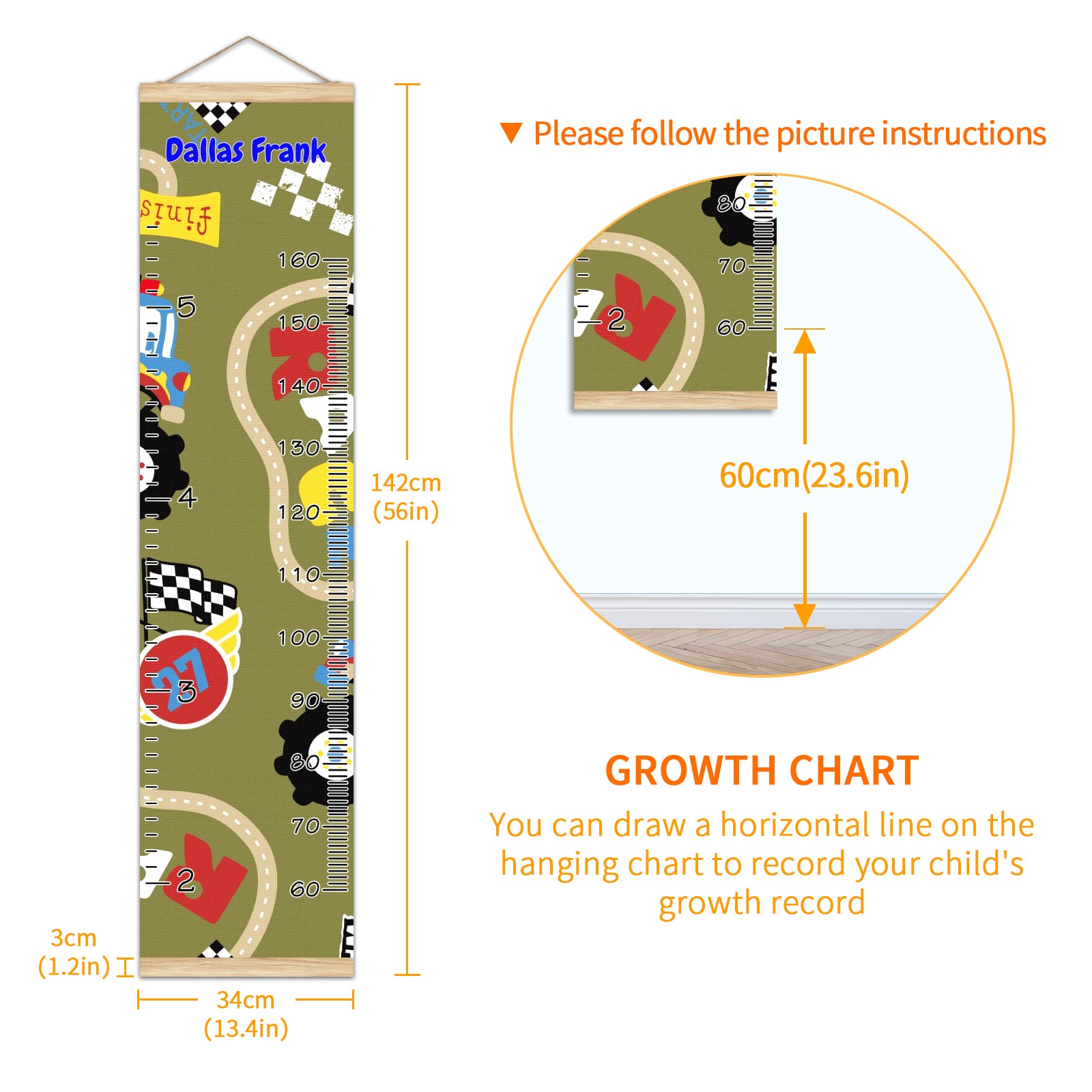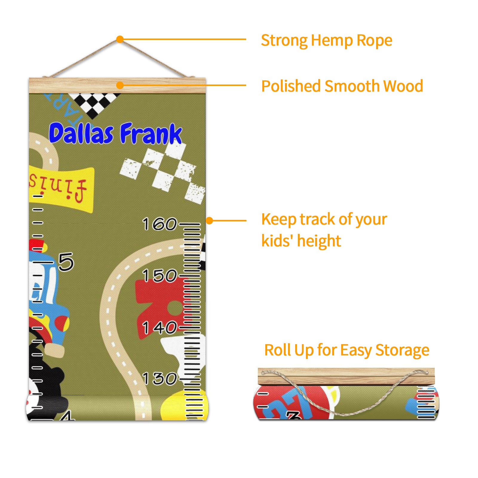 Personalized Kids Name Growth Chart Ruler for Wall Wood Frame Canvas Height Measure Chart 13.4x56 in Hanging Growth Chart Retro Cartoon Monster Trucks9.18 Boys Girls Room Decor