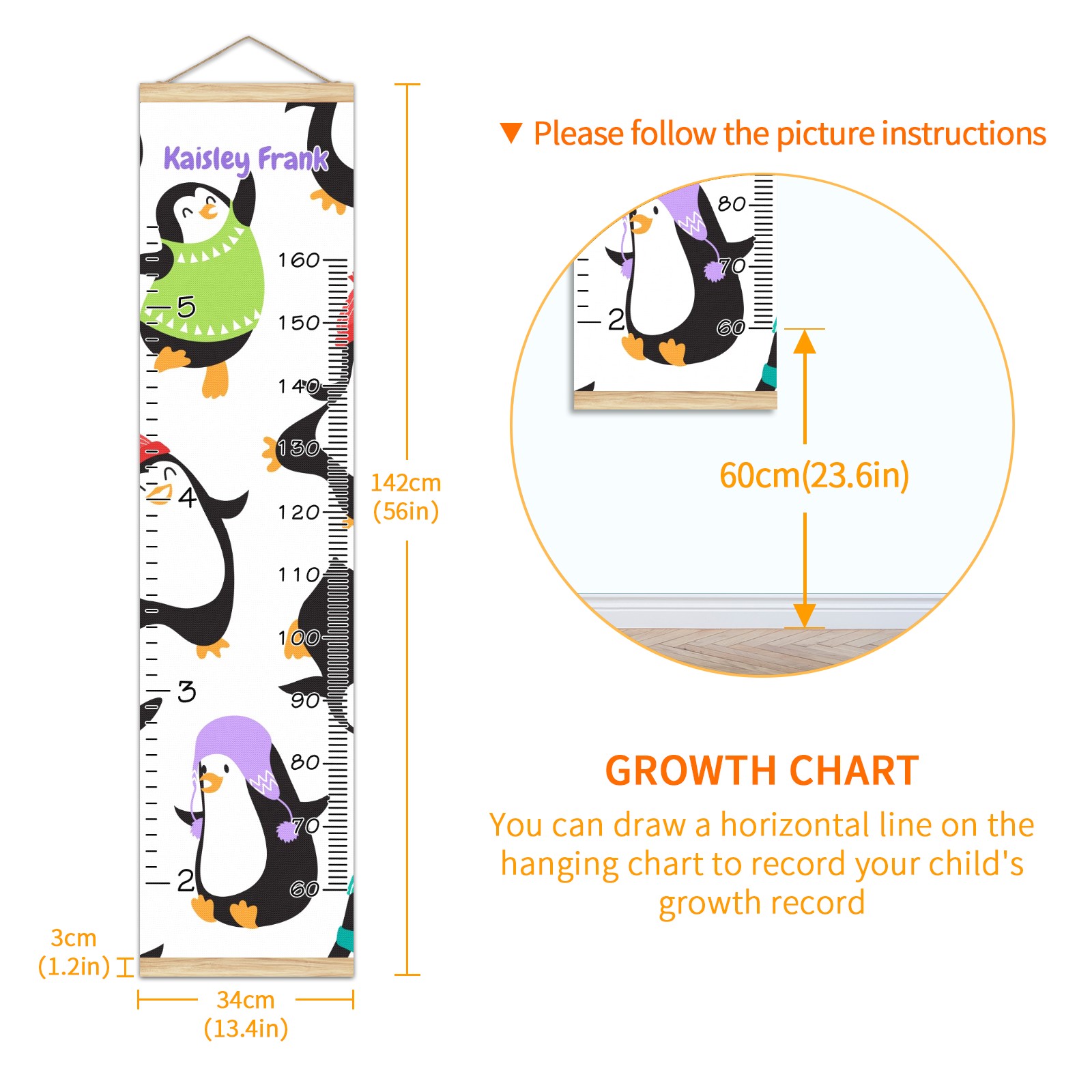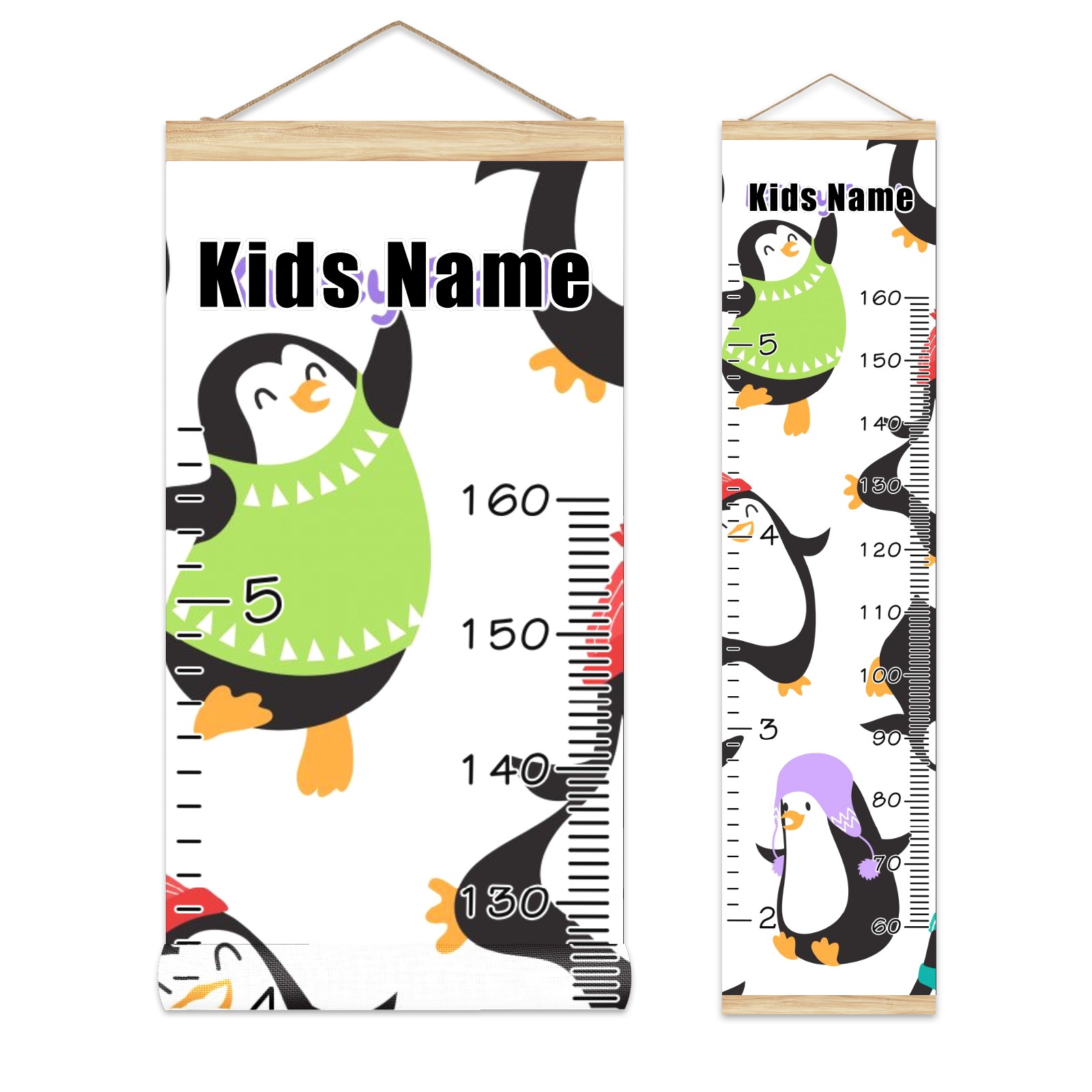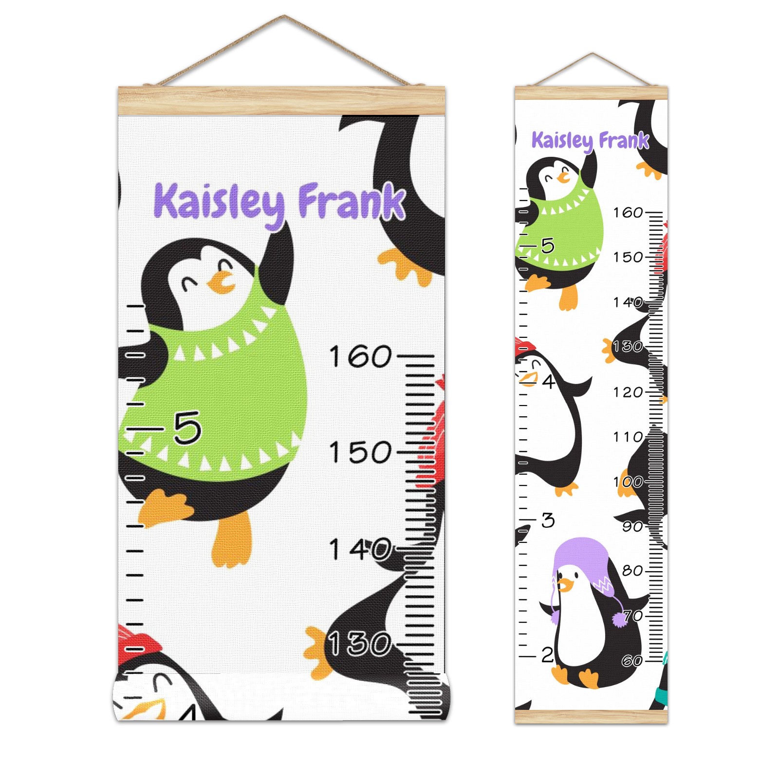 Personalized Kids Name Growth Chart Ruler for Wall Wood Frame Canvas Height Measure Chart 13.4x56 in Hanging Growth Chart Baby Penguins9.18 Boys Girls Room Decor