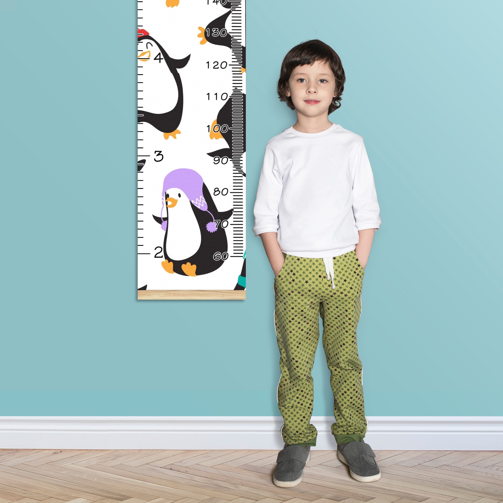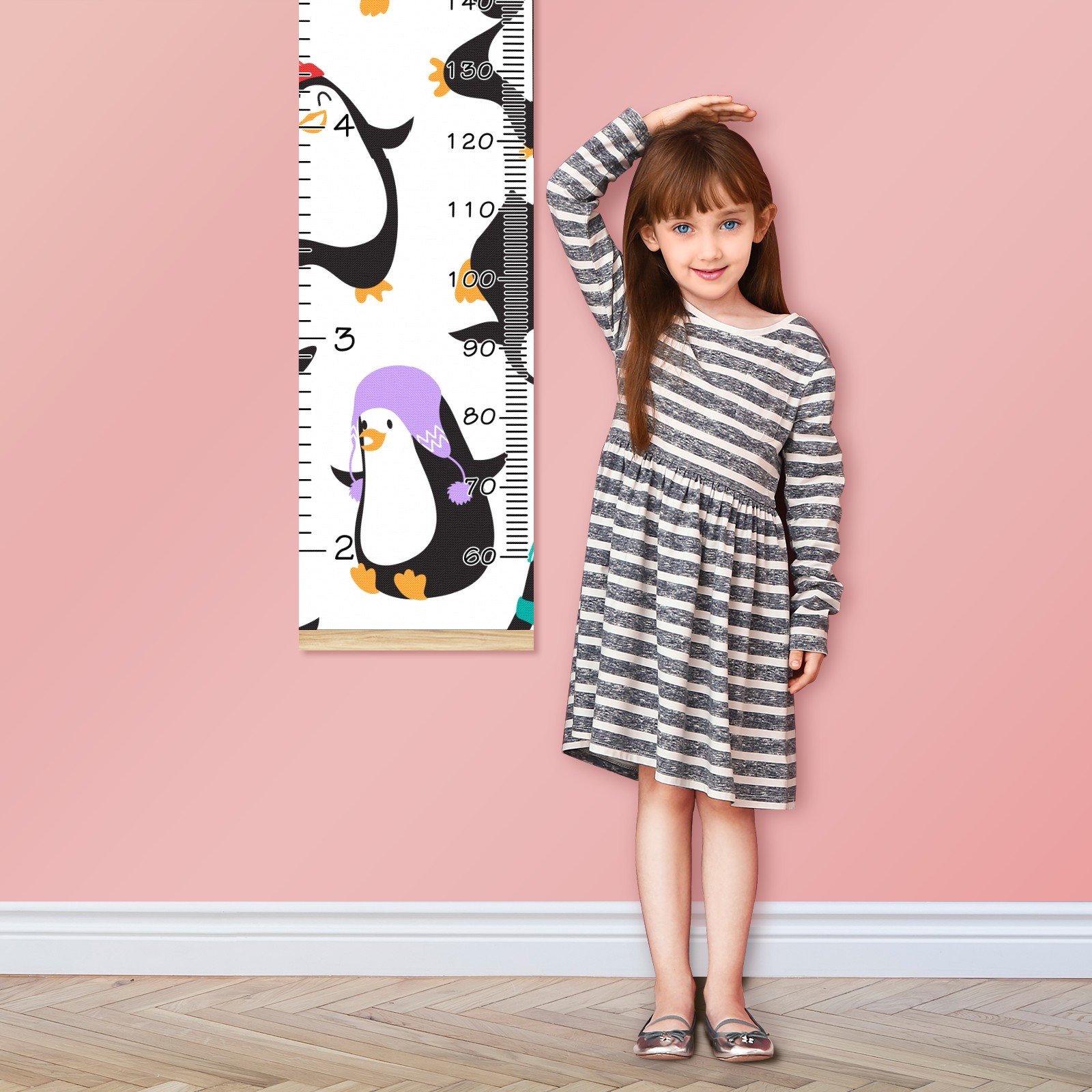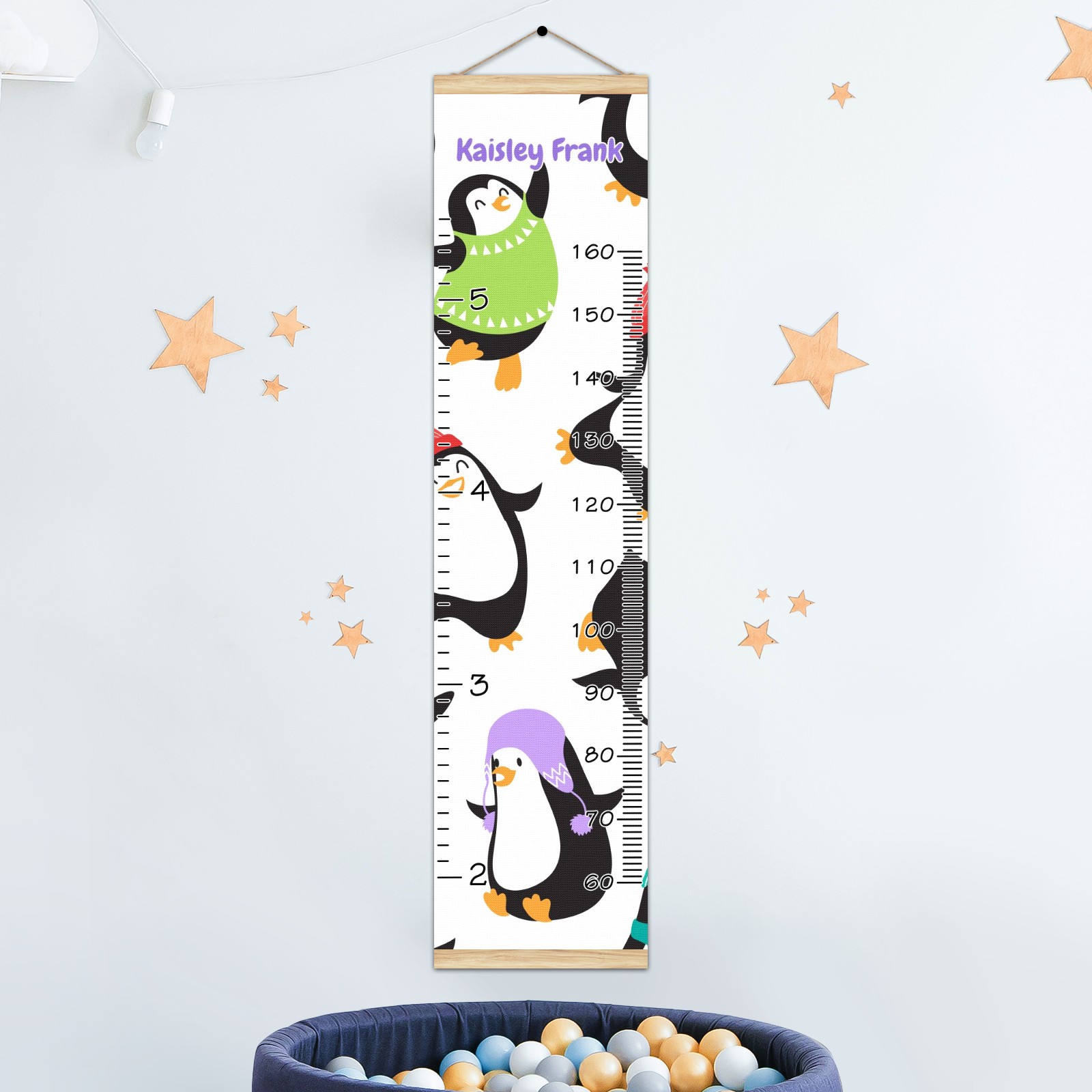 Personalized Kids Name Growth Chart Ruler for Wall Wood Frame Canvas Height Measure Chart 13.4x56 in Hanging Growth Chart Baby Penguins9.18 Boys Girls Room Decor