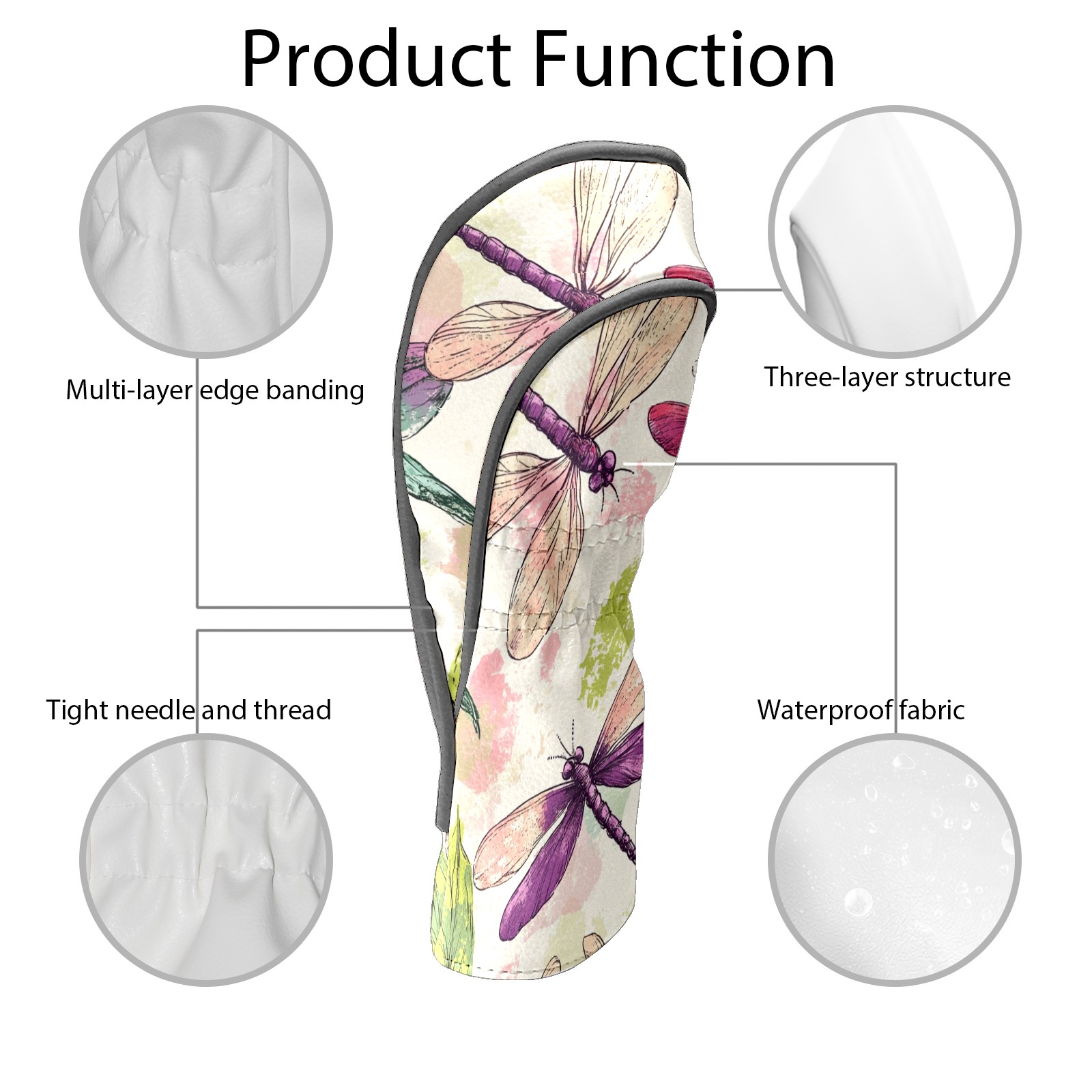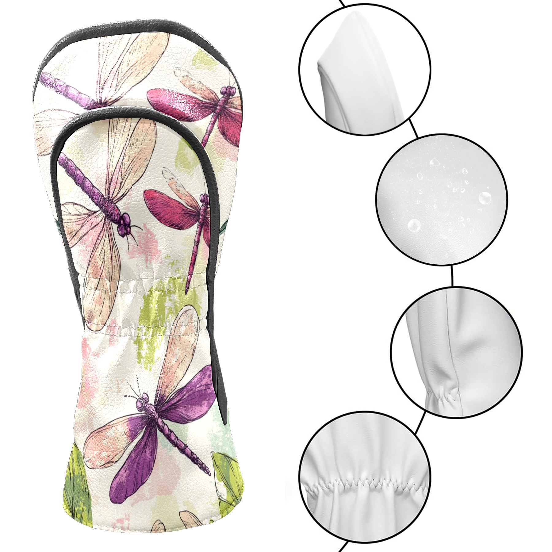 Golf Club Covers PU Leather Waterproof,Golf Club Head Covers for Fairway Woods and Hybrids Colorful Dragonfly,Unisex Suitable for Most Brands