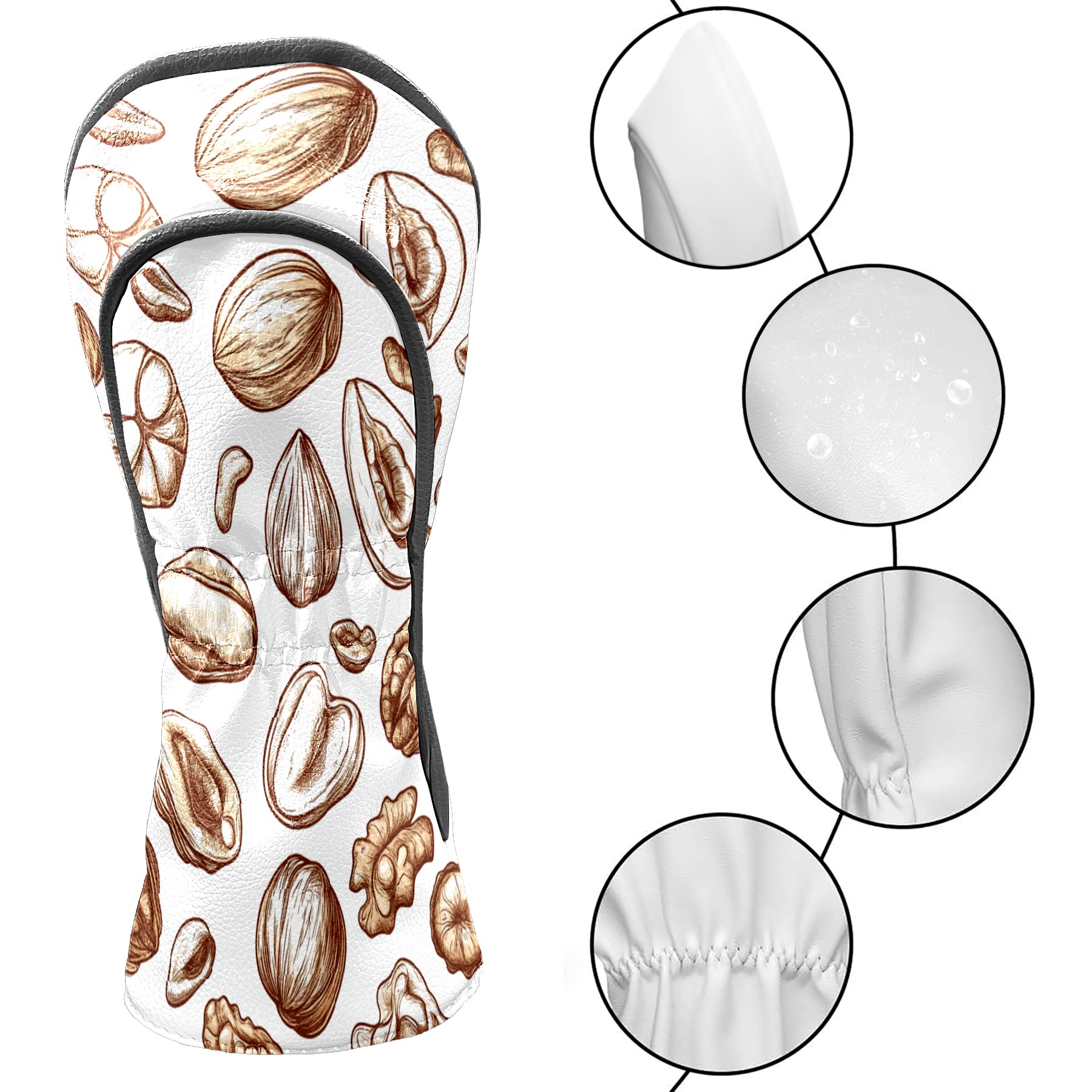 Golf Club Covers PU Leather Waterproof,Golf Club Head Covers for Fairway Woods and Hybrids Nut Pattern,Unisex Suitable for Most Brands