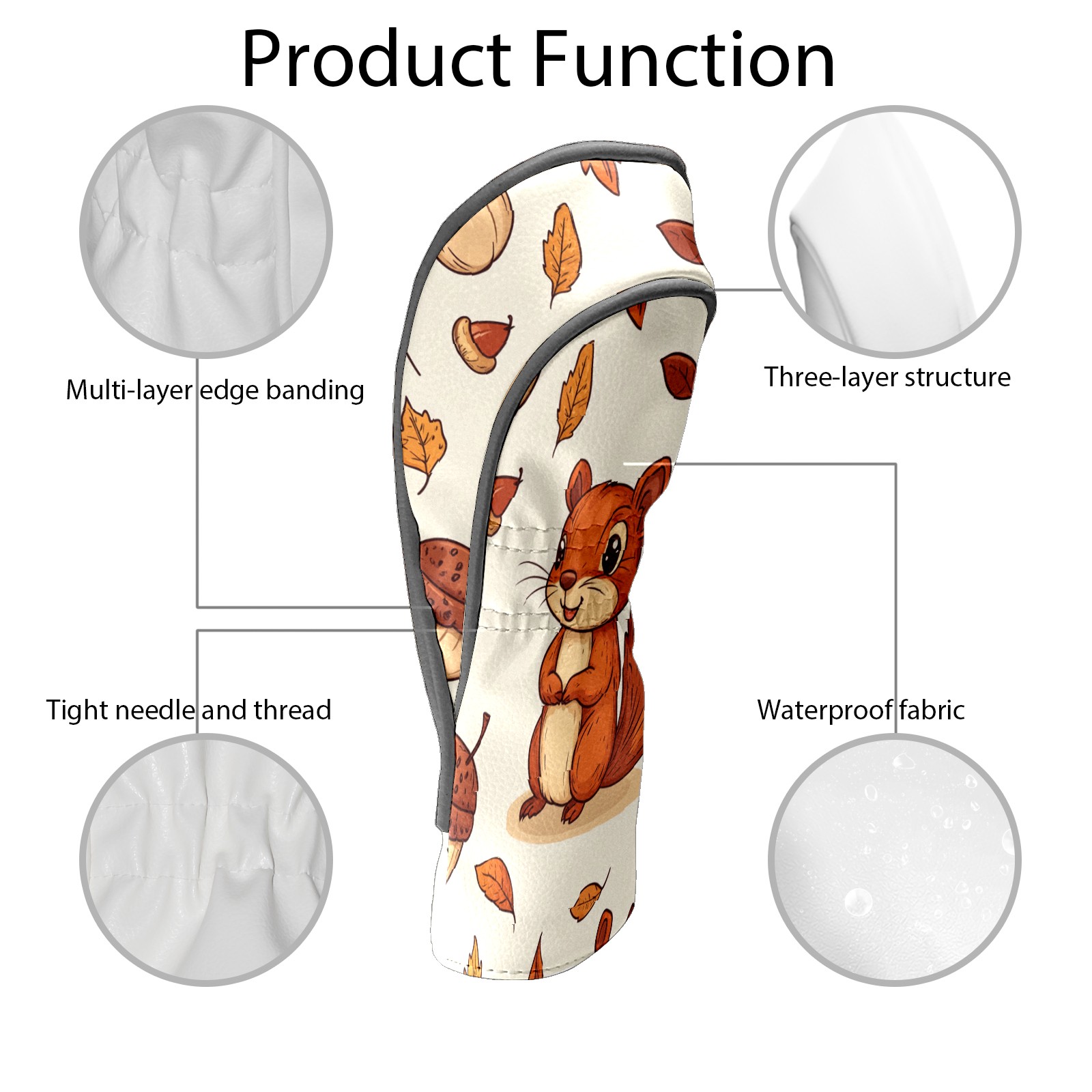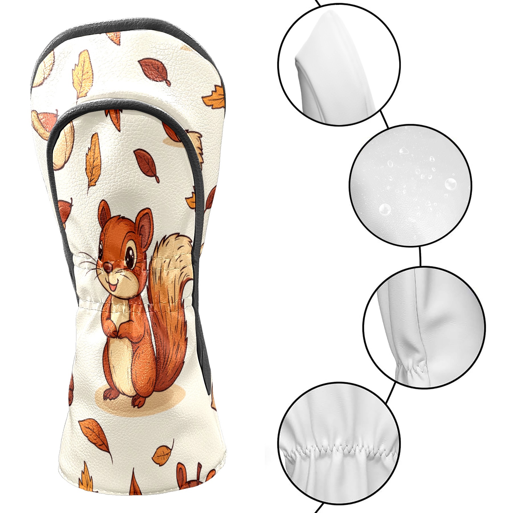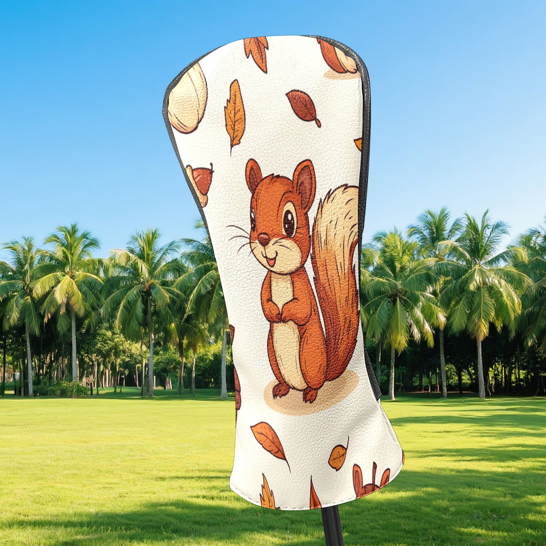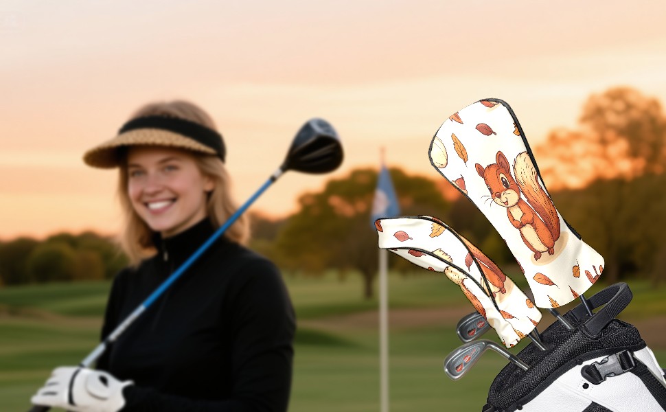 Golf Club Covers PU Leather Waterproof,Golf Club Head Covers for Fairway Woods and Hybrids Cartoon Squirrel,Unisex Suitable for Most Brands