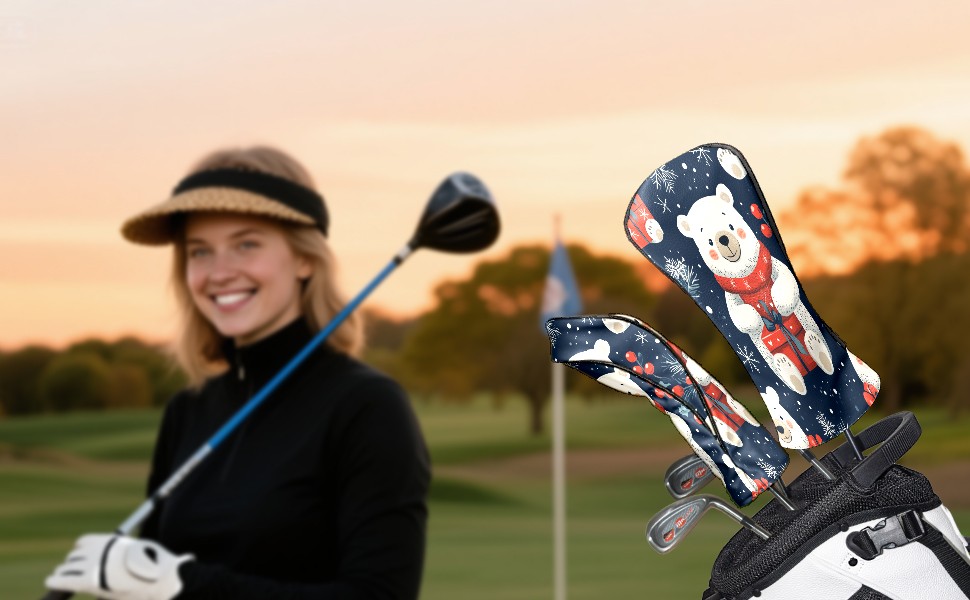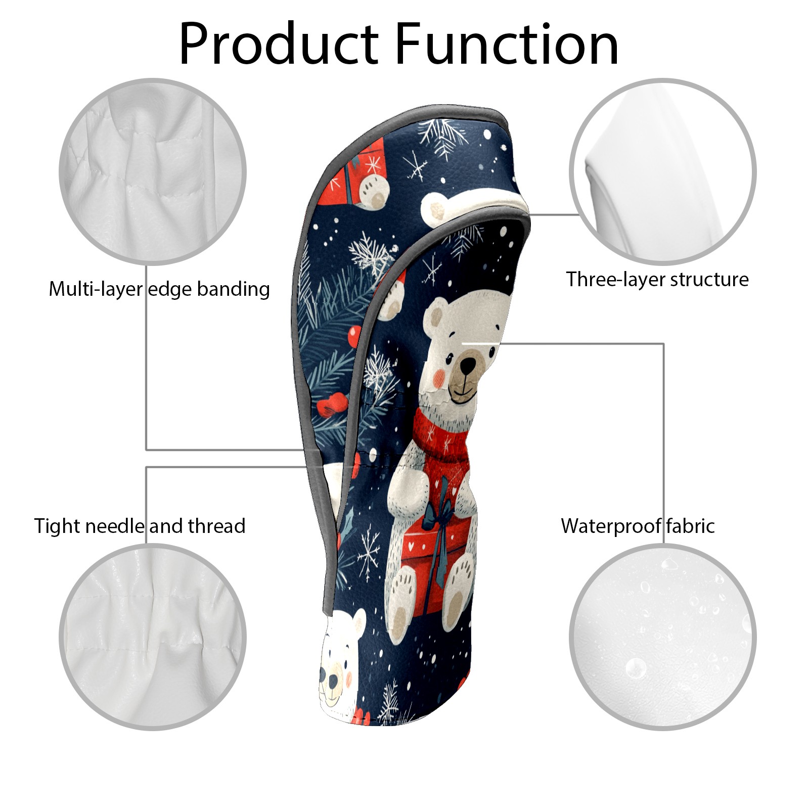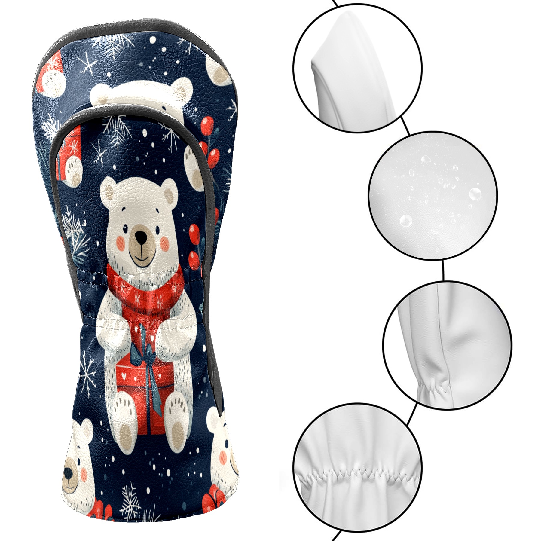 Golf Club Covers PU Leather Waterproof,Golf Club Head Covers for Fairway Woods and Hybrids White Bear,Unisex Suitable for Most Brands
