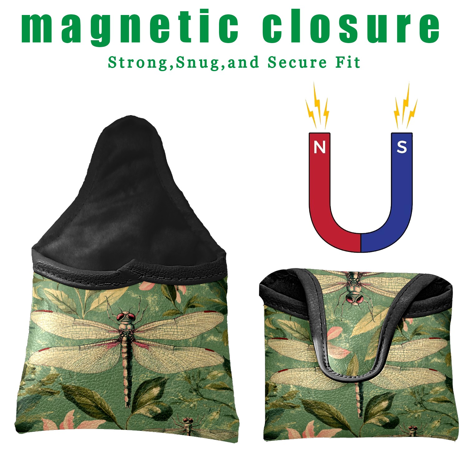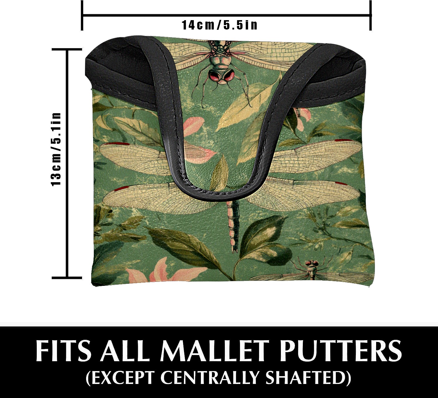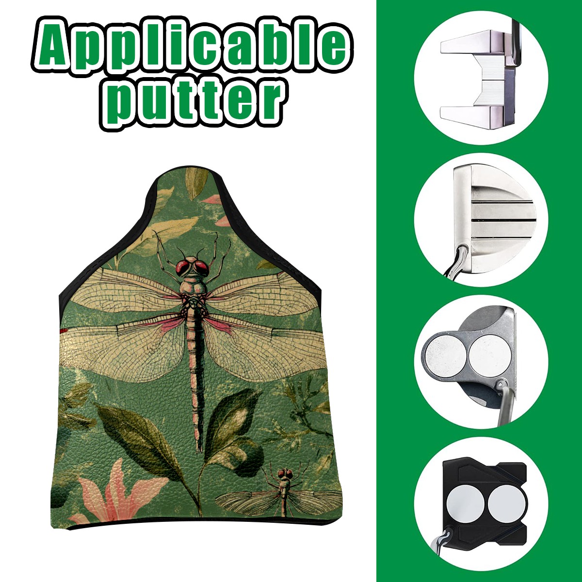 Golf Mallet Putter Cover Premium Leather Golf Putter Head Cover with Magnetic Closure Golf Cover for Men and Women Green Dragonfly