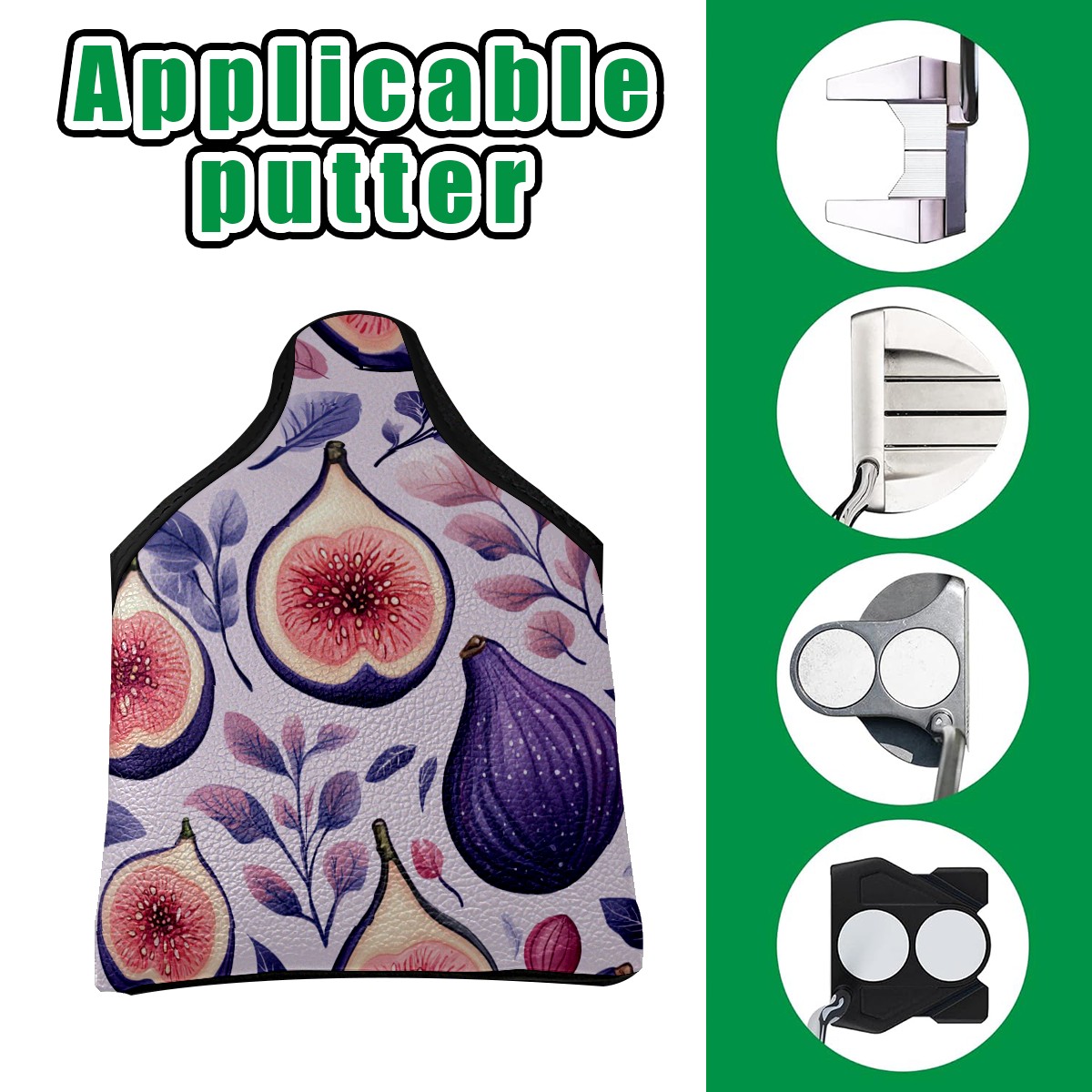 Golf Mallet Putter Cover Premium Leather Golf Putter Head Cover with Magnetic Closure Golf Cover for Men and Women Fig Pattern