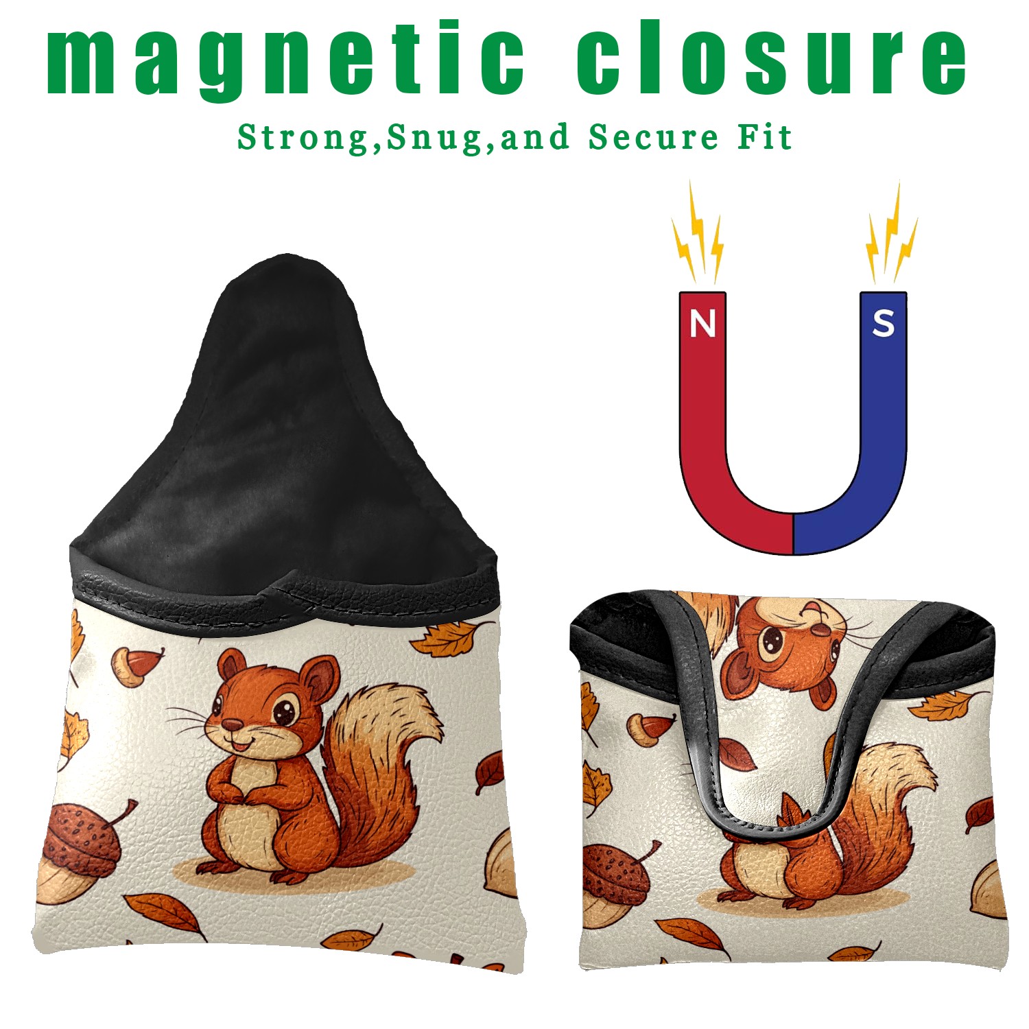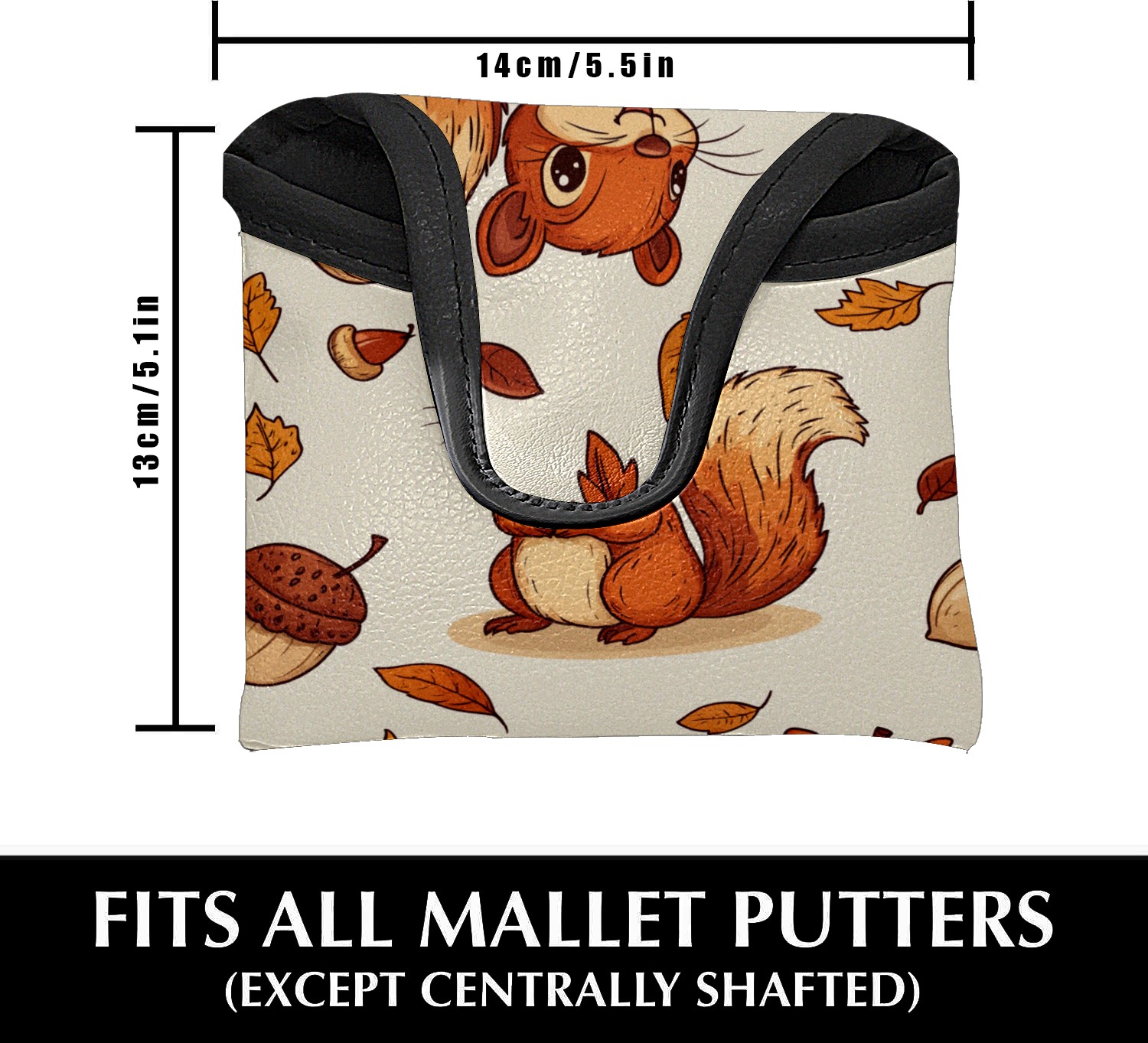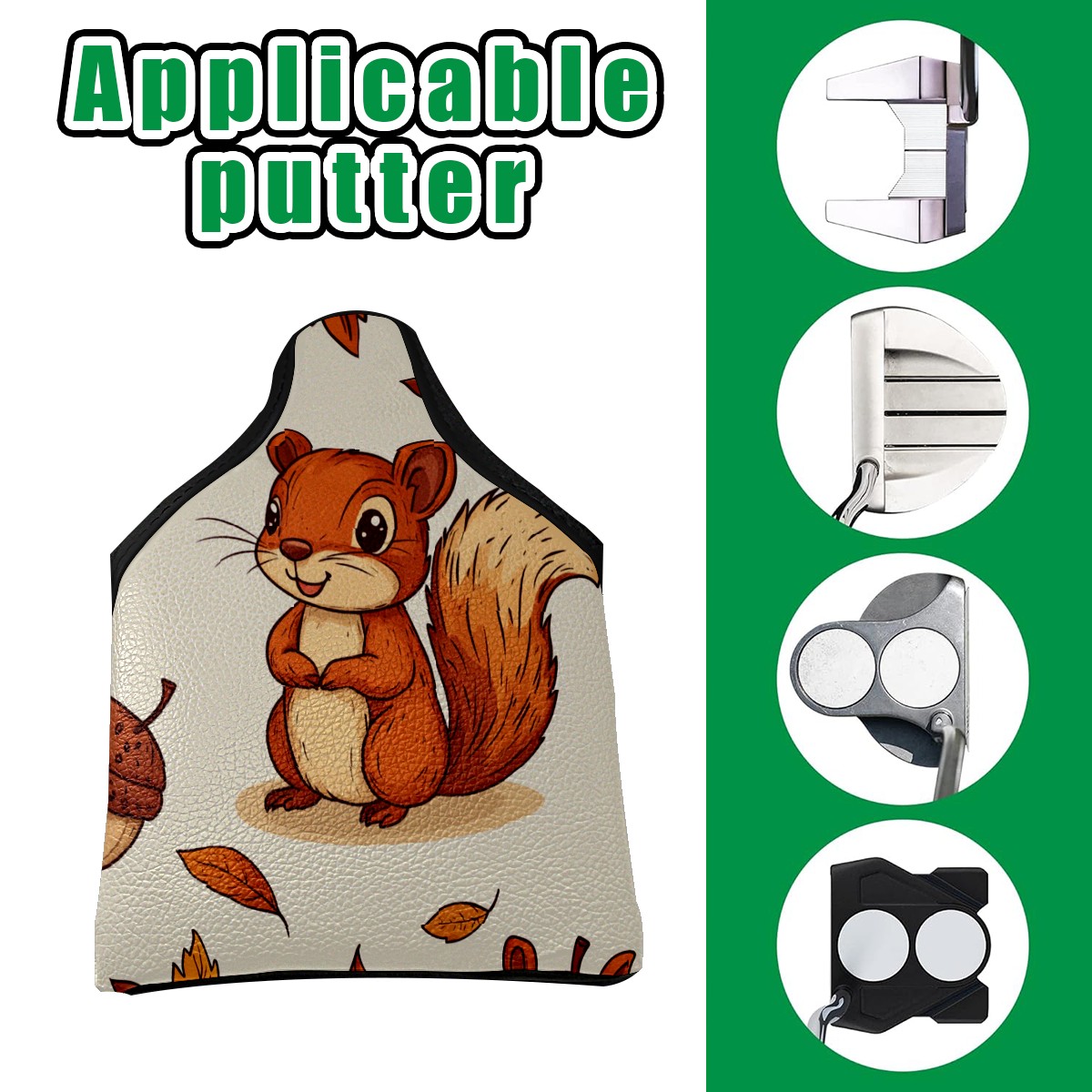 Golf Mallet Putter Cover Premium Leather Golf Putter Head Cover with Magnetic Closure Golf Cover for Men and Women Cartoon Squirrel