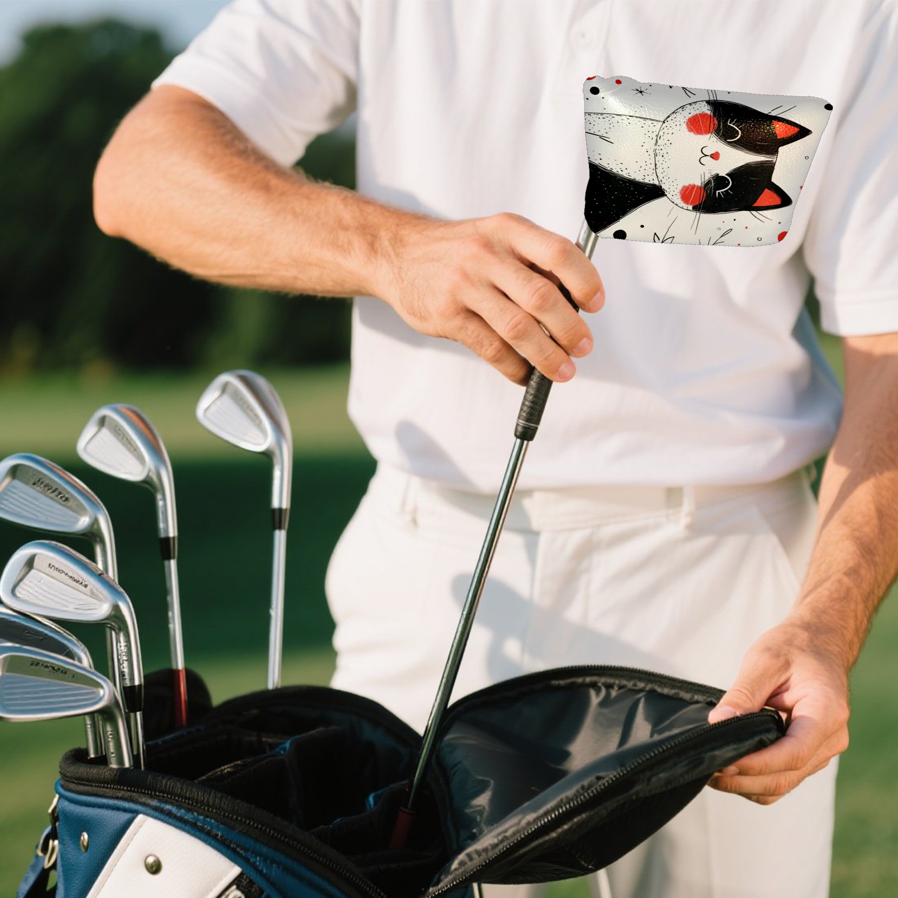 <p>The golf mallet putter covers are made of premium leather. The soft velvet lining cushions your clubs and prevents scratches and wear. The golf mallet putter covers feature an ultra-strong magnetic clasp, so there's no need to worry about them falling off. These covers are easy to clean and scrub, ensuring your clubs are protected and stay looking great for a long time.Simple yet elegant, this golf mallet putter cover stands out on the course, blending functionality with a premium look.</p>