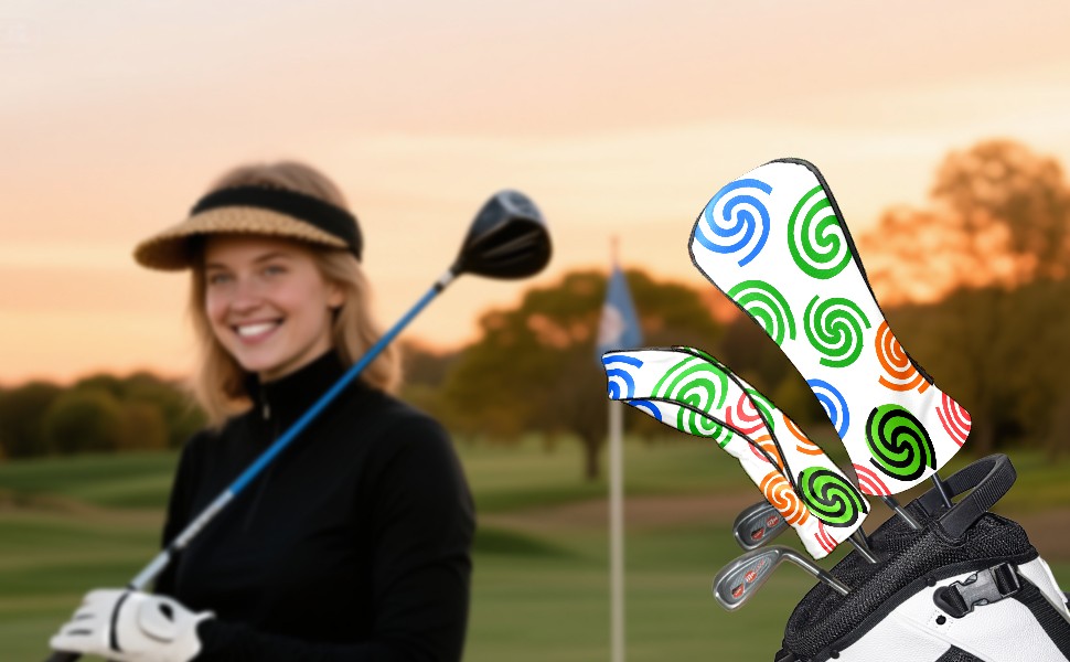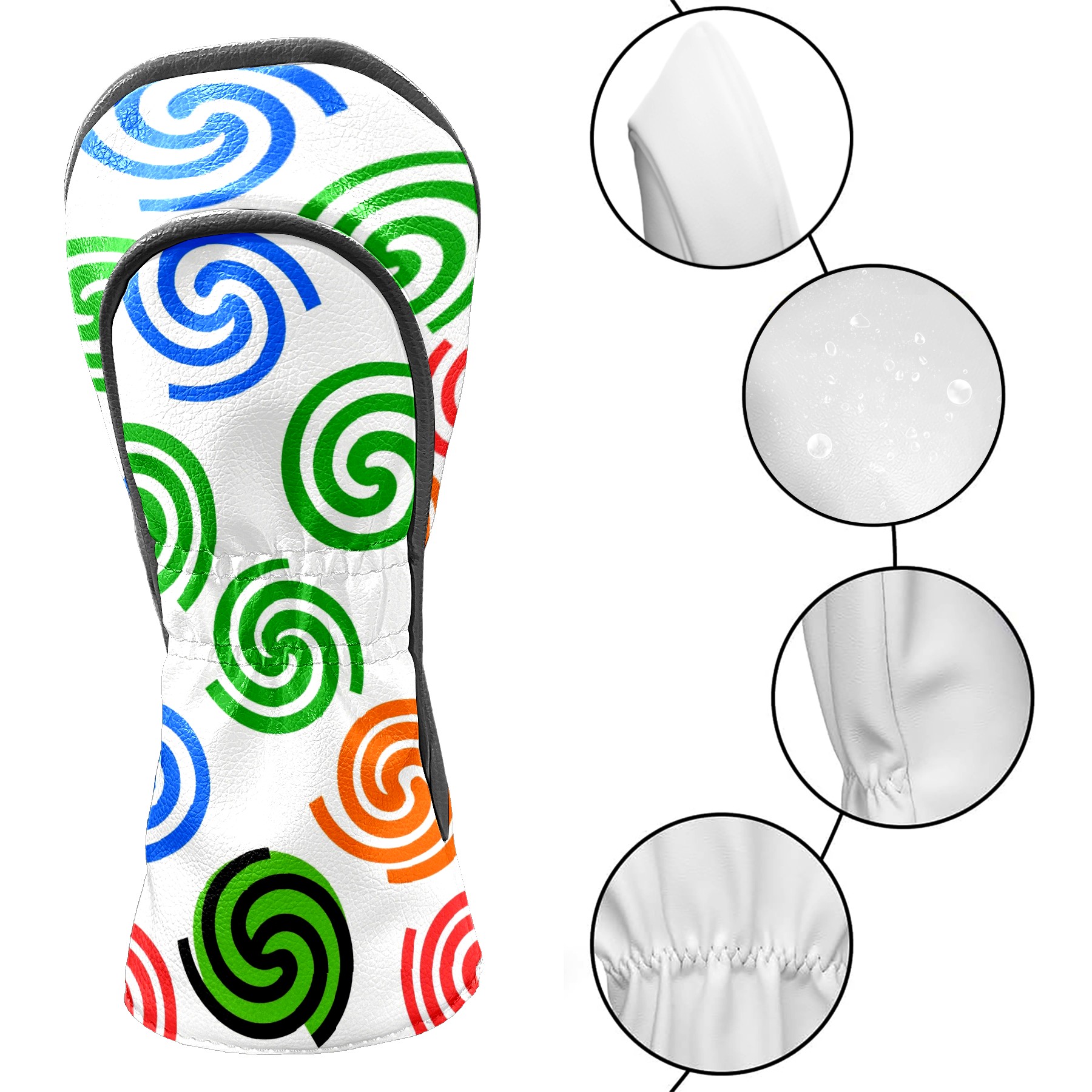 PU Leather Golf Club Head Covers, Fit Driver Head Cover/Fairway Wood Head Cover/Hybrid Club Head Cover, Men and Women Golfer Gift Swirl