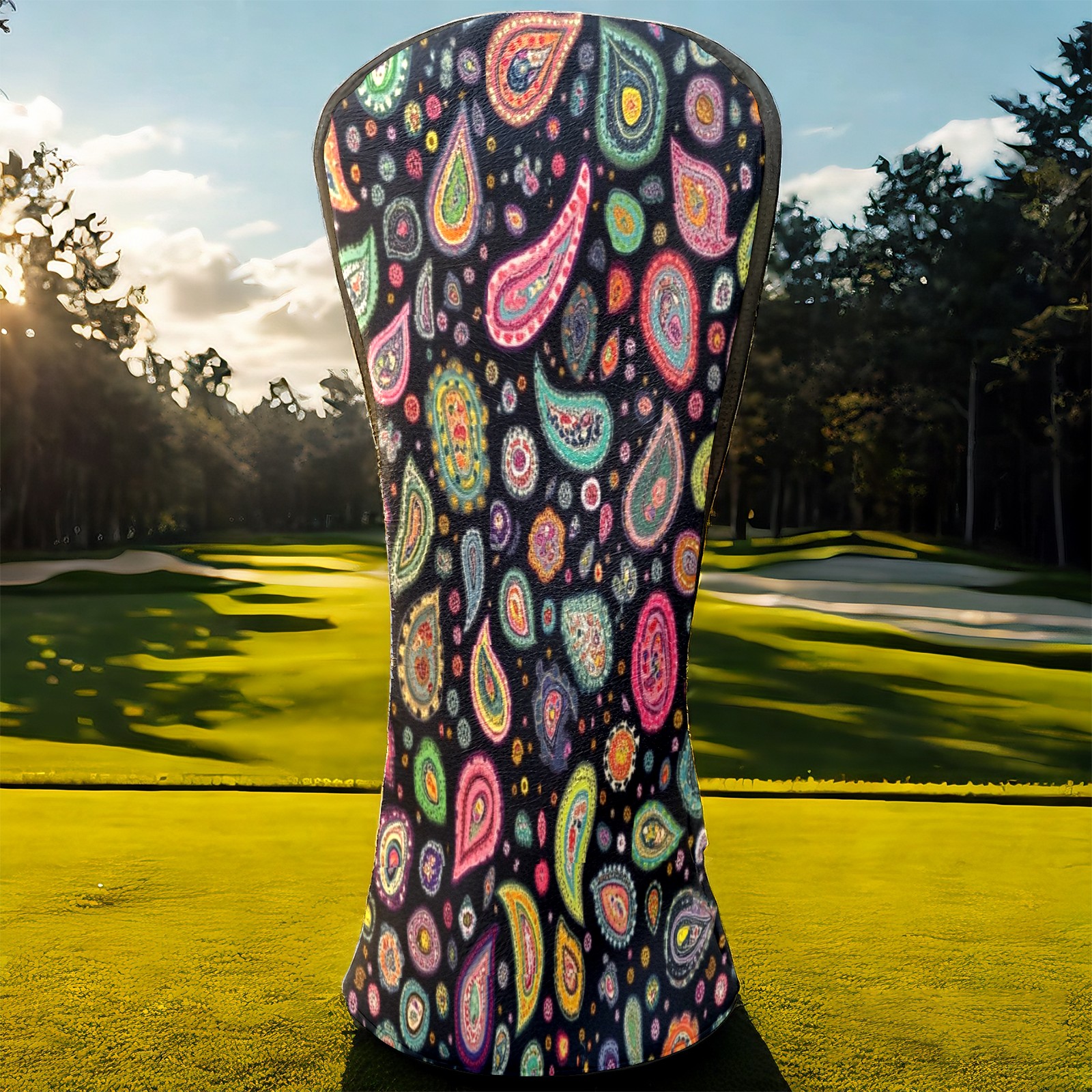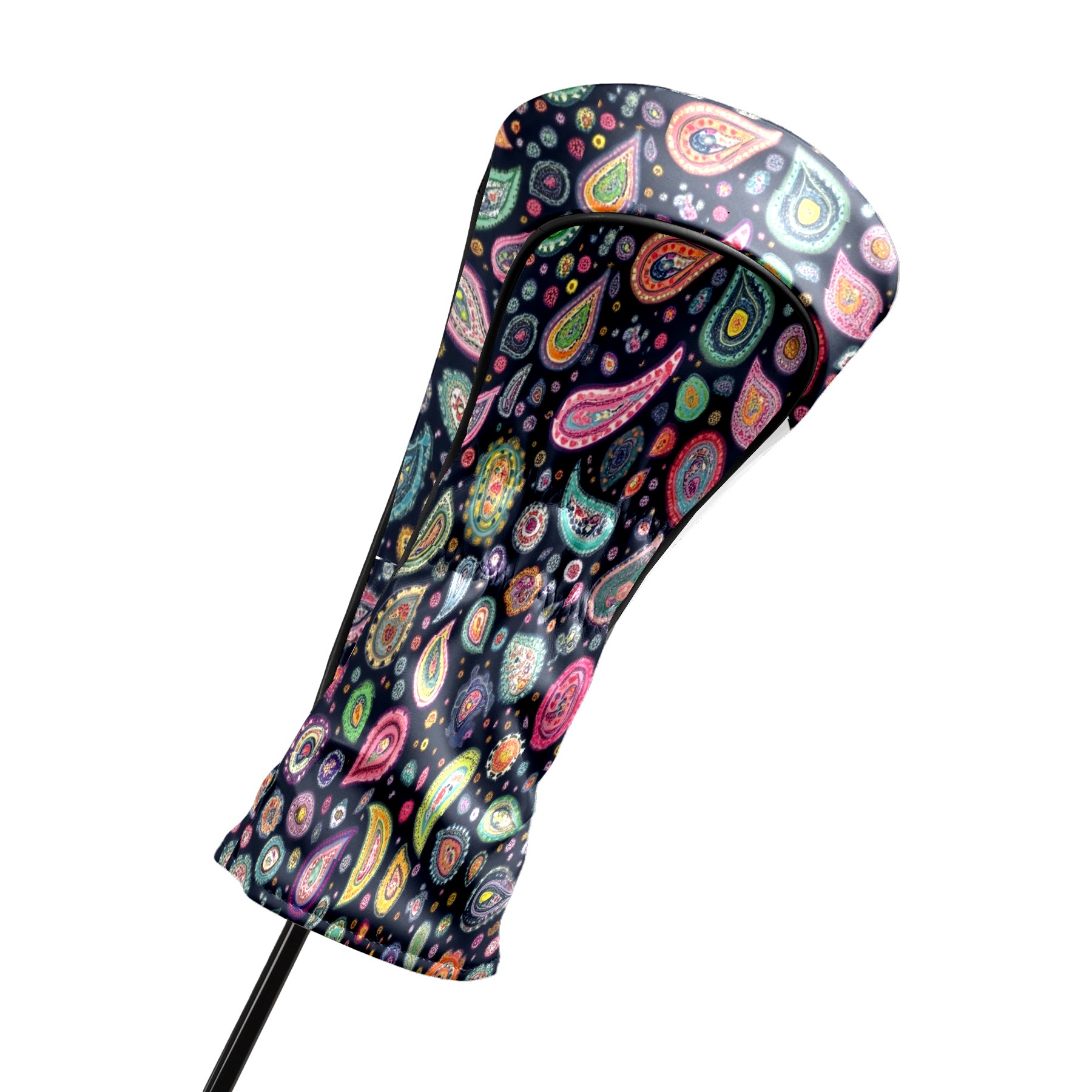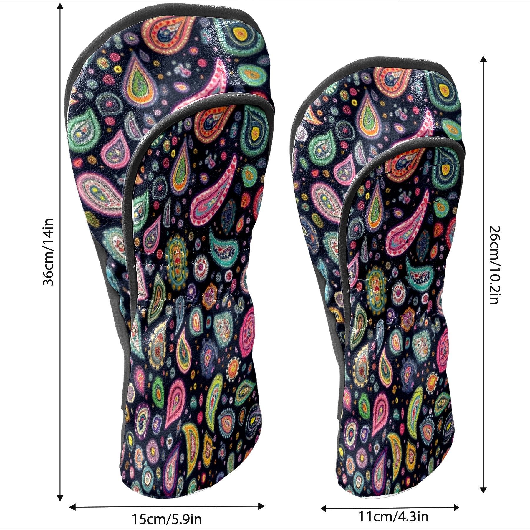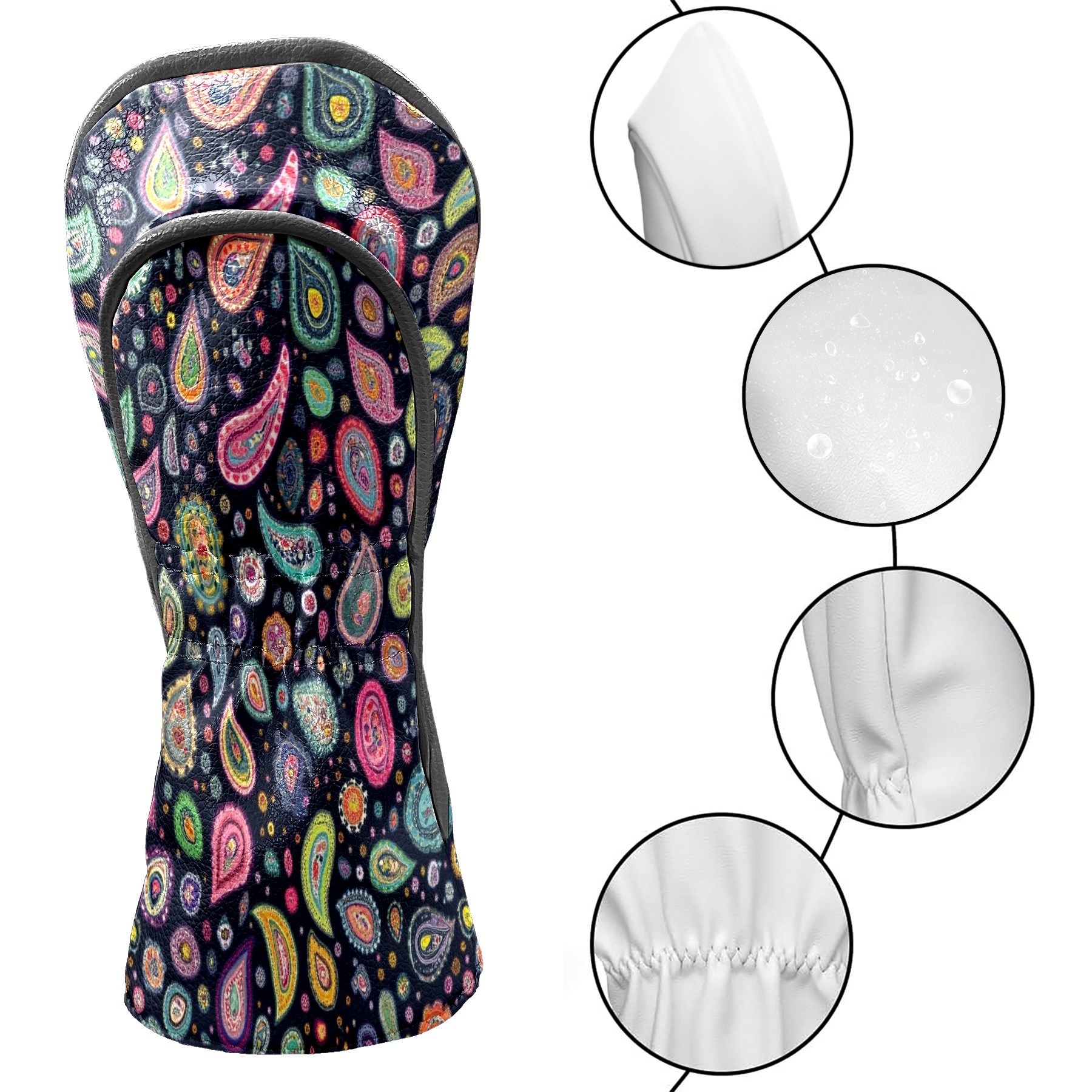 PU Leather Golf Club Head Covers, Fit Driver Head Cover/Fairway Wood Head Cover/Hybrid Club Head Cover, Men and Women Golfer Gift Colorful Paisley Designs