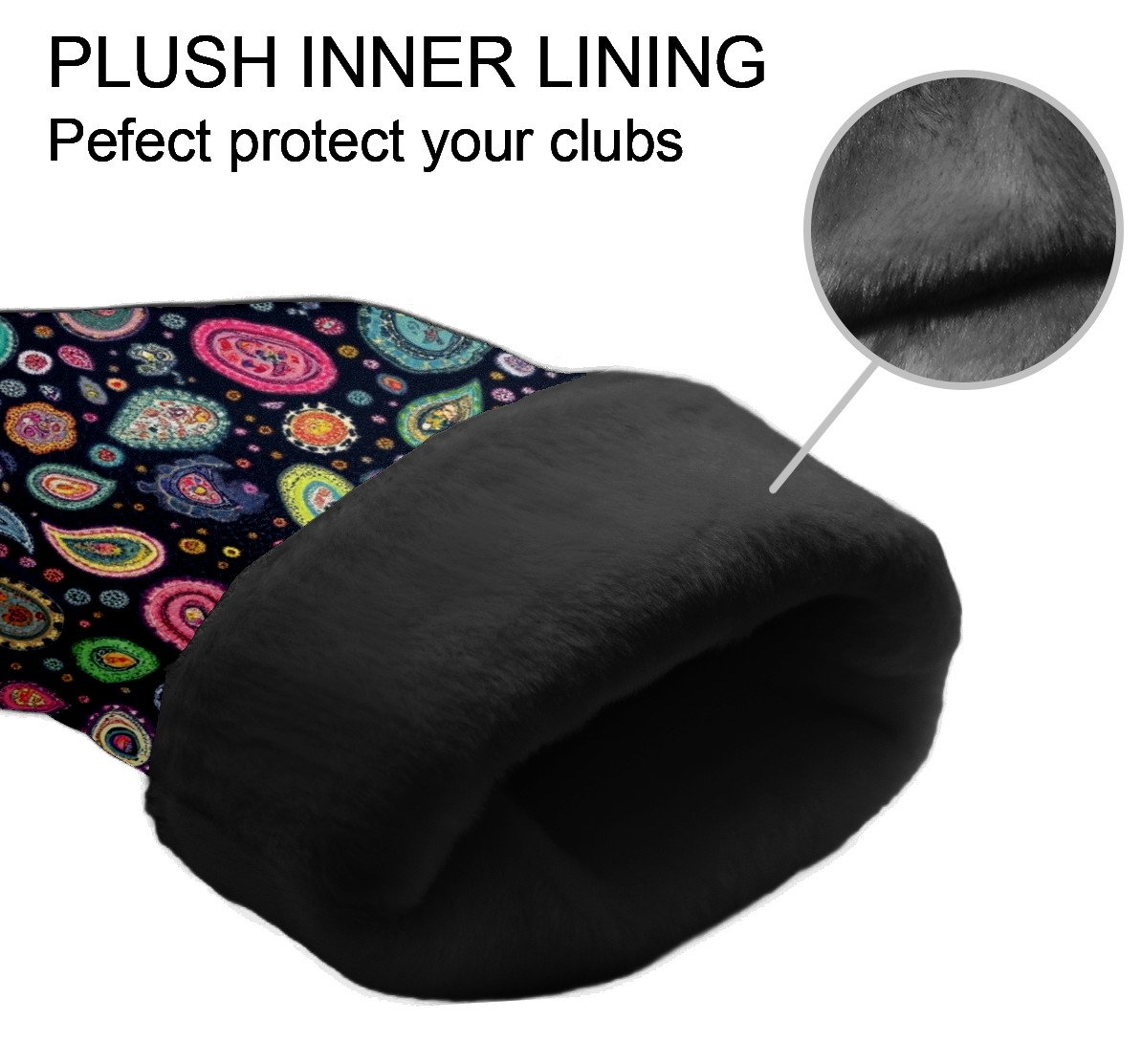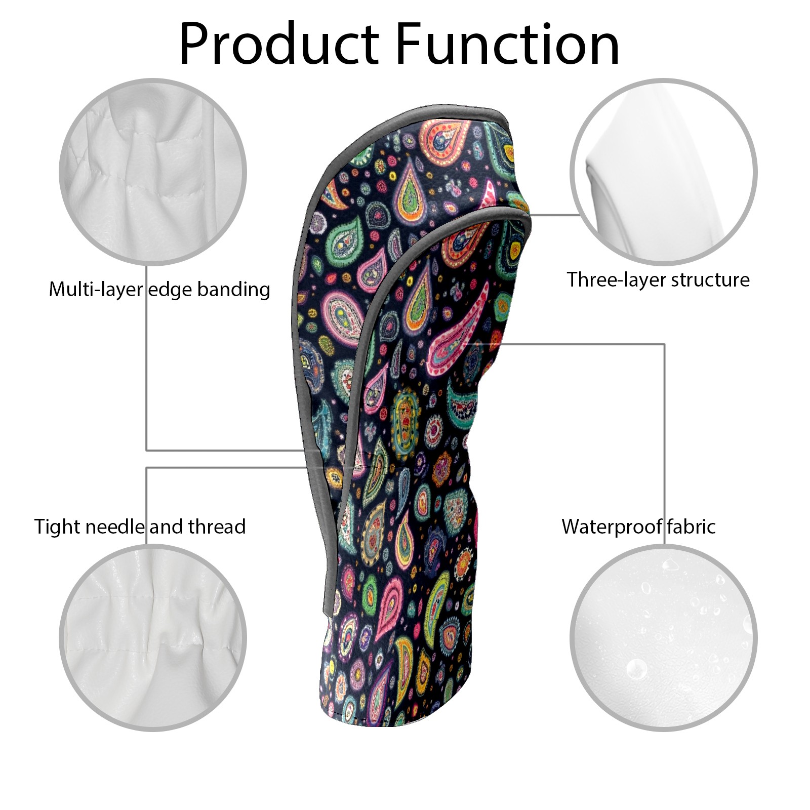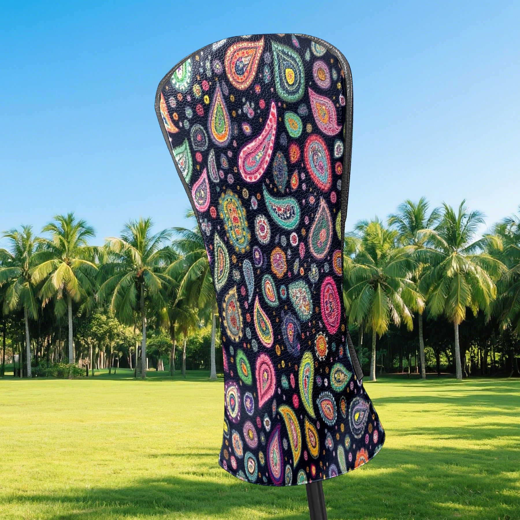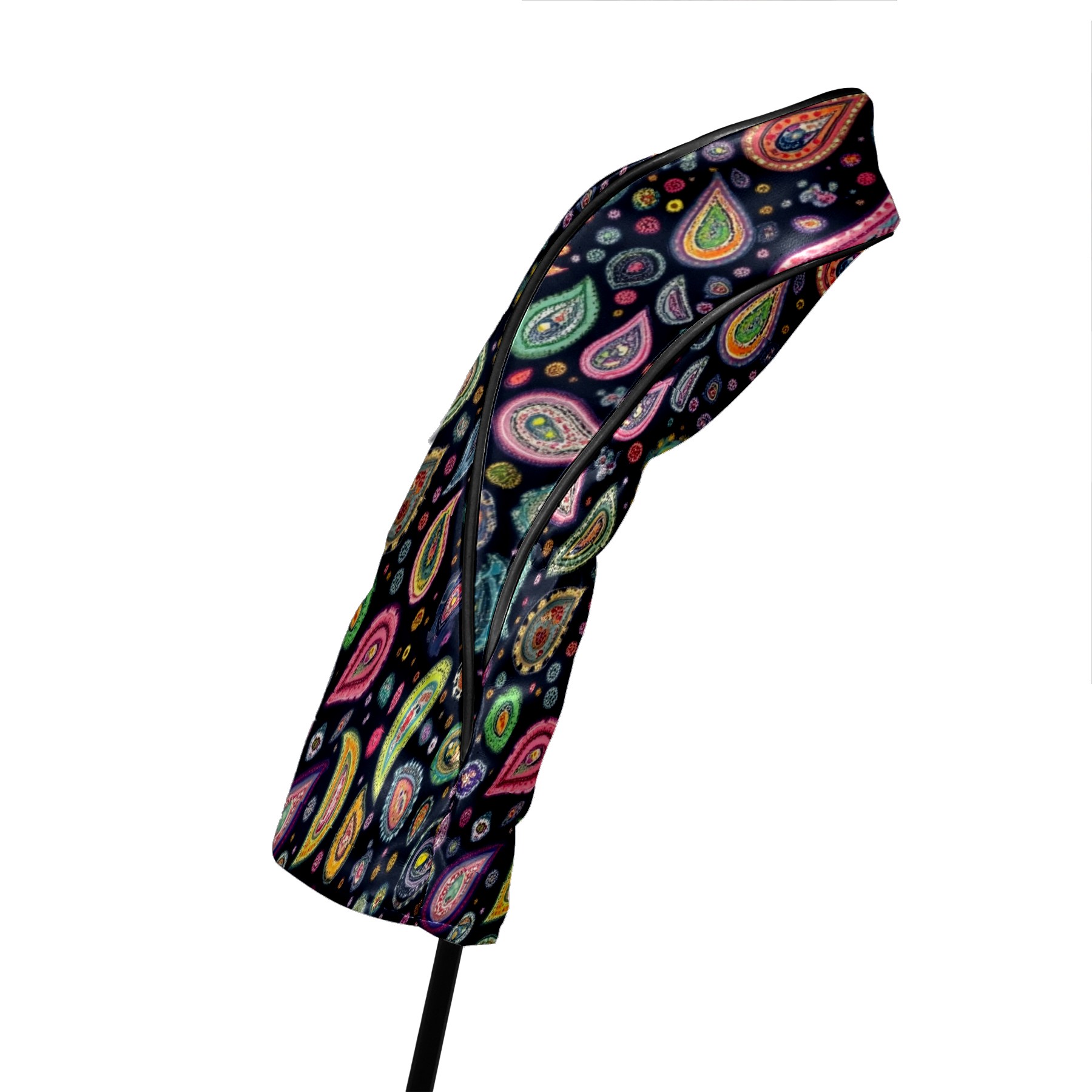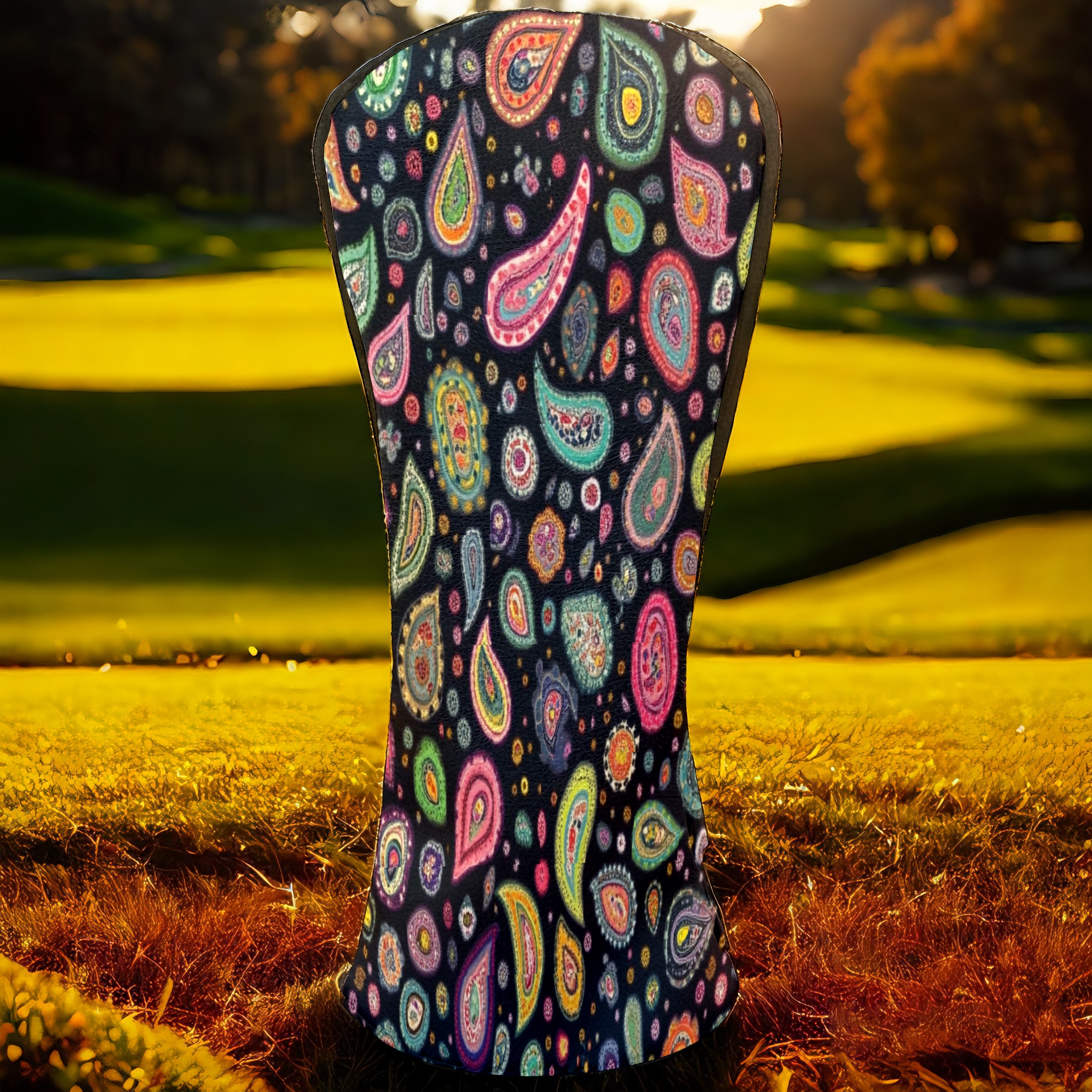 PU Leather Golf Club Head Covers, Fit Driver Head Cover/Fairway Wood Head Cover/Hybrid Club Head Cover, Men and Women Golfer Gift Colorful Paisley Designs