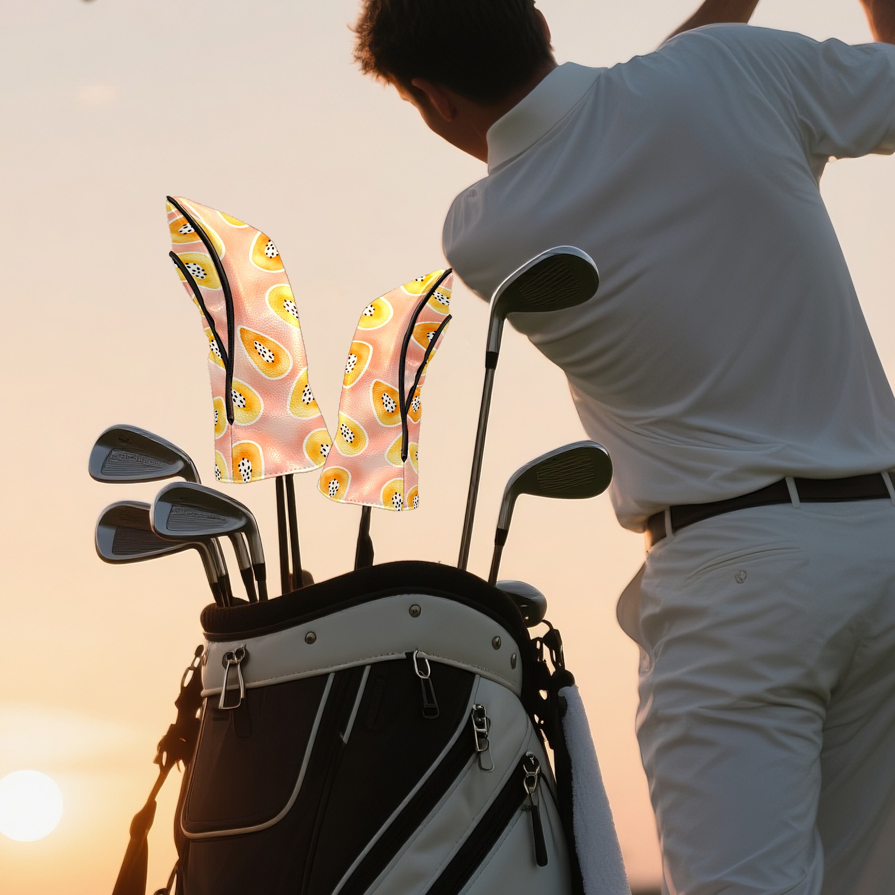 PU Leather Golf Club Head Covers, Fit Driver Head Cover/Fairway Wood Head Cover/Hybrid Club Head Cover, Men and Women Golfer Gift Pawpaw