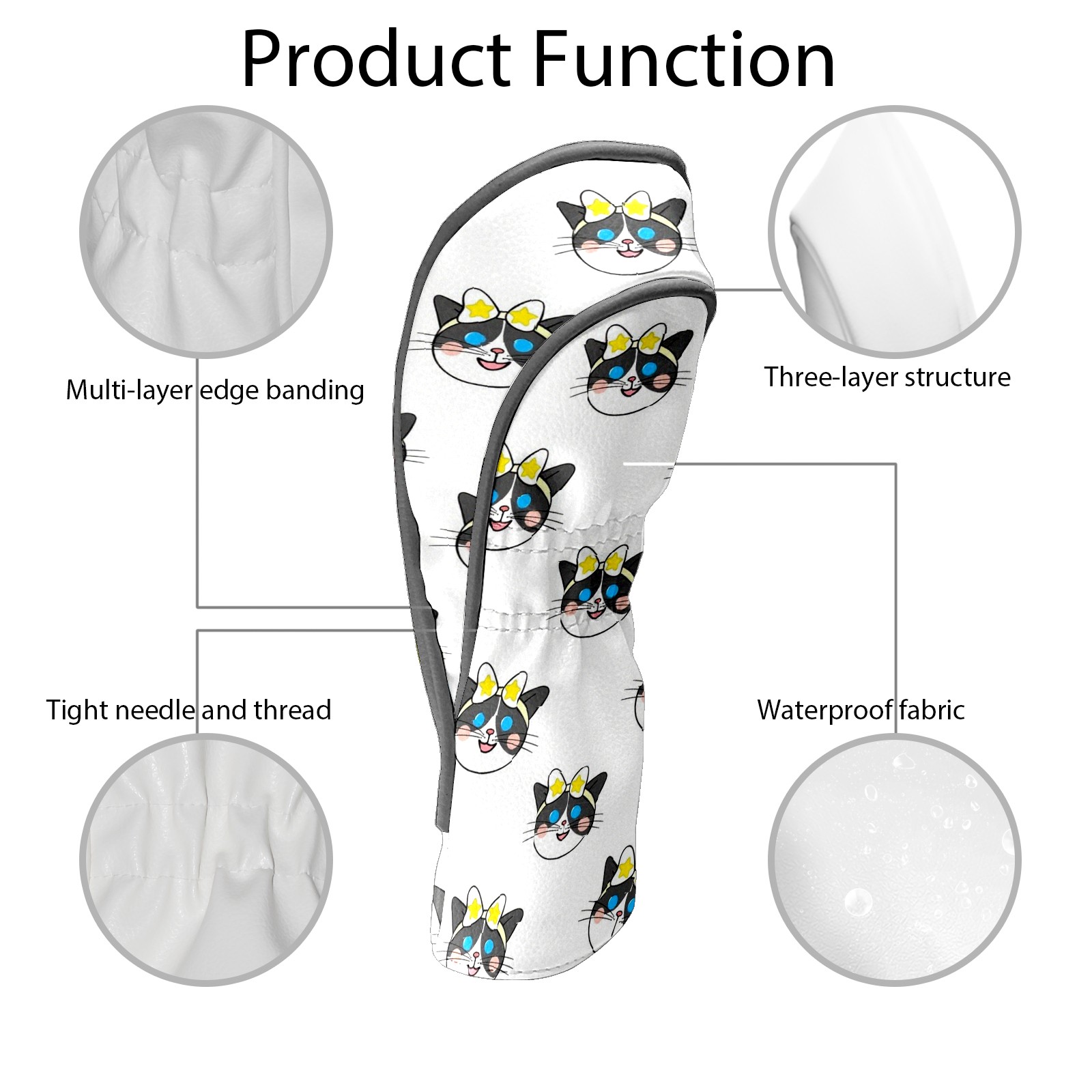 PU Leather Golf Club Head Covers, Fit Driver Head Cover/Fairway Wood Head Cover/Hybrid Club Head Cover, Men and Women Golfer Gift Cat