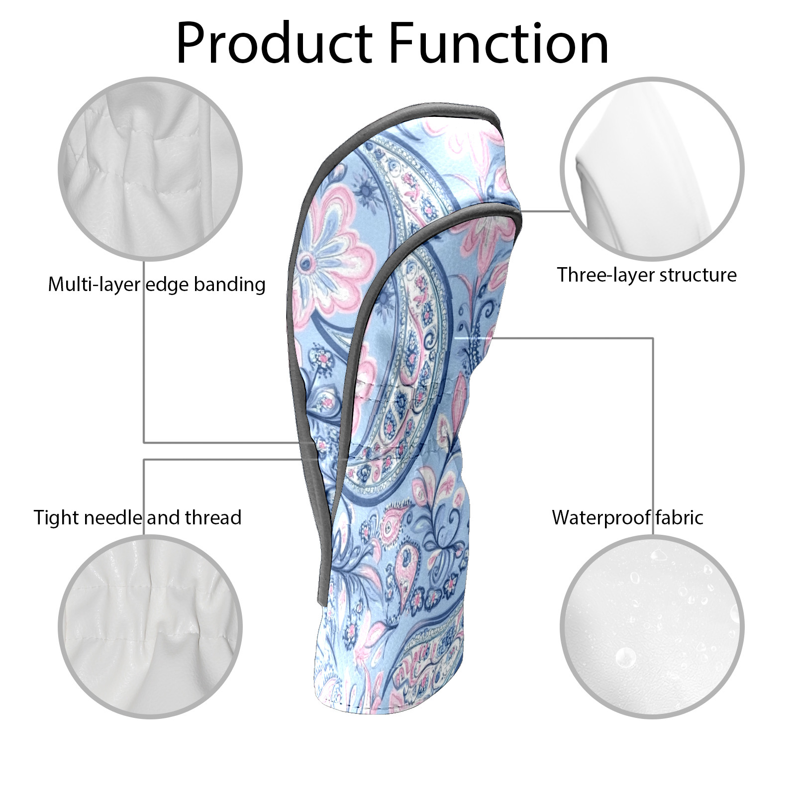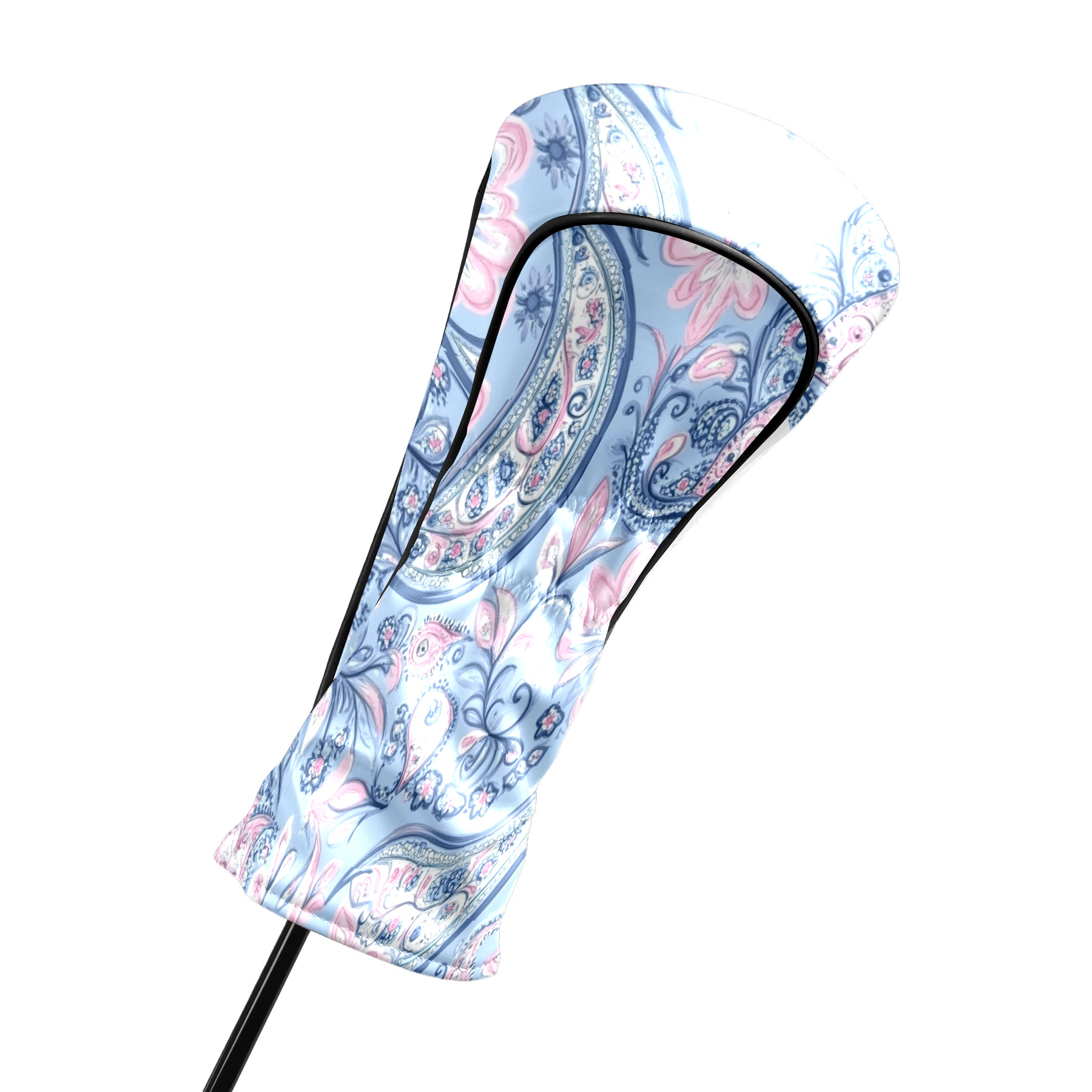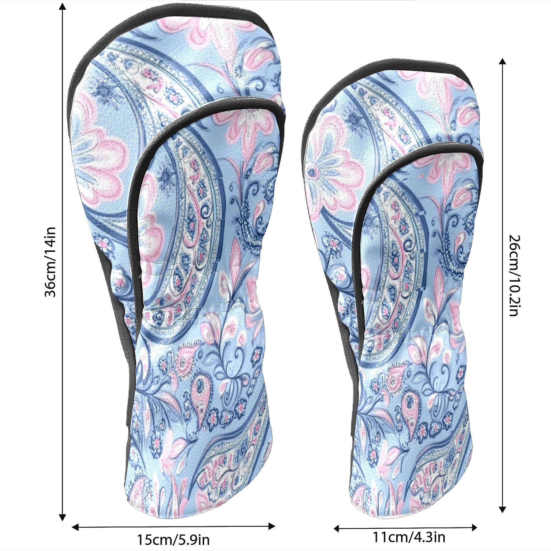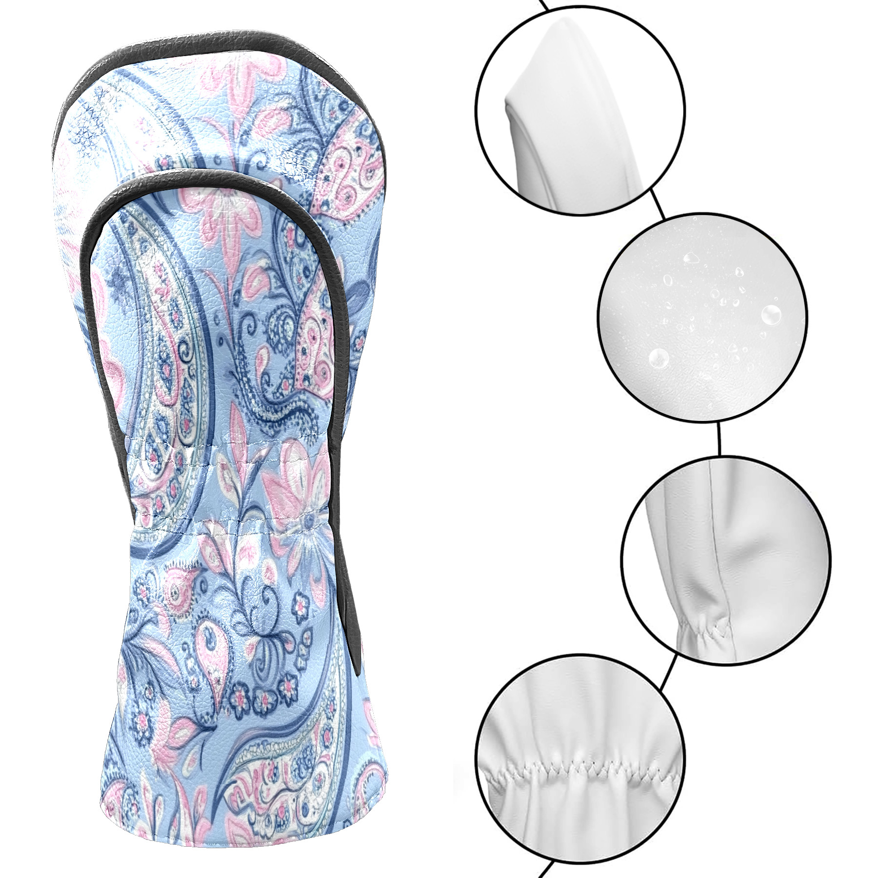 PU Leather Golf Club Head Covers, Fit Driver Head Cover/Fairway Wood Head Cover/Hybrid Club Head Cover, Men and Women Golfer Gift Blue Paisley