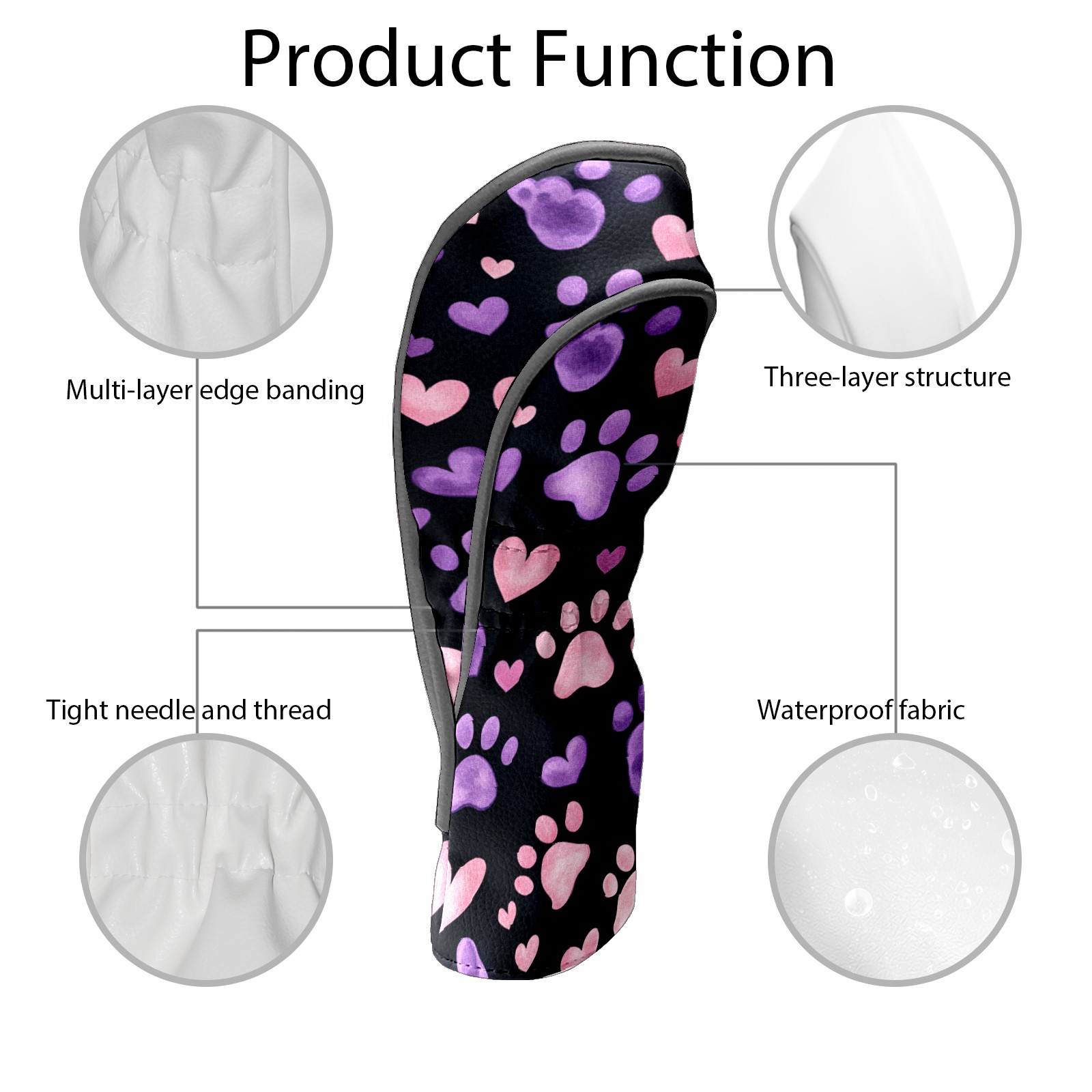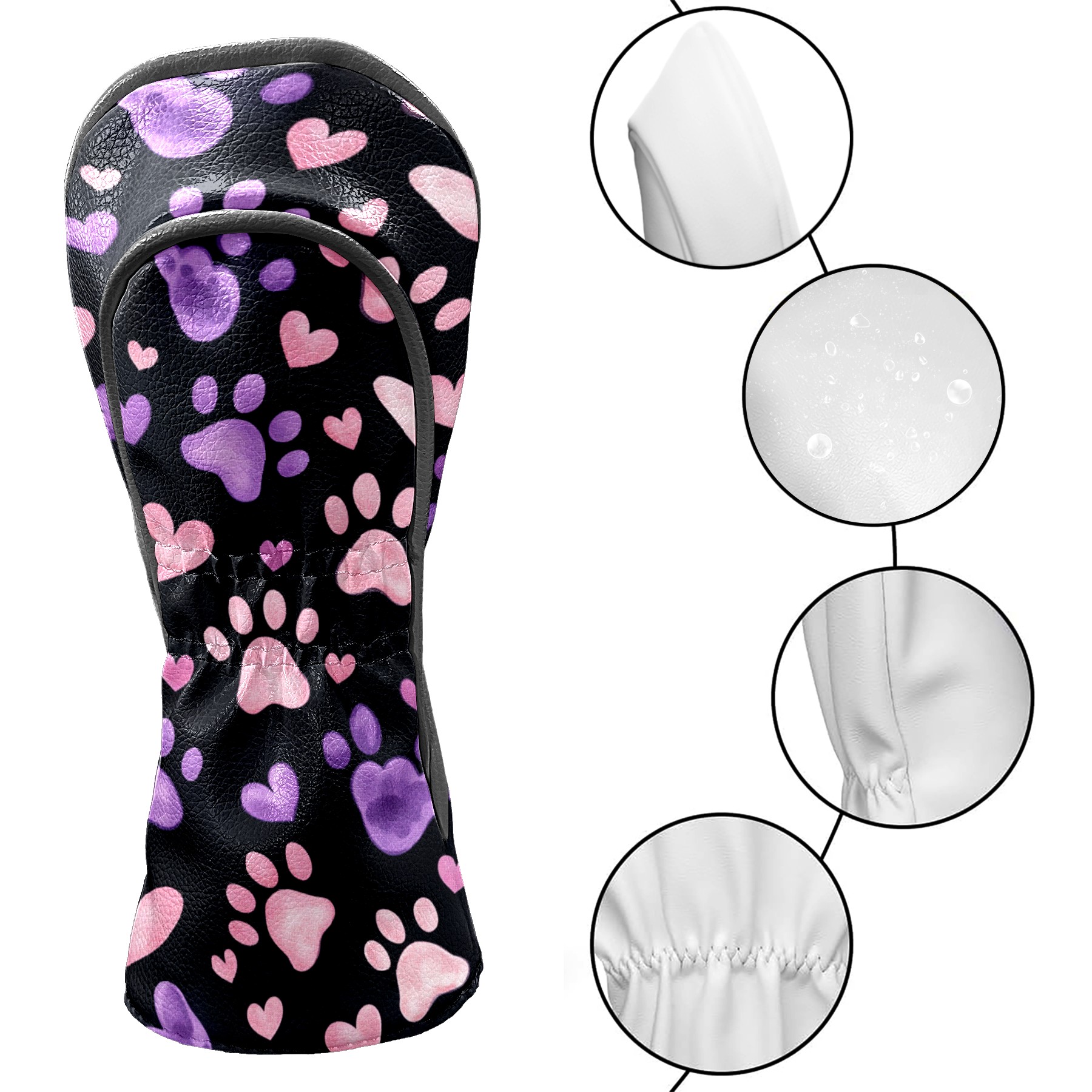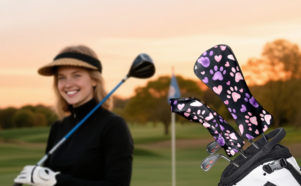 PU Leather Golf Club Head Covers, Fit Driver Head Cover/Fairway Wood Head Cover/Hybrid Club Head Cover, Men and Women Golfer Gift Simple Paw Prints
