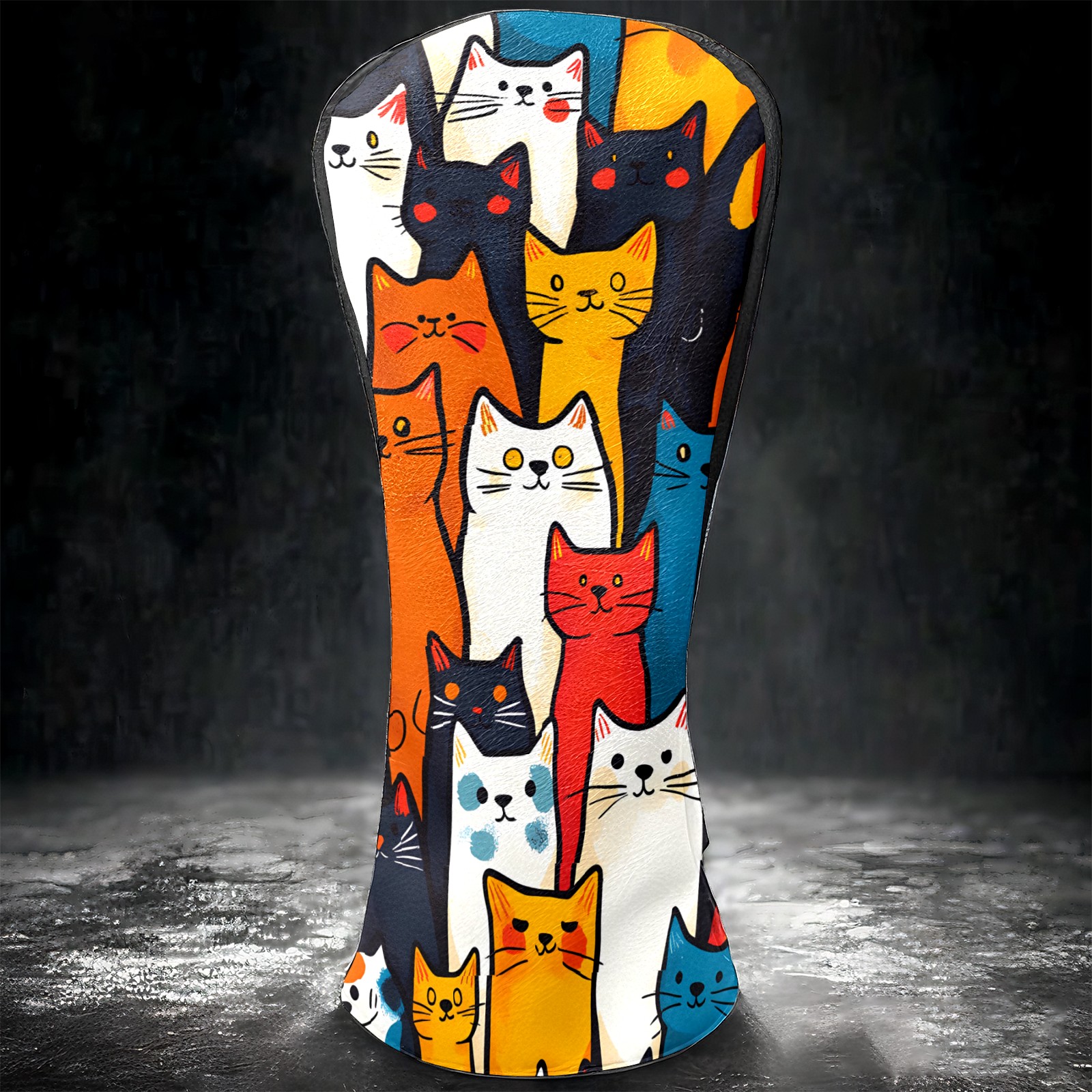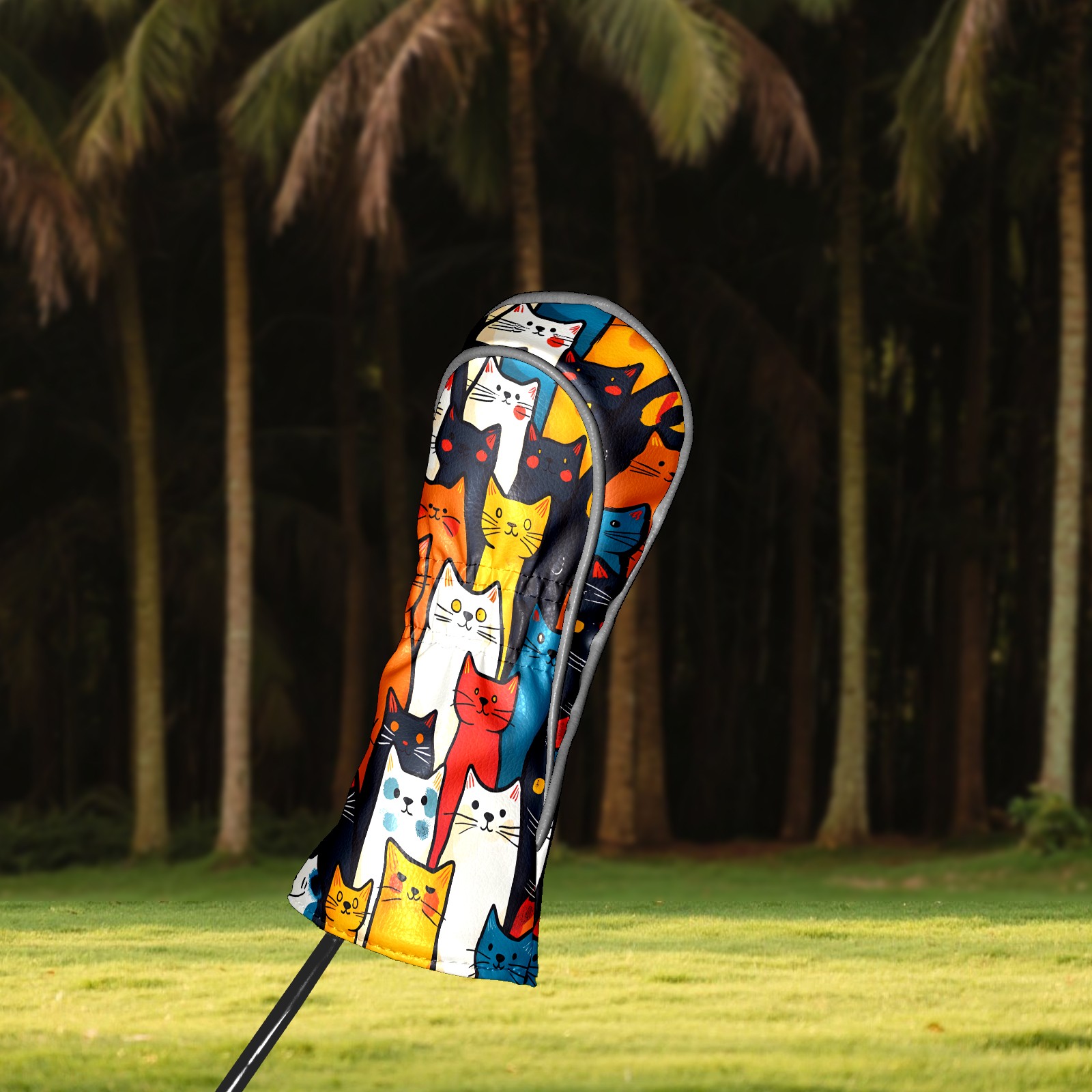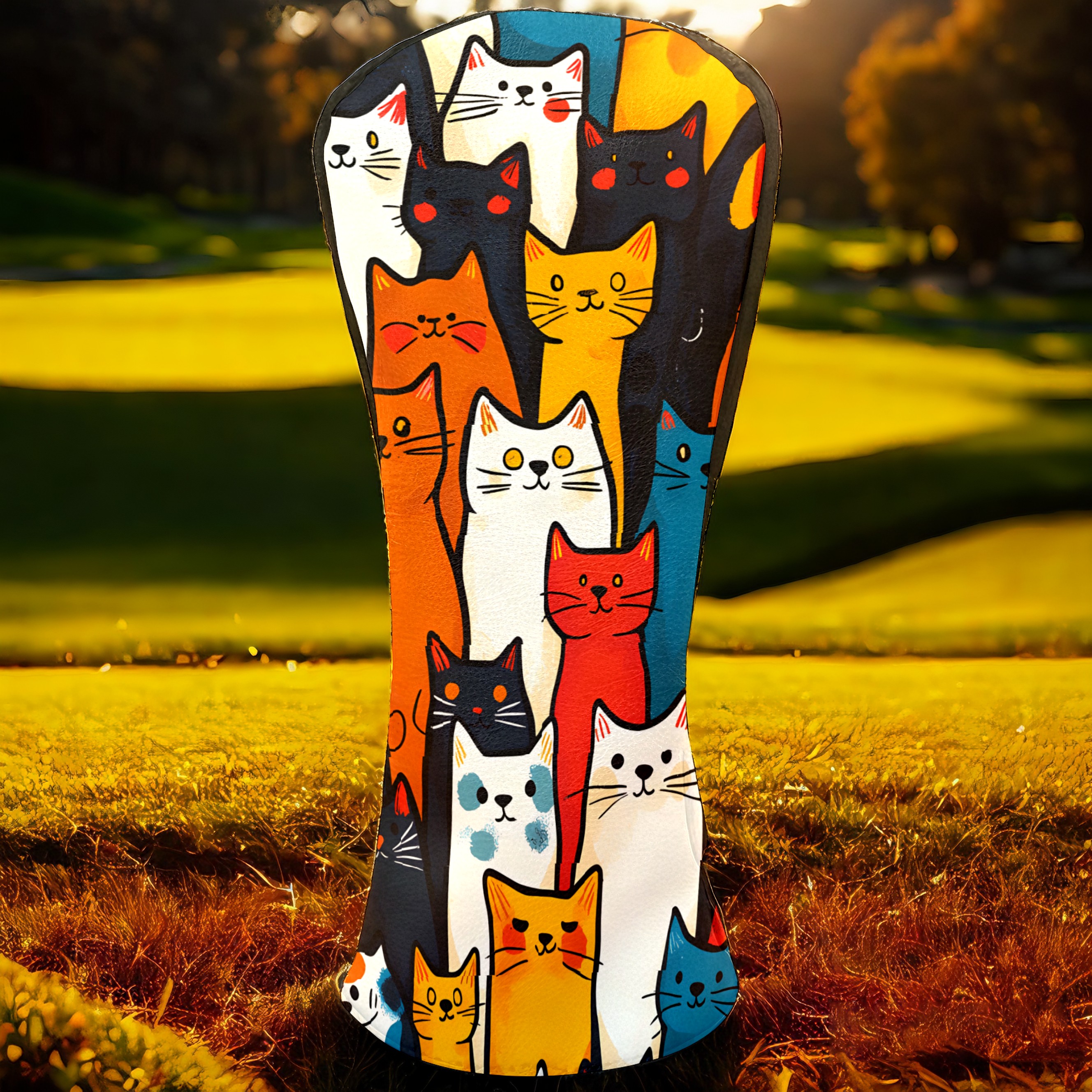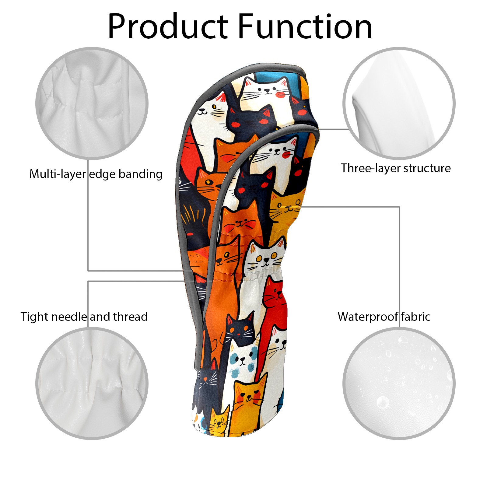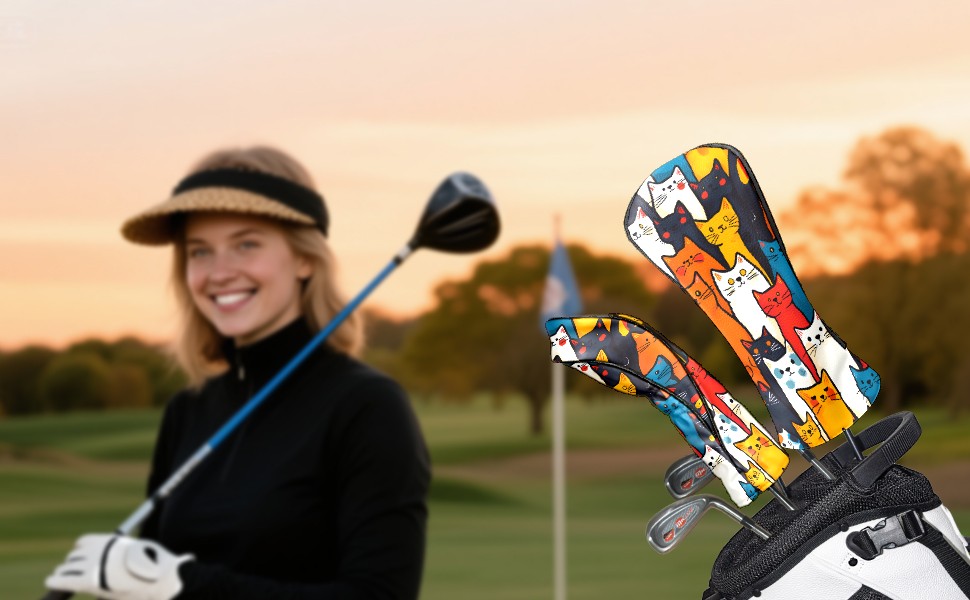 PU Leather Golf Club Head Covers, Fit Driver Head Cover/Fairway Wood Head Cover/Hybrid Club Head Cover, Men and Women Golfer Gift Simple Line Cat