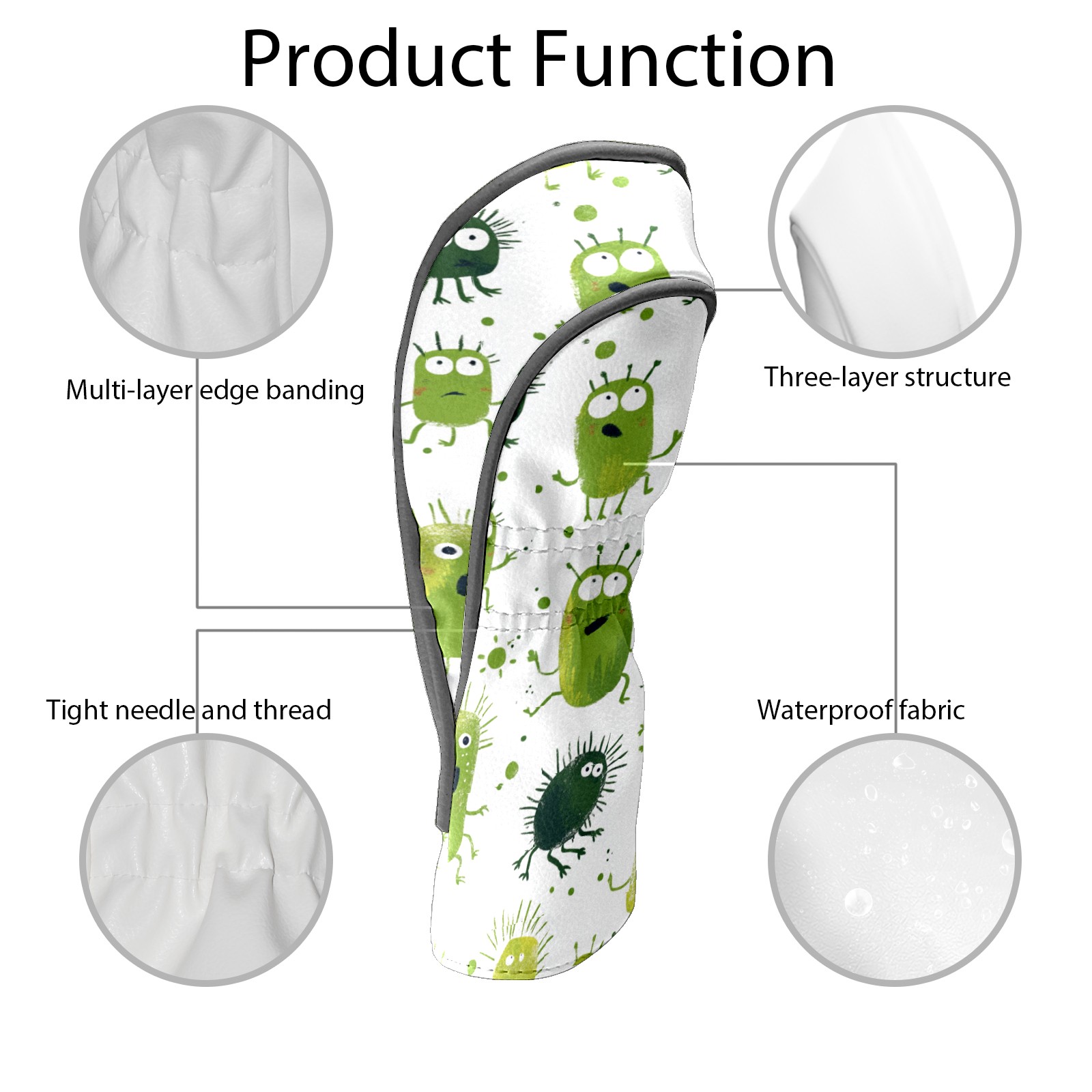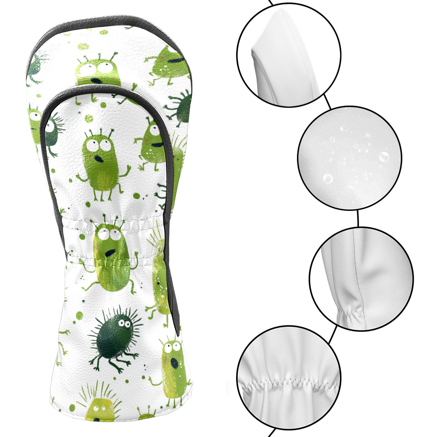 PU Leather Golf Club Head Covers, Fit Driver Head Cover/Fairway Wood Head Cover/Hybrid Club Head Cover, Men and Women Golfer Gift Green Bug