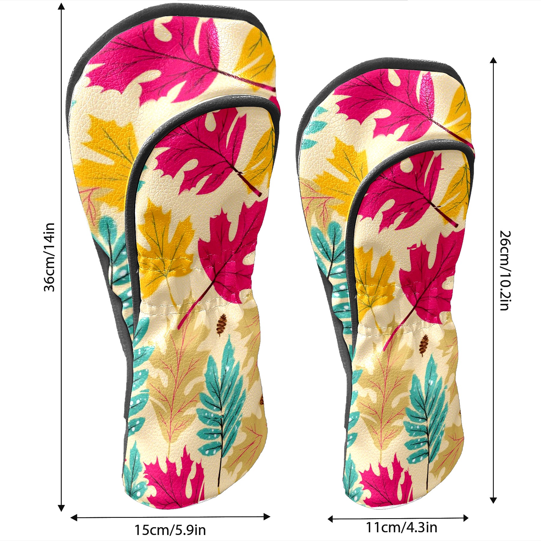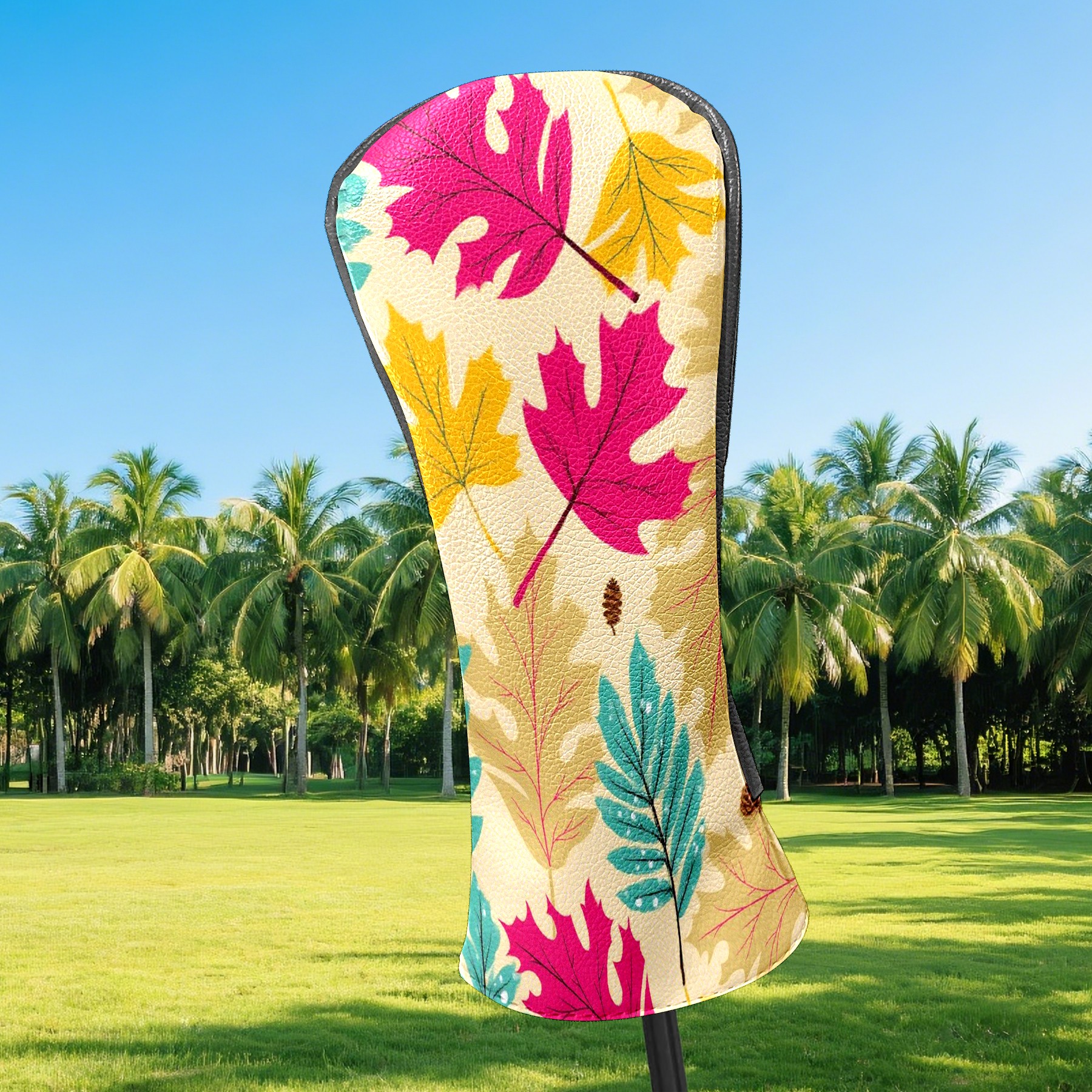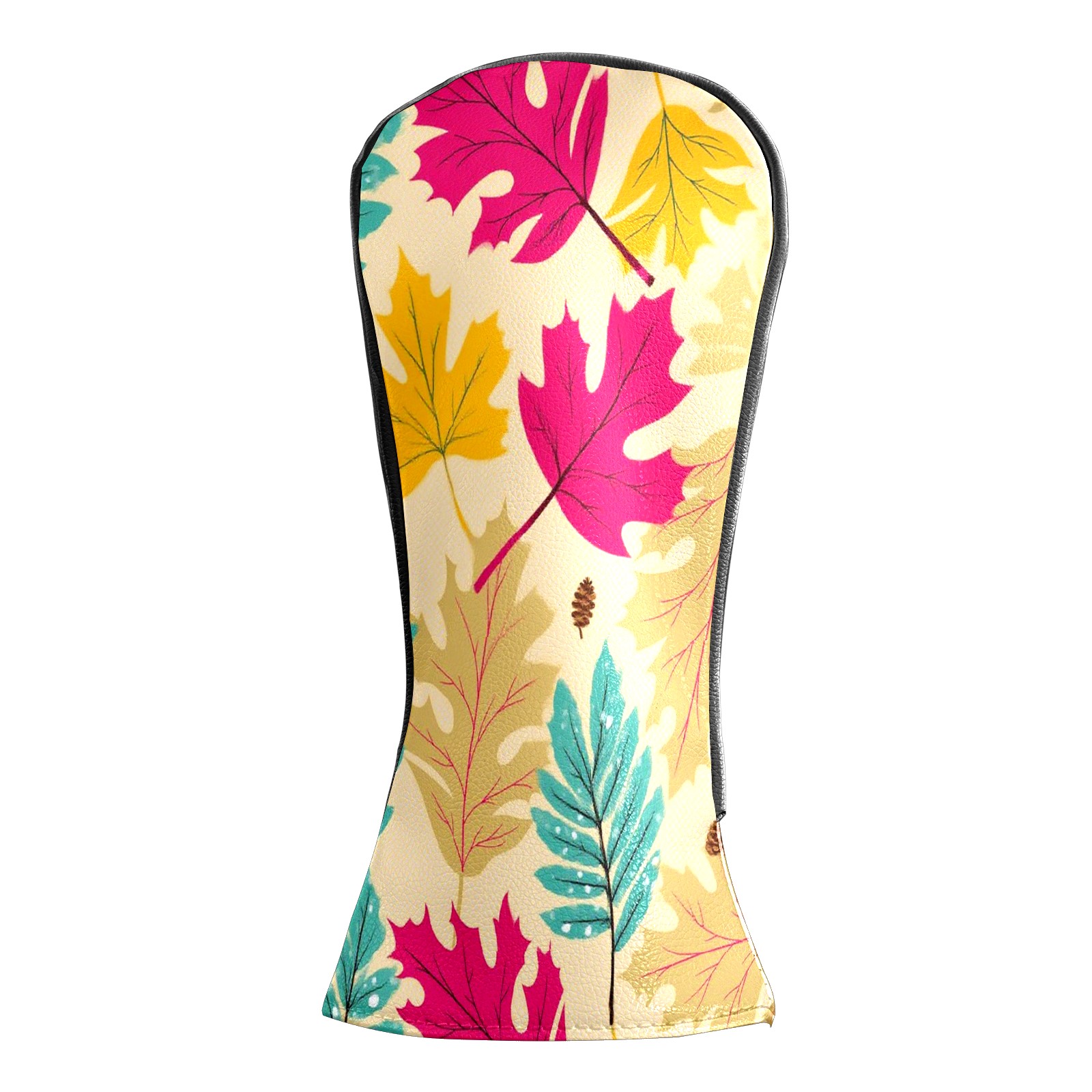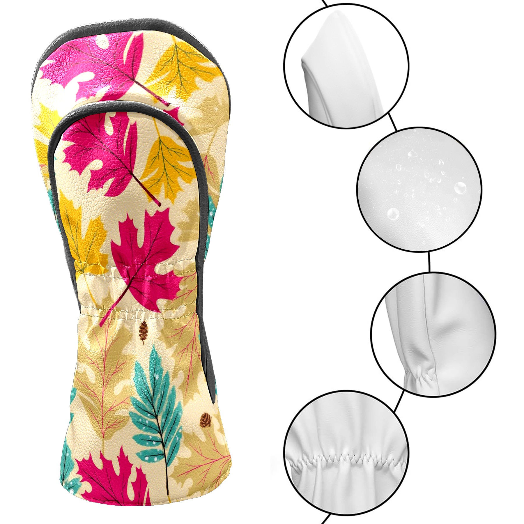 PU Leather Golf Club Head Covers, Fit Driver Head Cover/Fairway Wood Head Cover/Hybrid Club Head Cover, Men and Women Golfer Gift Leaves