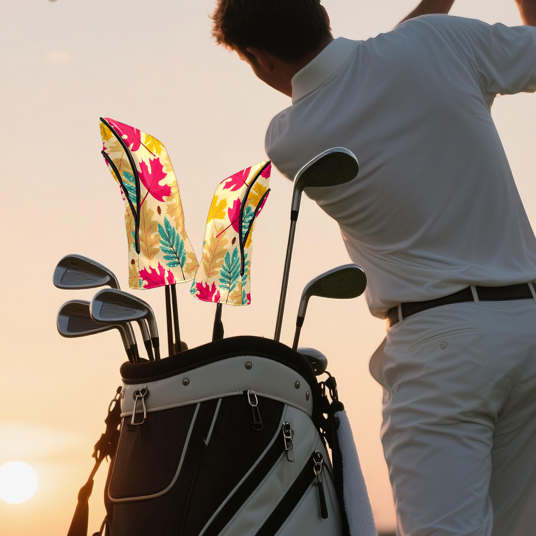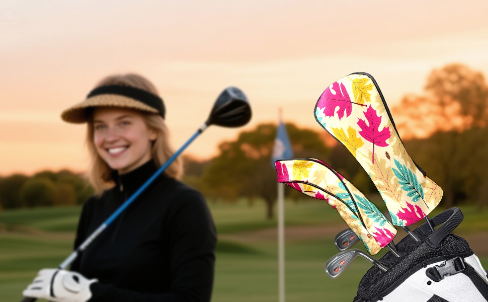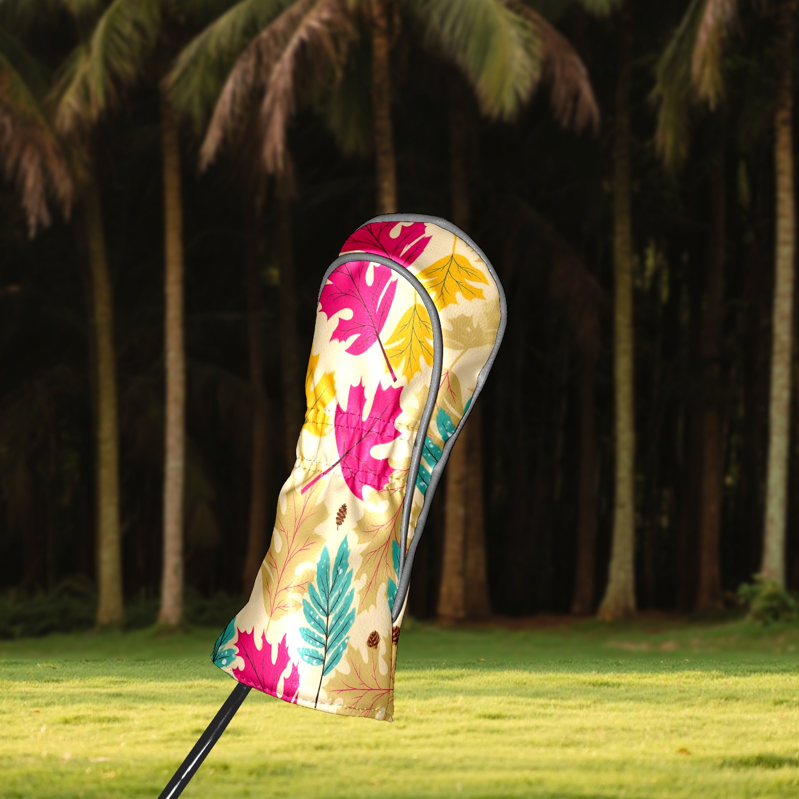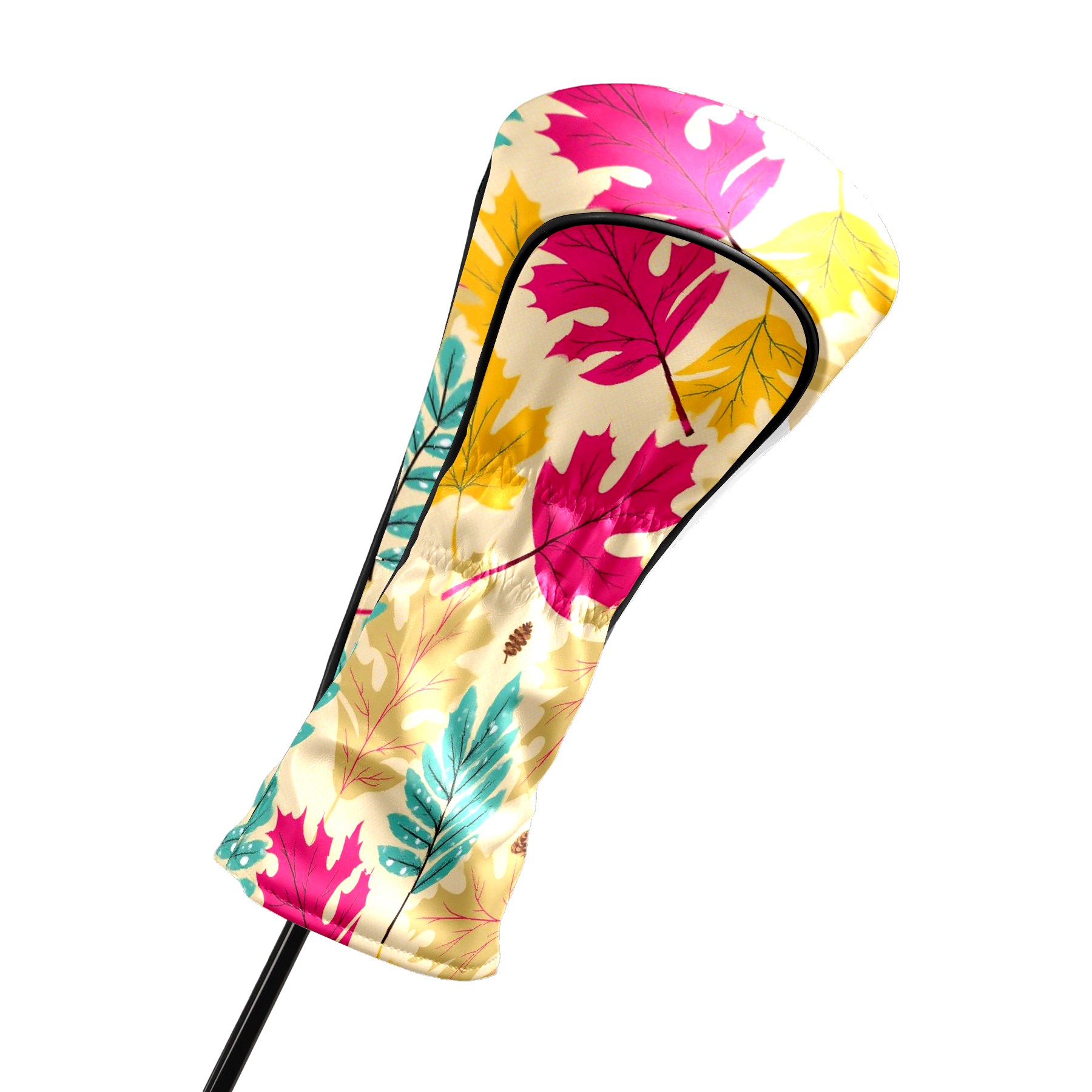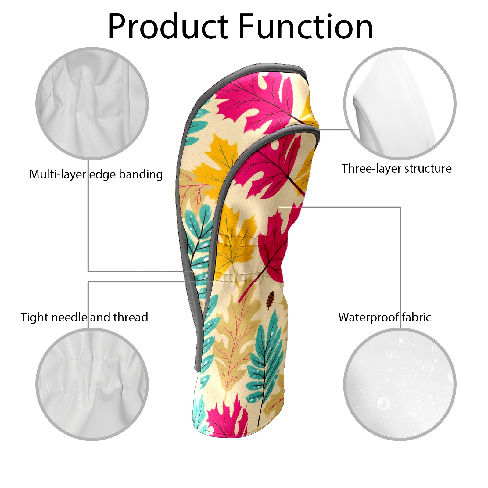 PU Leather Golf Club Head Covers, Fit Driver Head Cover/Fairway Wood Head Cover/Hybrid Club Head Cover, Men and Women Golfer Gift Leaves