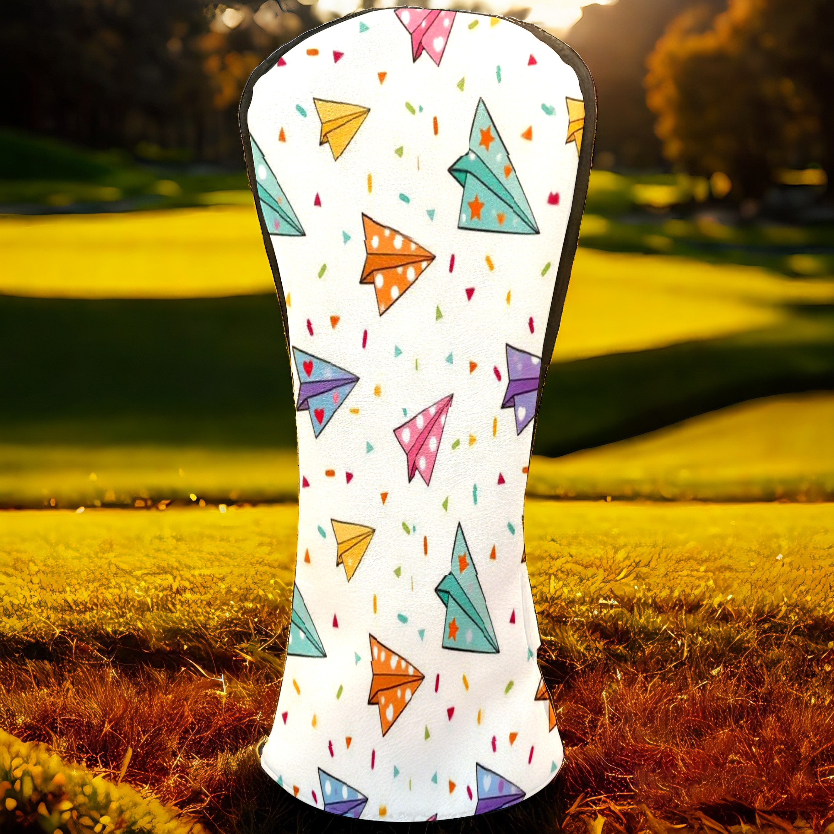 PU Leather Golf Club Head Covers, Fit Driver Head Cover/Fairway Wood Head Cover/Hybrid Club Head Cover, Men and Women Golfer Gift Paper Airplanes