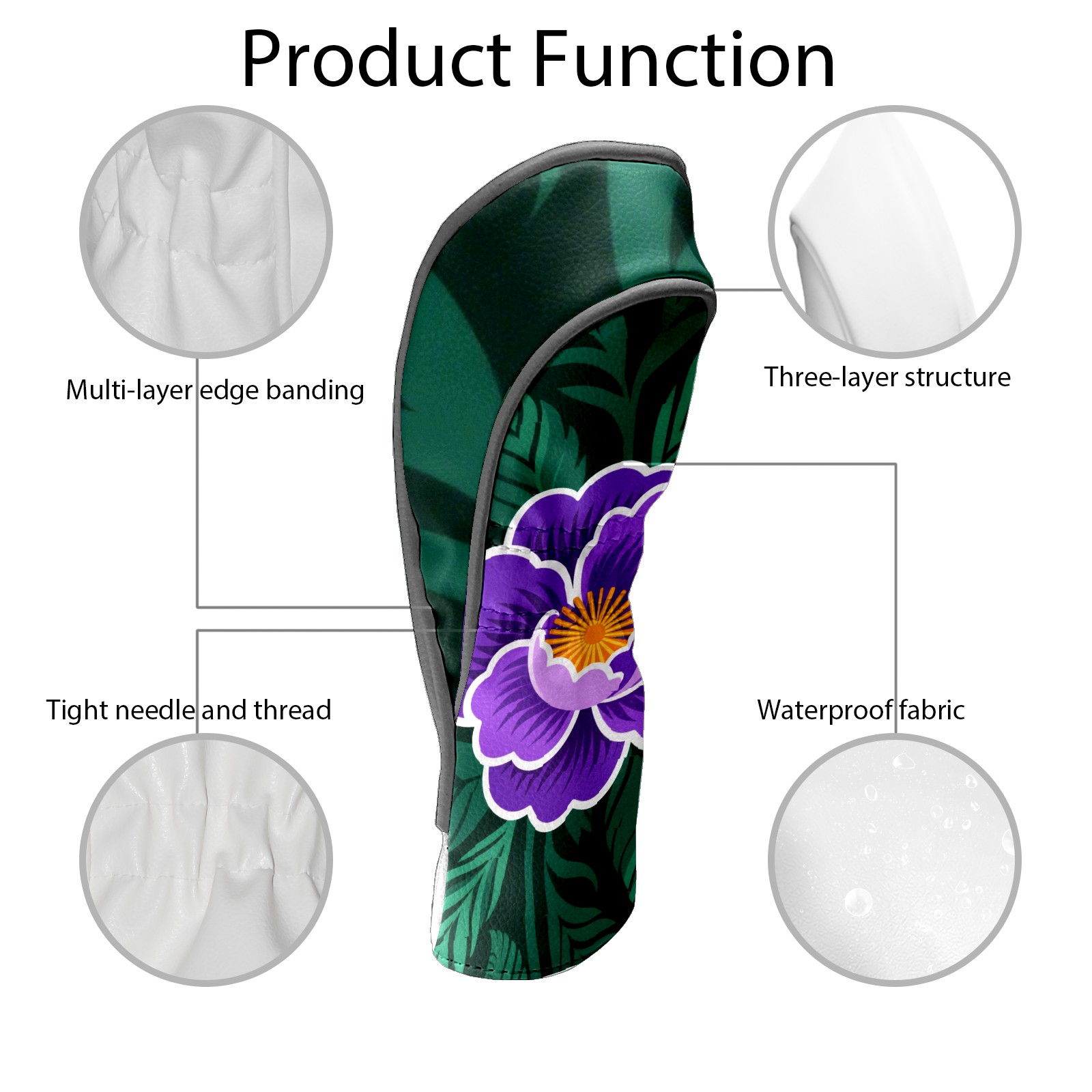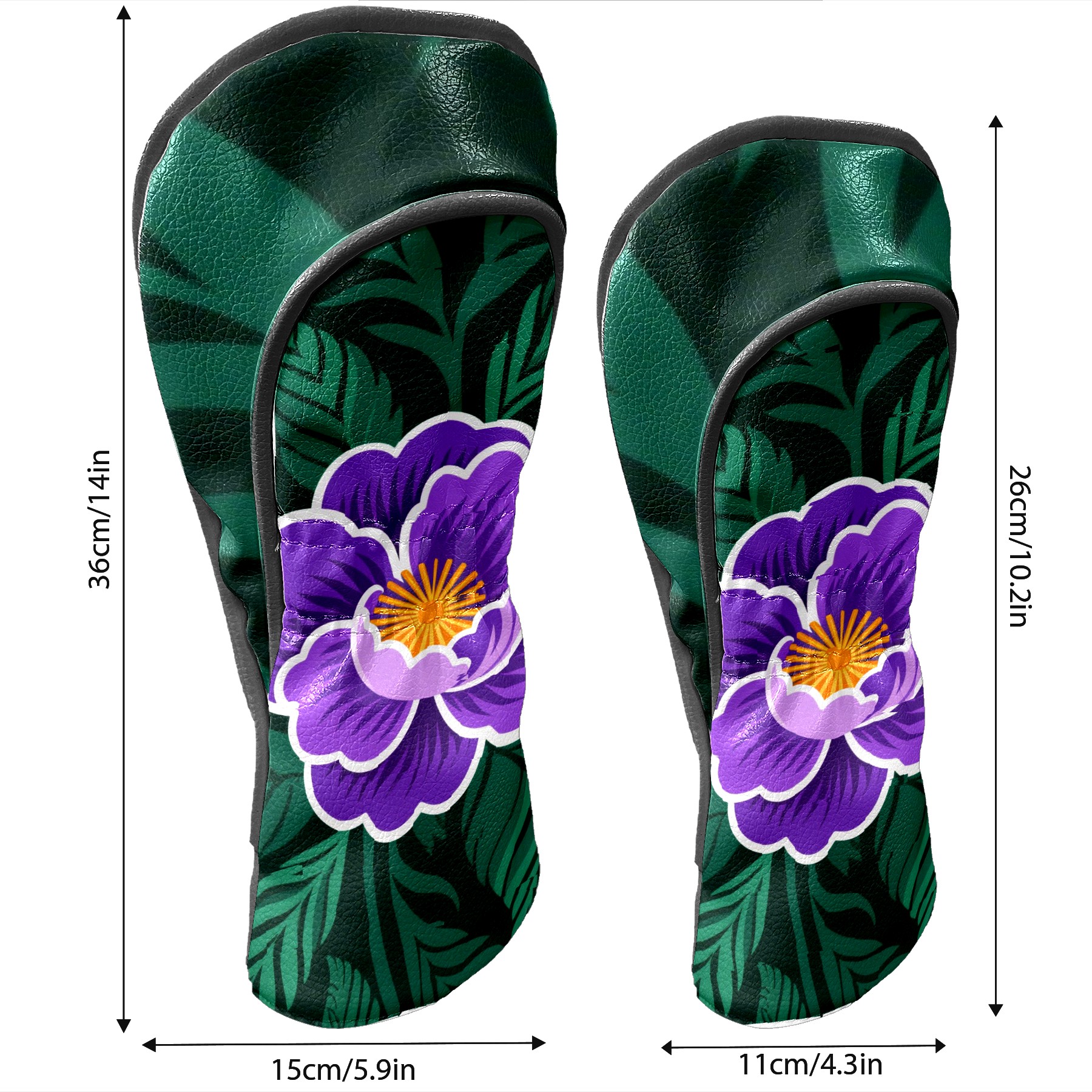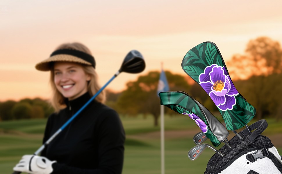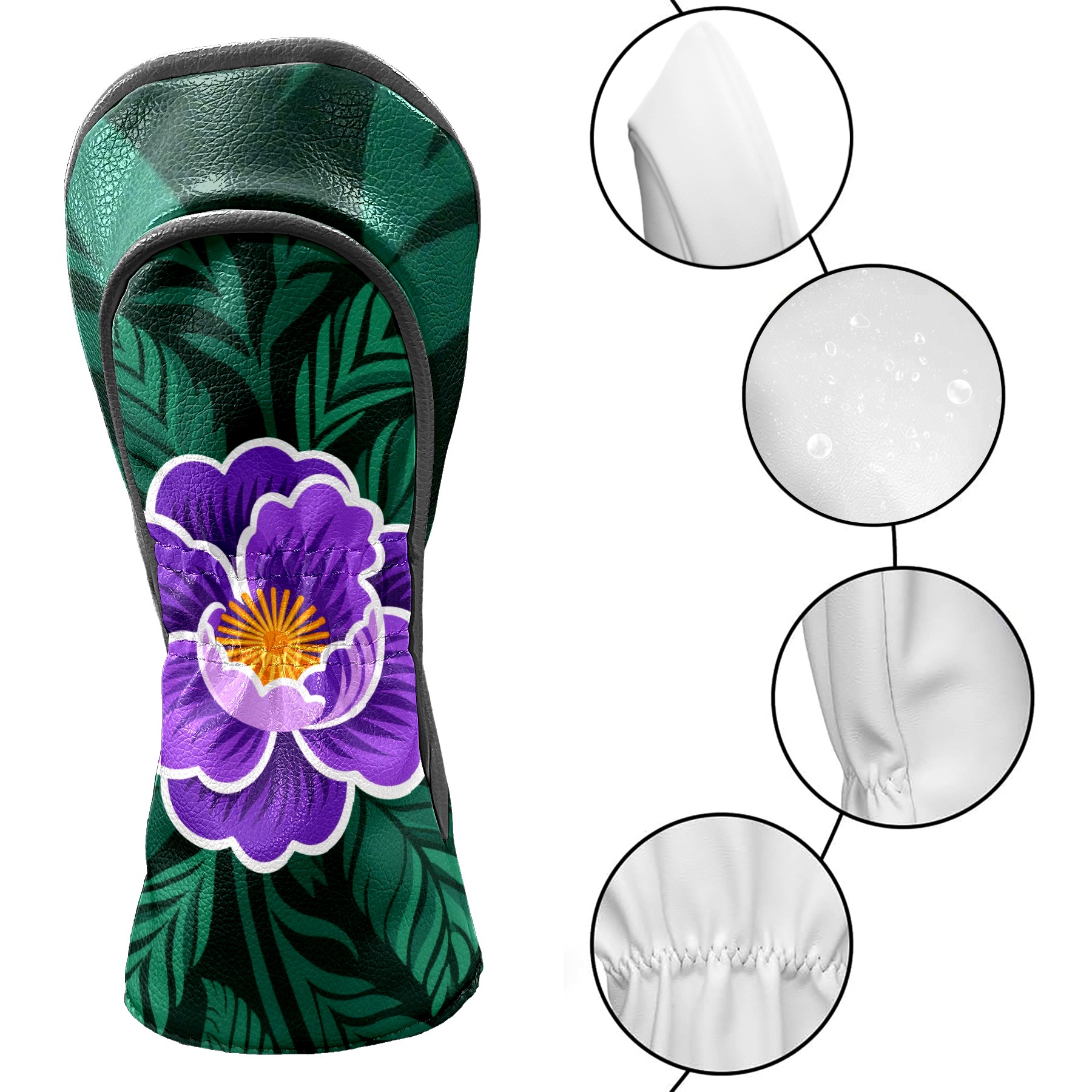 PU Leather Golf Club Head Covers, Fit Driver Head Cover/Fairway Wood Head Cover/Hybrid Club Head Cover, Men and Women Golfer Gift Flower