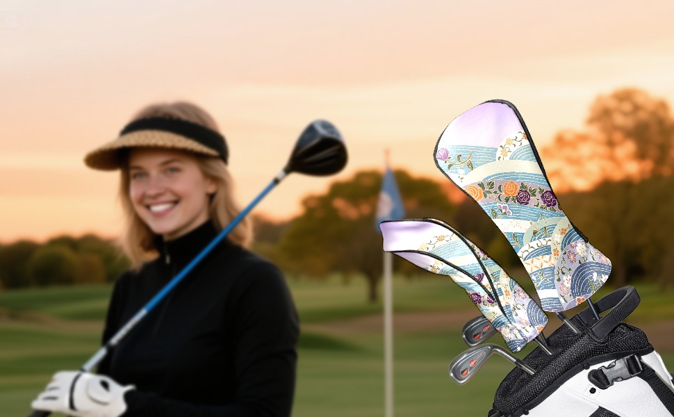 PU Leather Golf Club Head Covers, Fit Driver Head Cover/Fairway Wood Head Cover/Hybrid Club Head Cover, Men and Women Golfer Gift Japanese Style