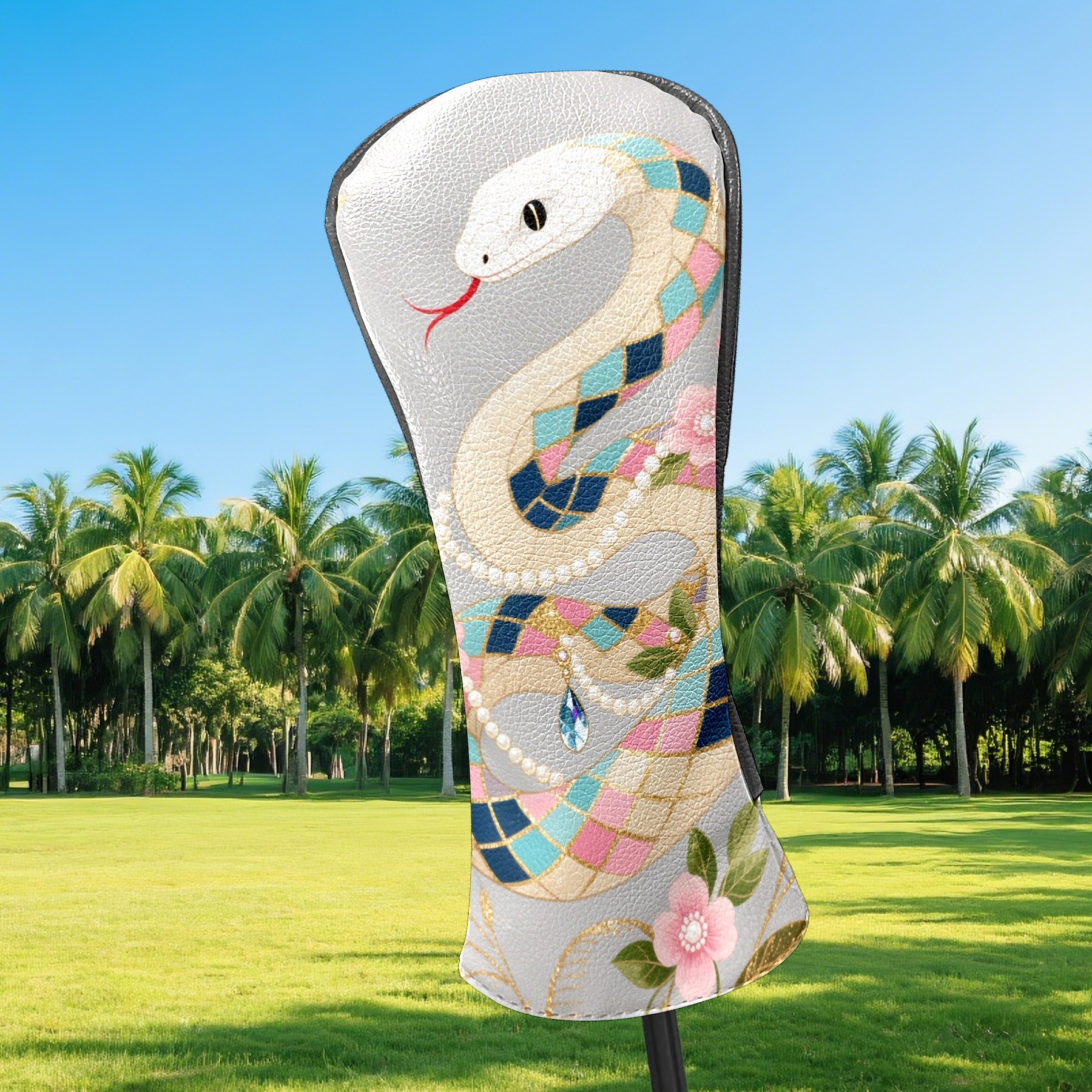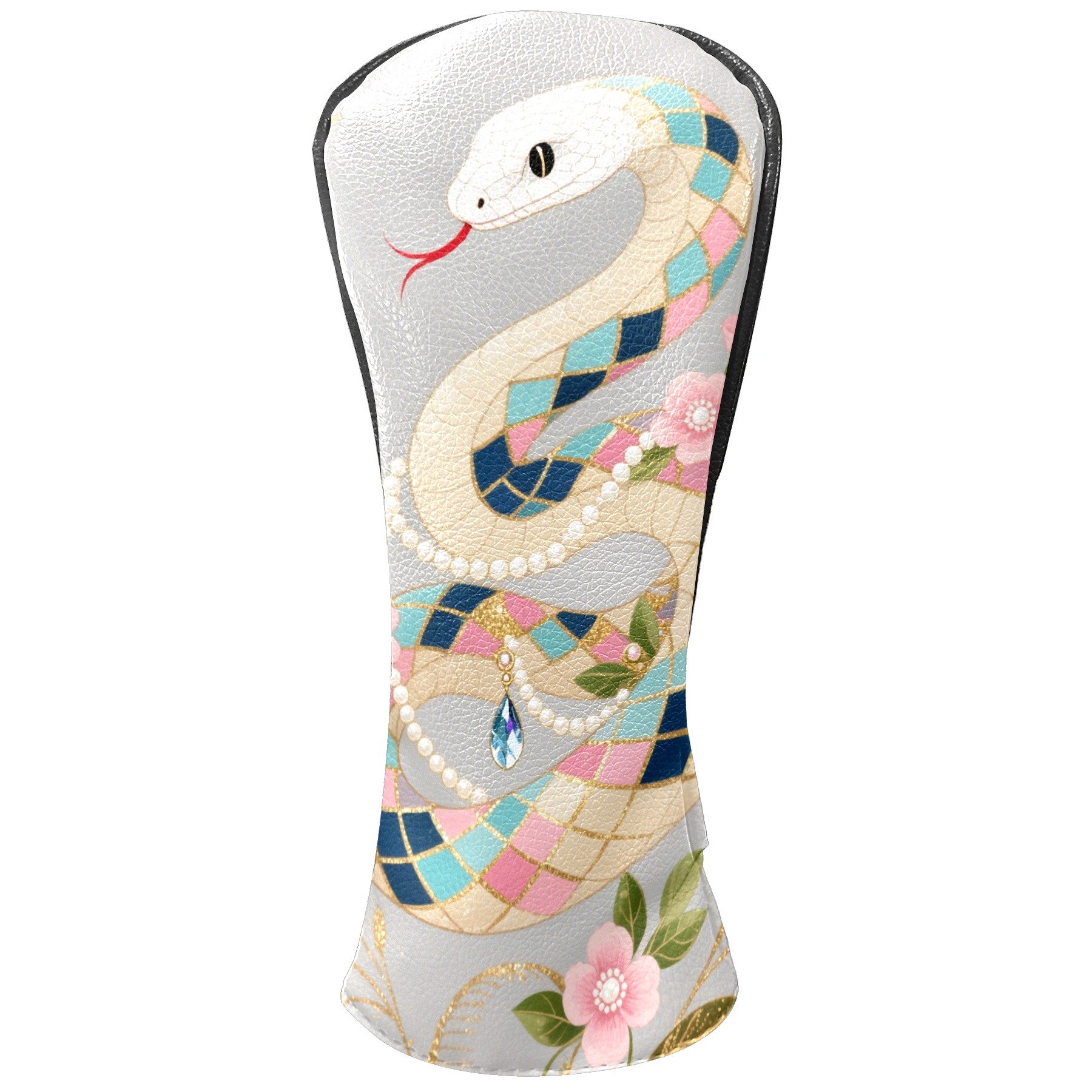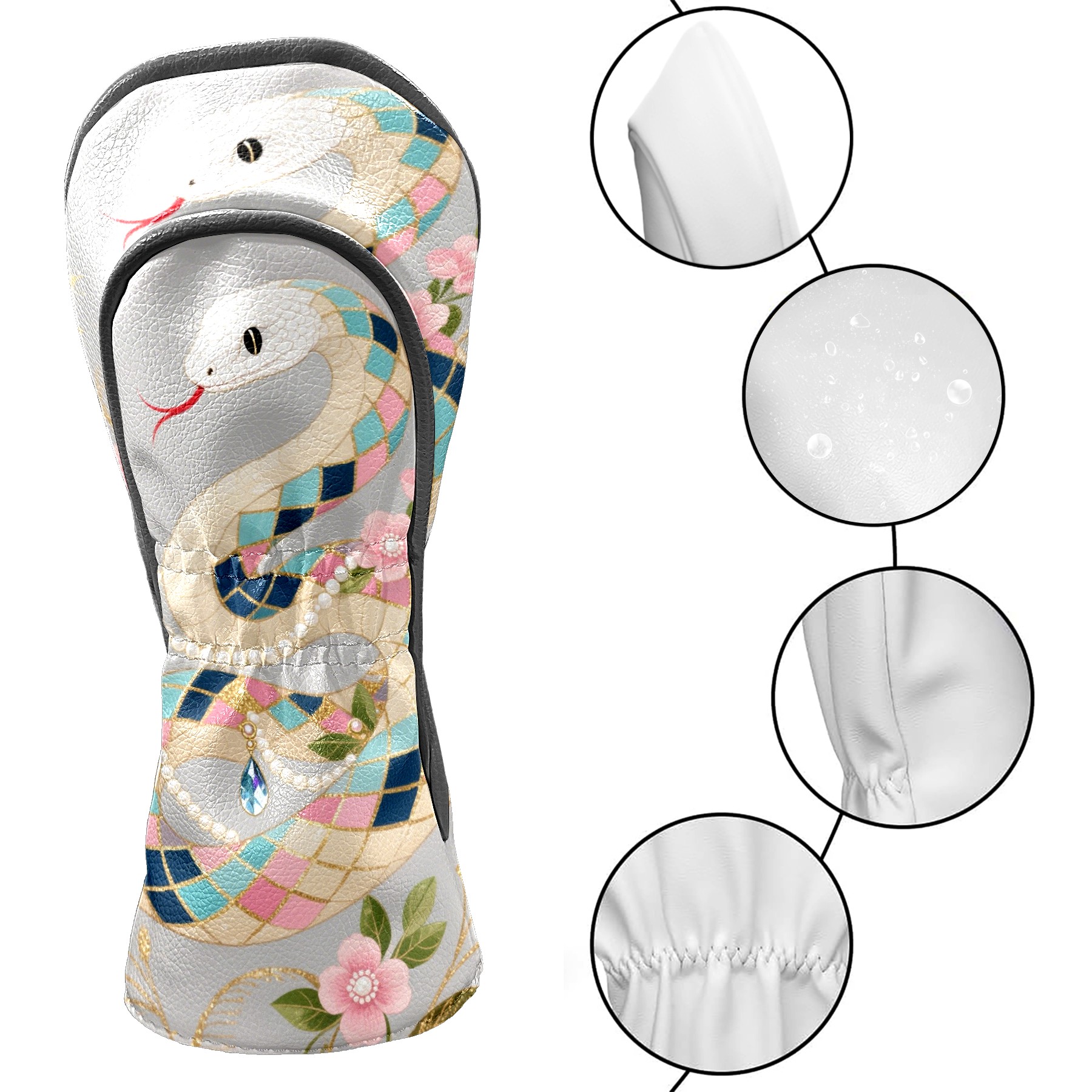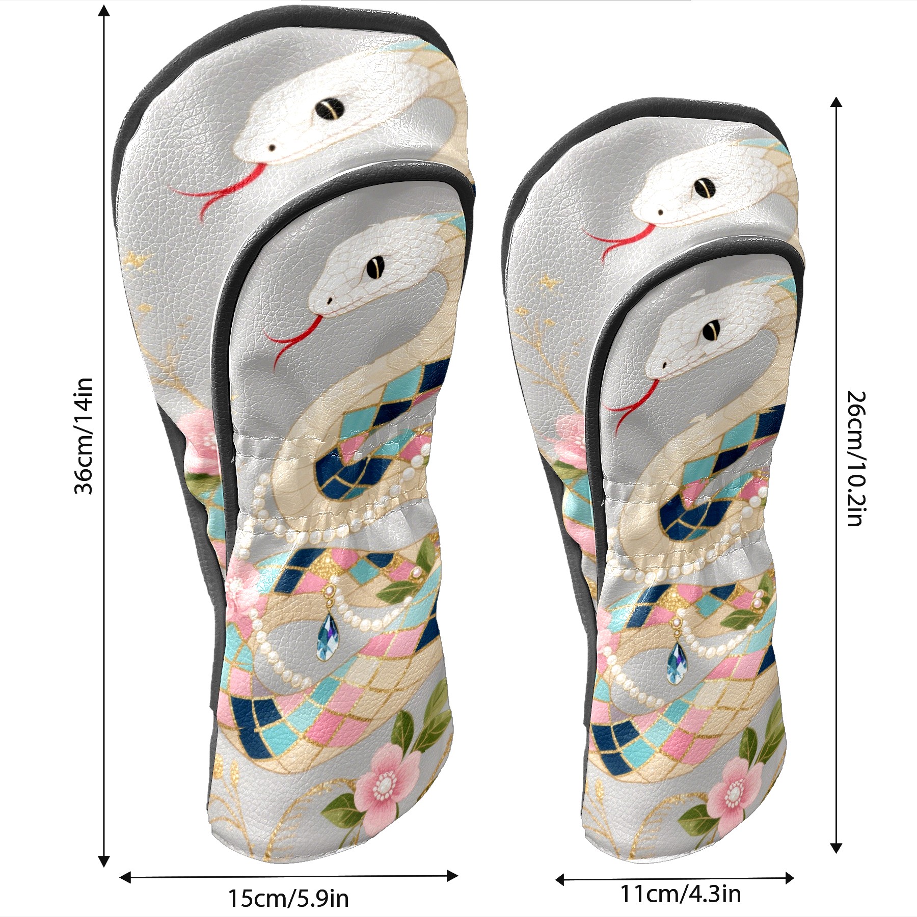 PU Leather Golf Club Head Covers, Fit Driver Head Cover/Fairway Wood Head Cover/Hybrid Club Head Cover, Men and Women Golfer Gift Silver Snake