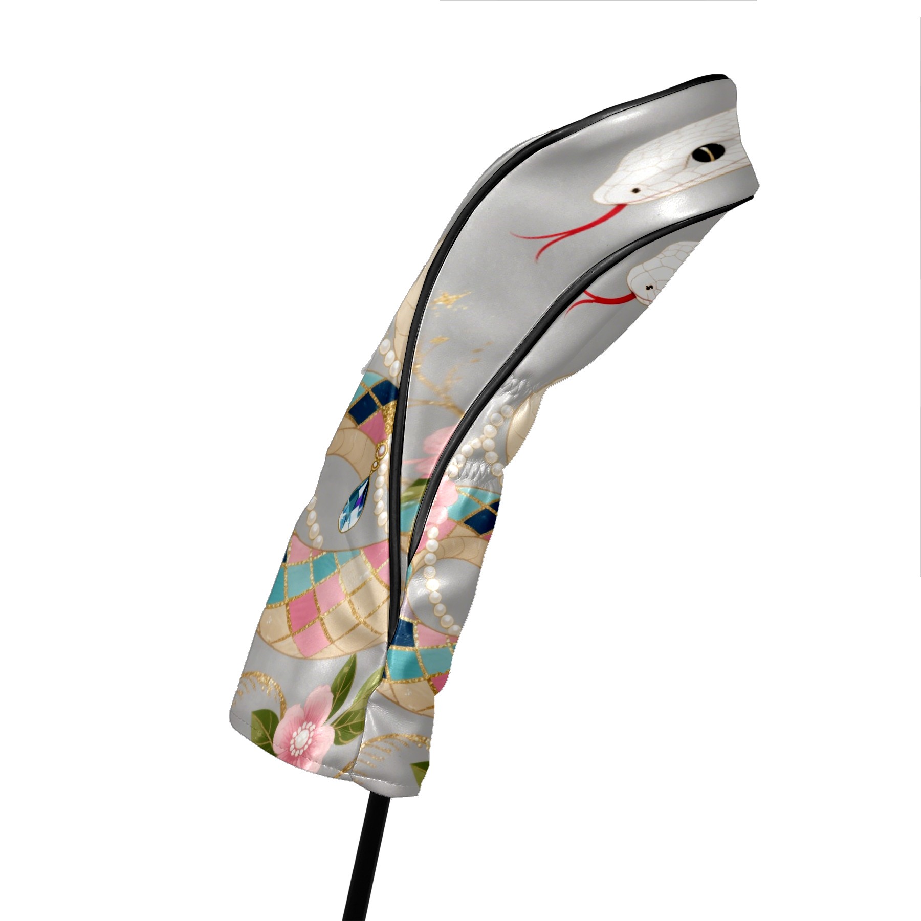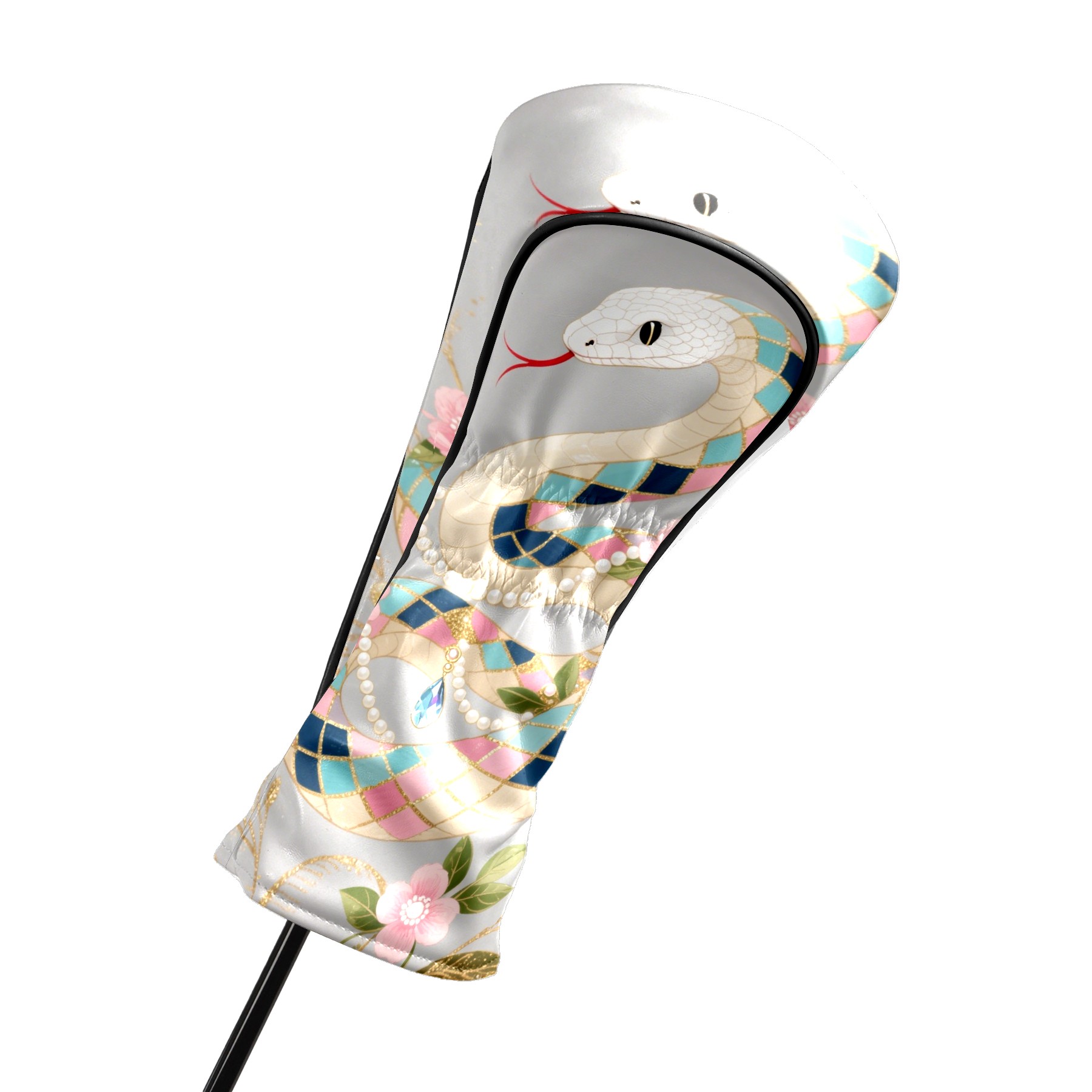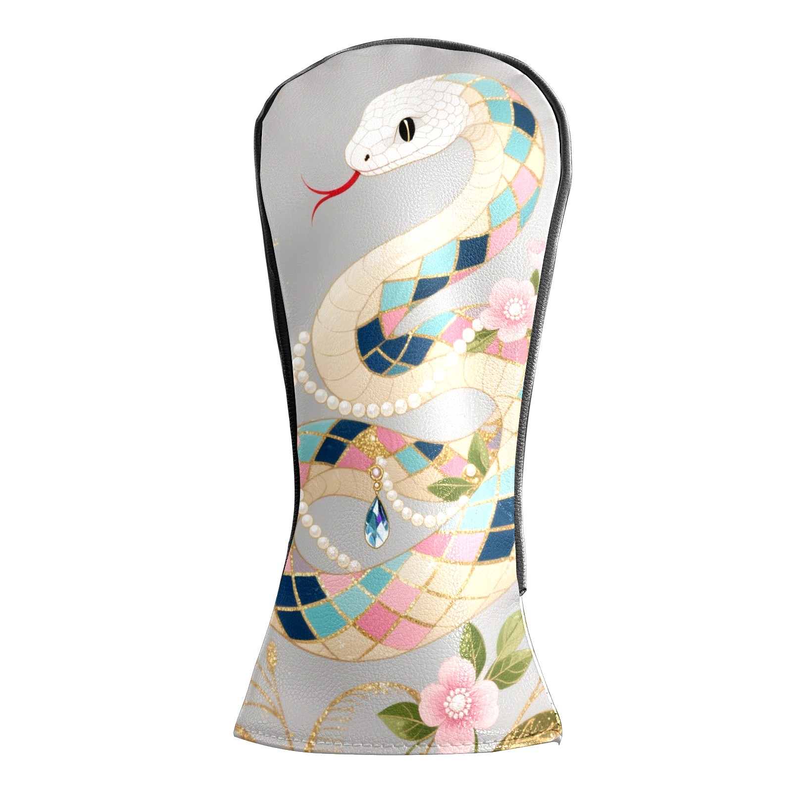 PU Leather Golf Club Head Covers, Fit Driver Head Cover/Fairway Wood Head Cover/Hybrid Club Head Cover, Men and Women Golfer Gift Silver Snake
