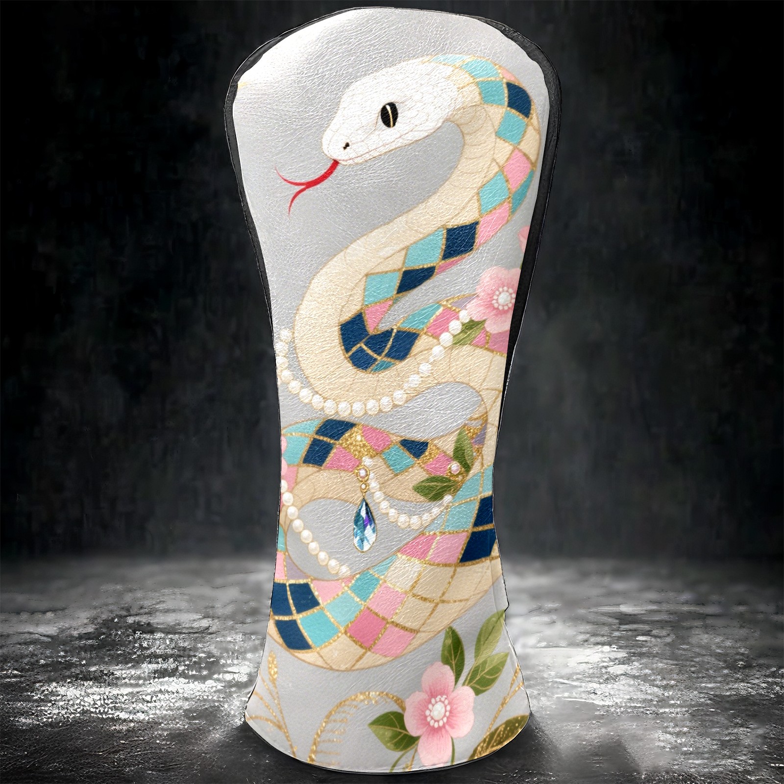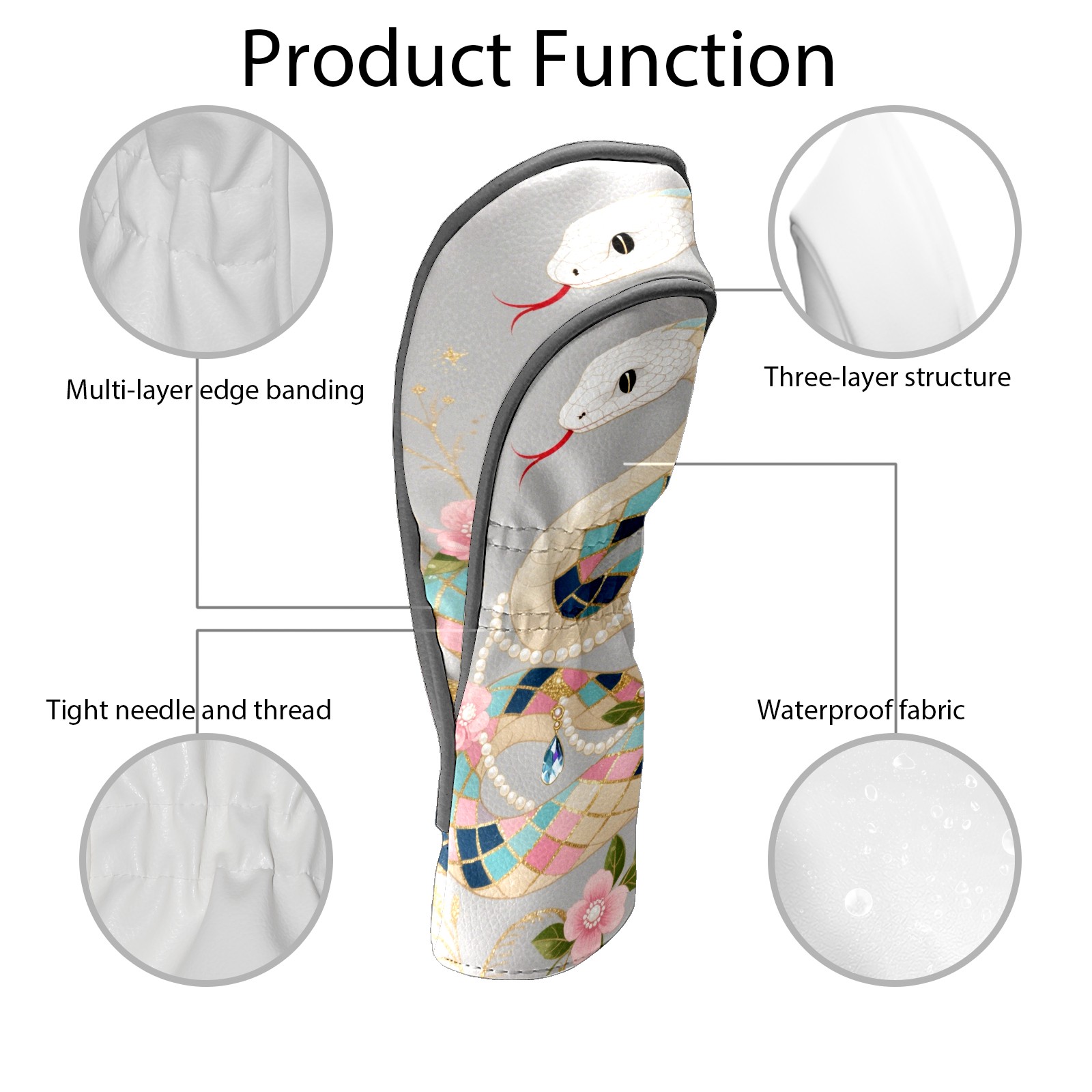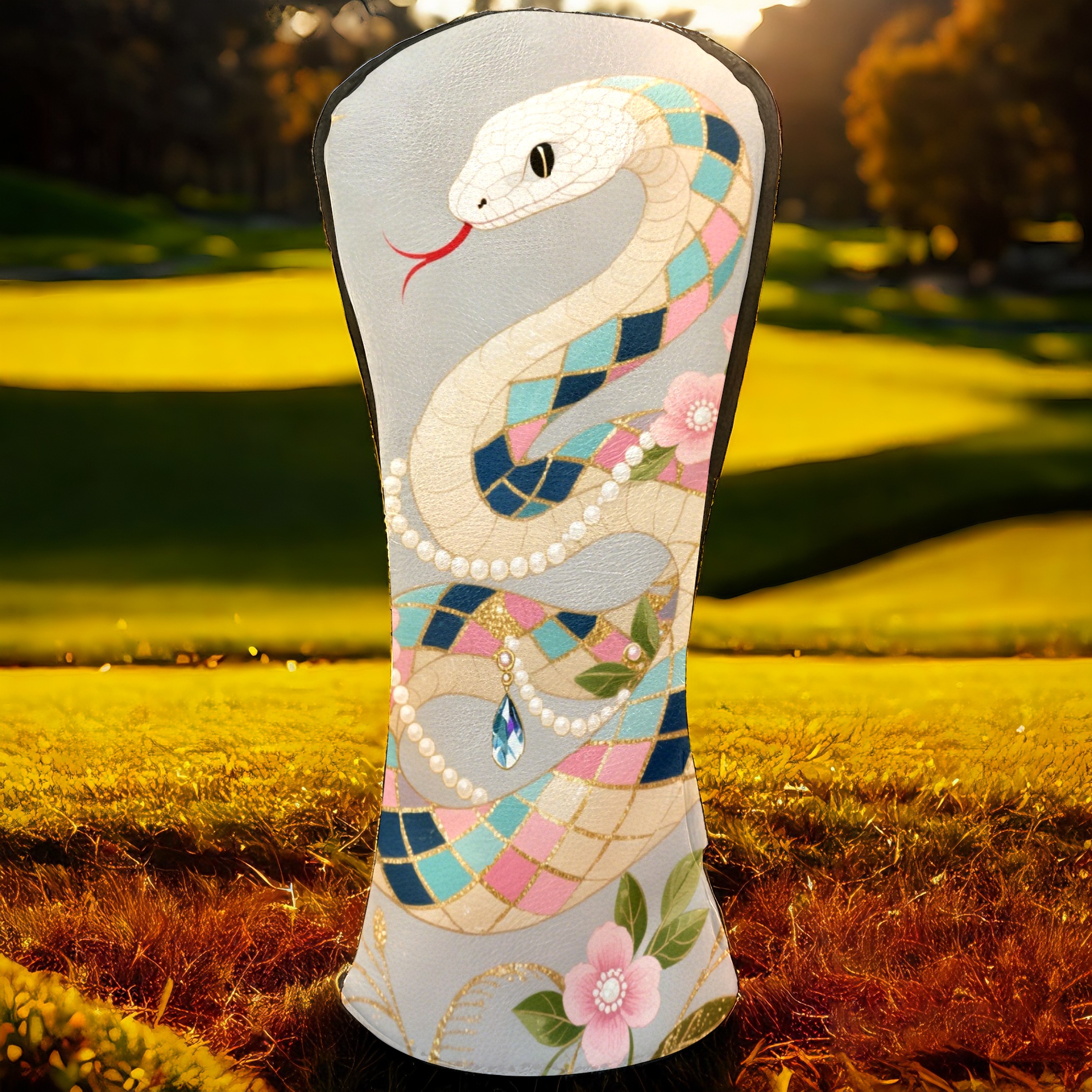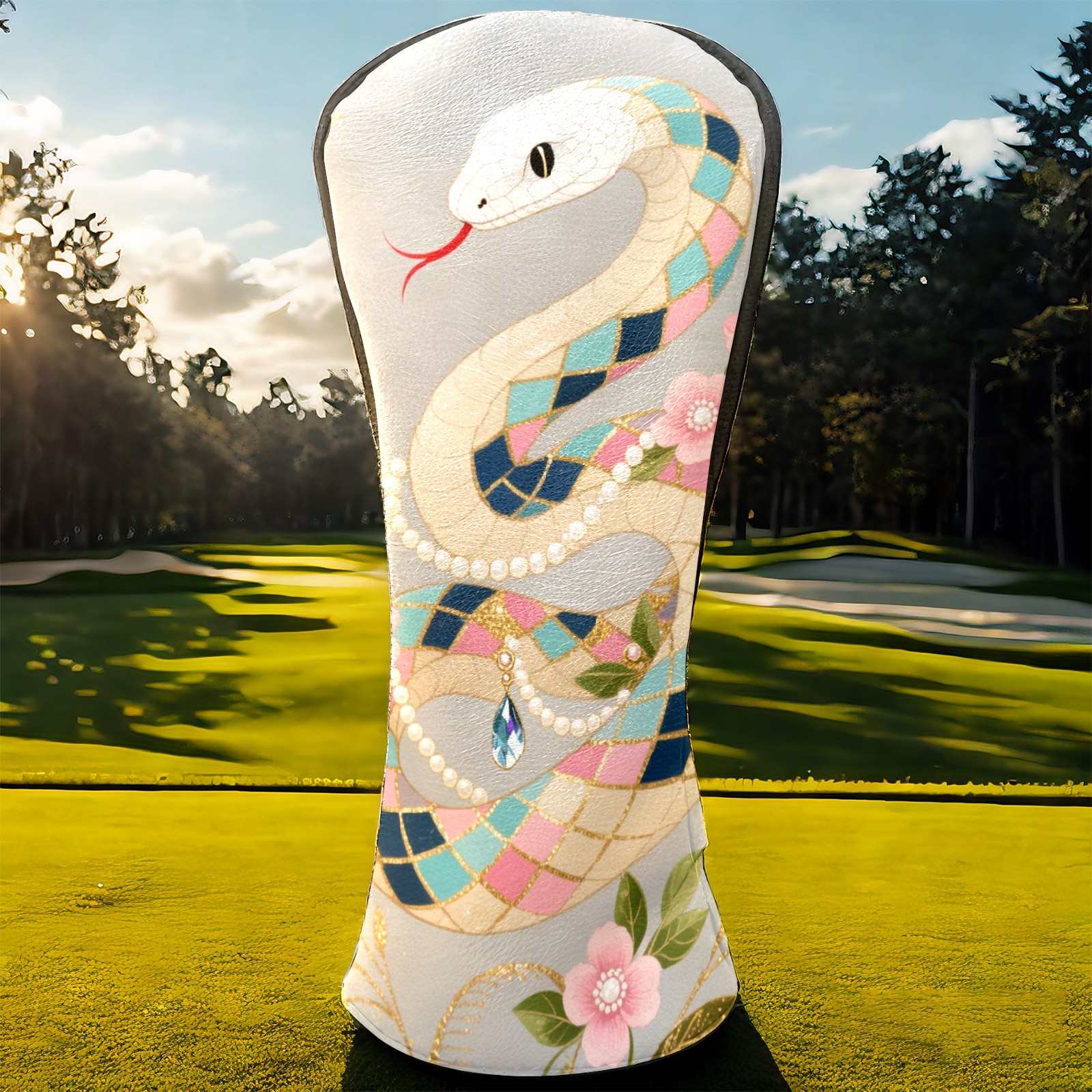 PU Leather Golf Club Head Covers, Fit Driver Head Cover/Fairway Wood Head Cover/Hybrid Club Head Cover, Men and Women Golfer Gift Silver Snake