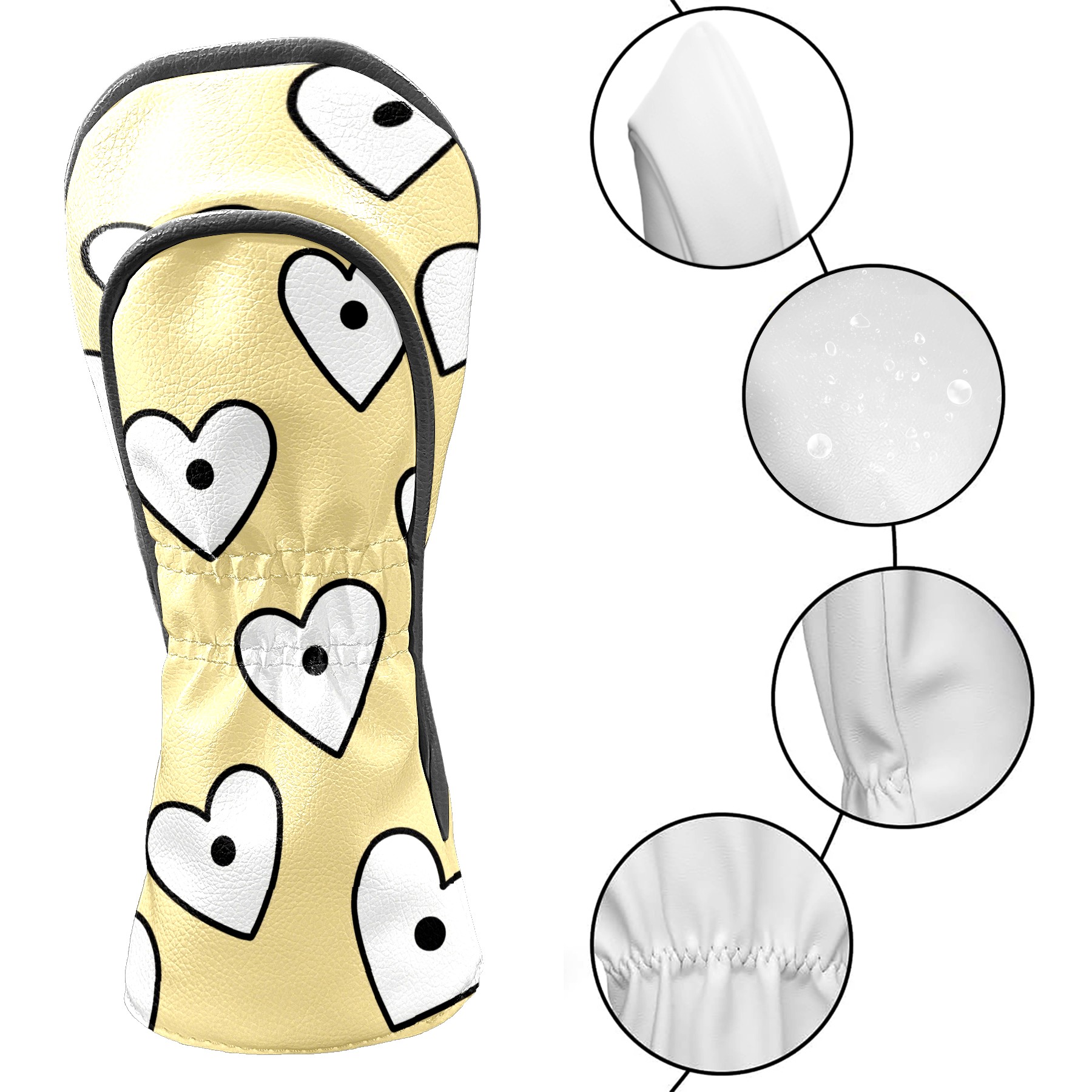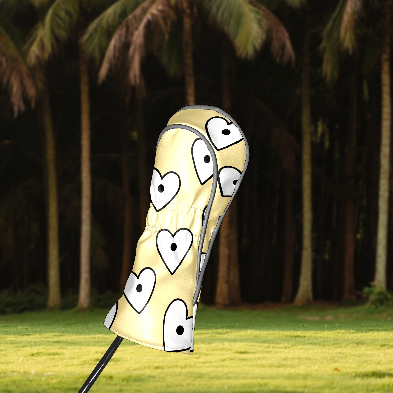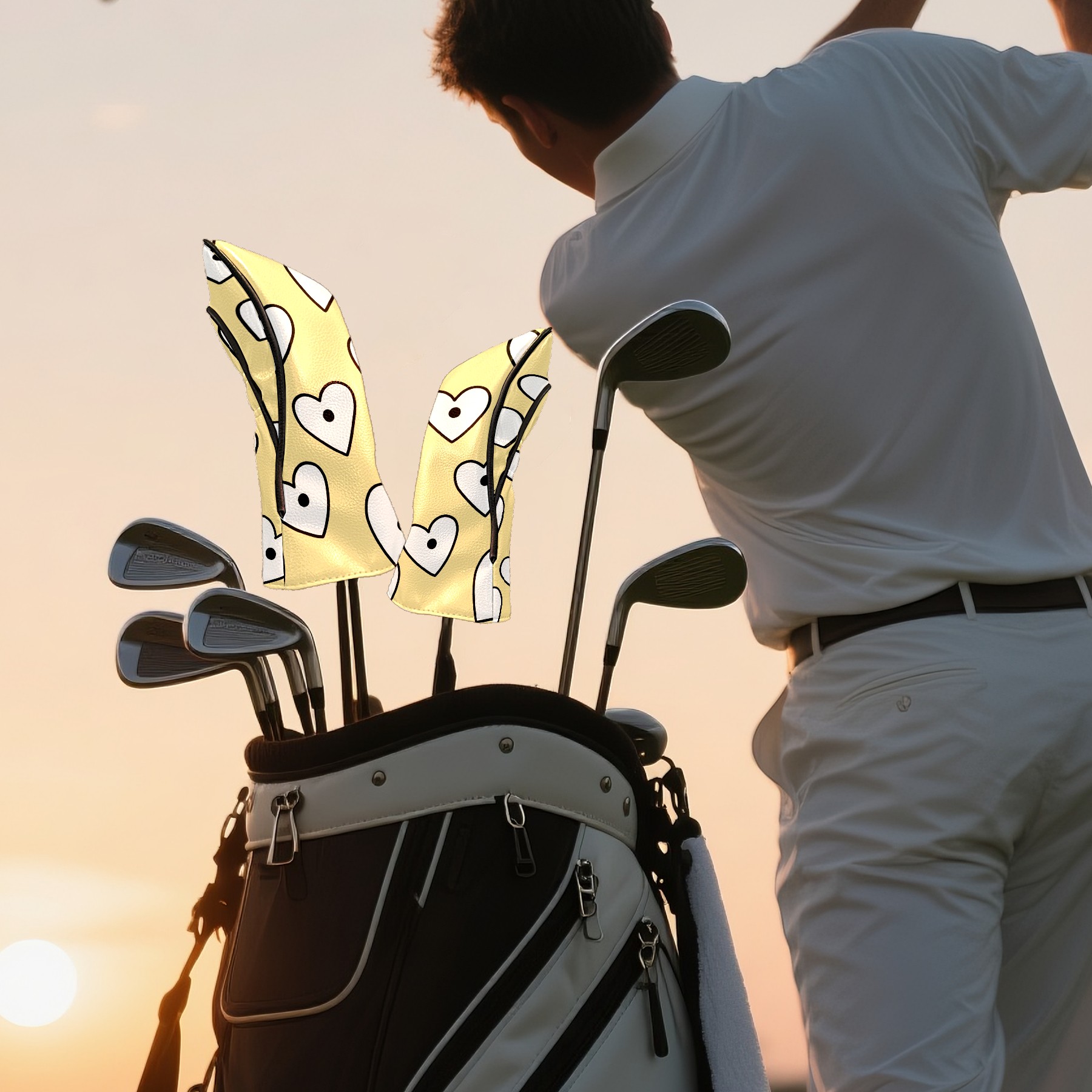 PU Leather Golf Club Head Covers, Fit Driver Head Cover/Fairway Wood Head Cover/Hybrid Club Head Cover, Men and Women Golfer Gift Heart