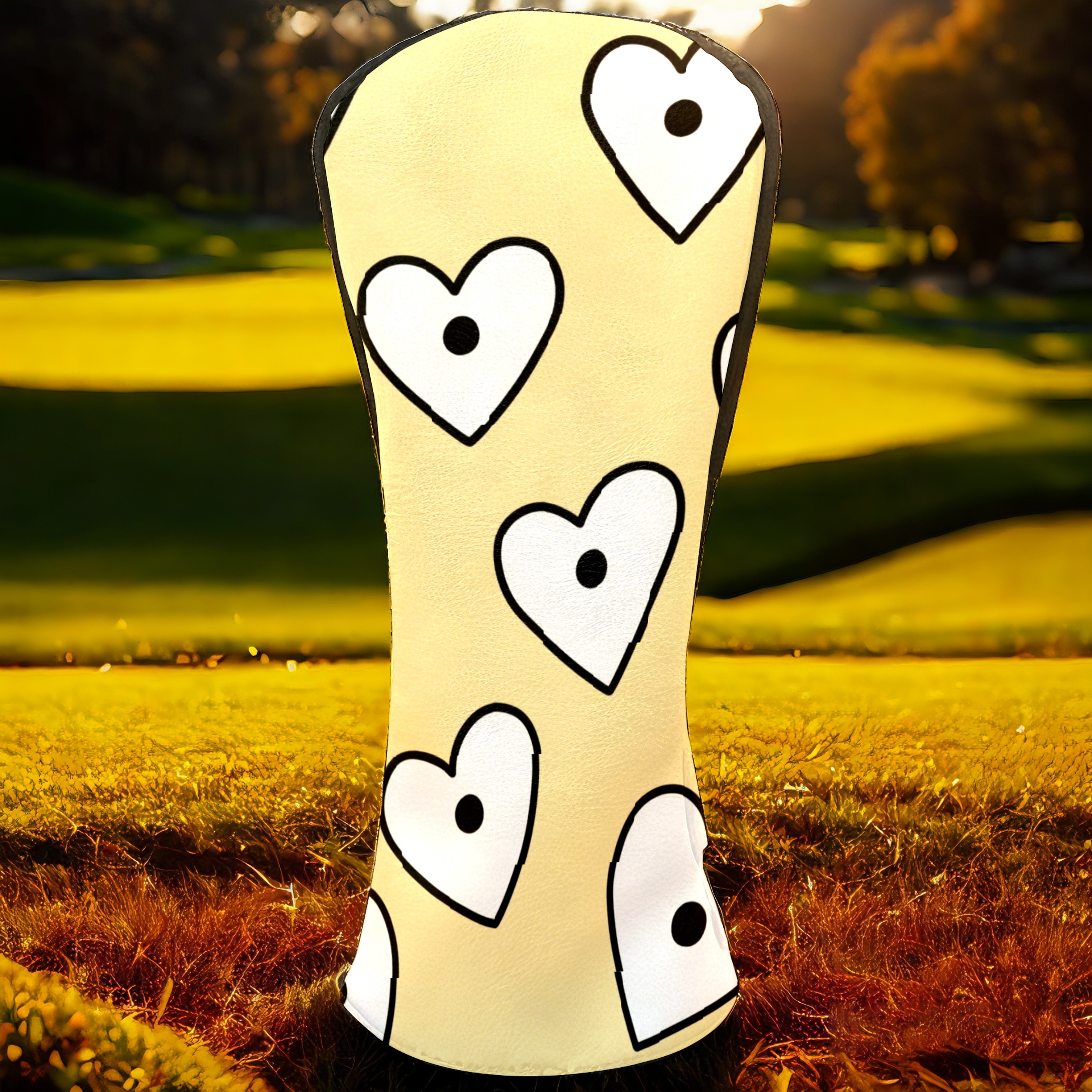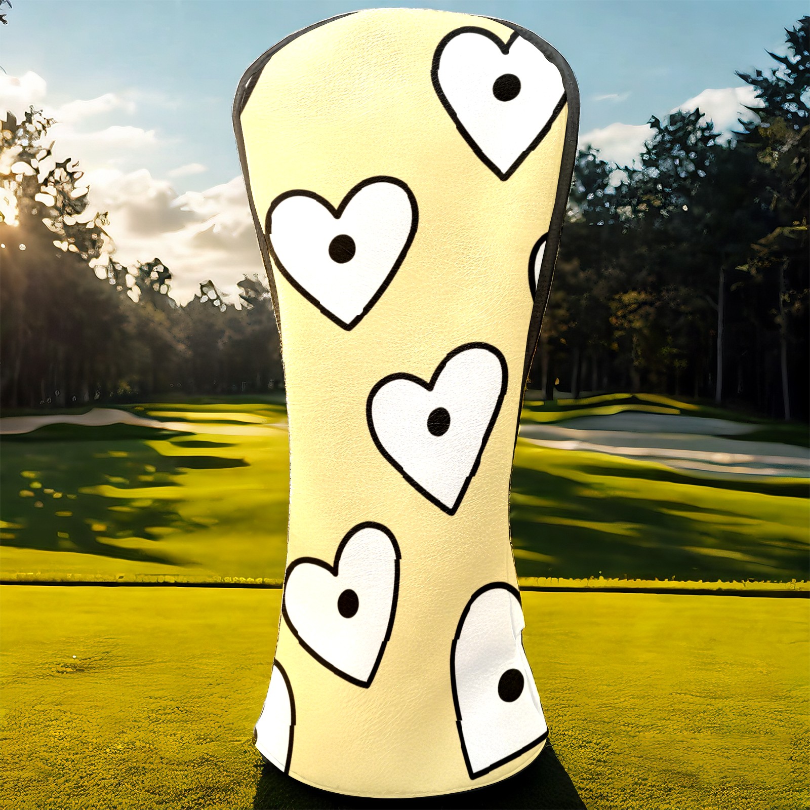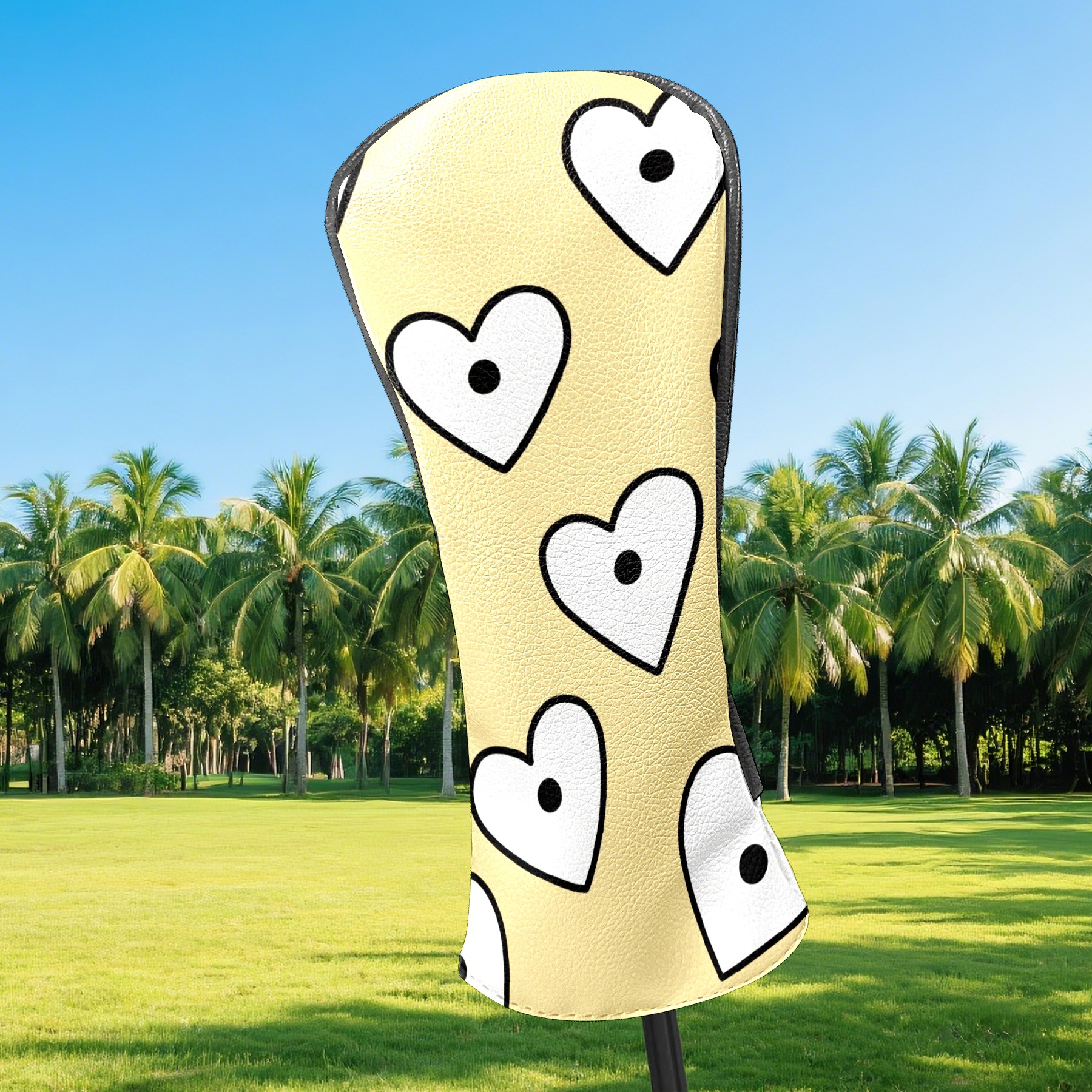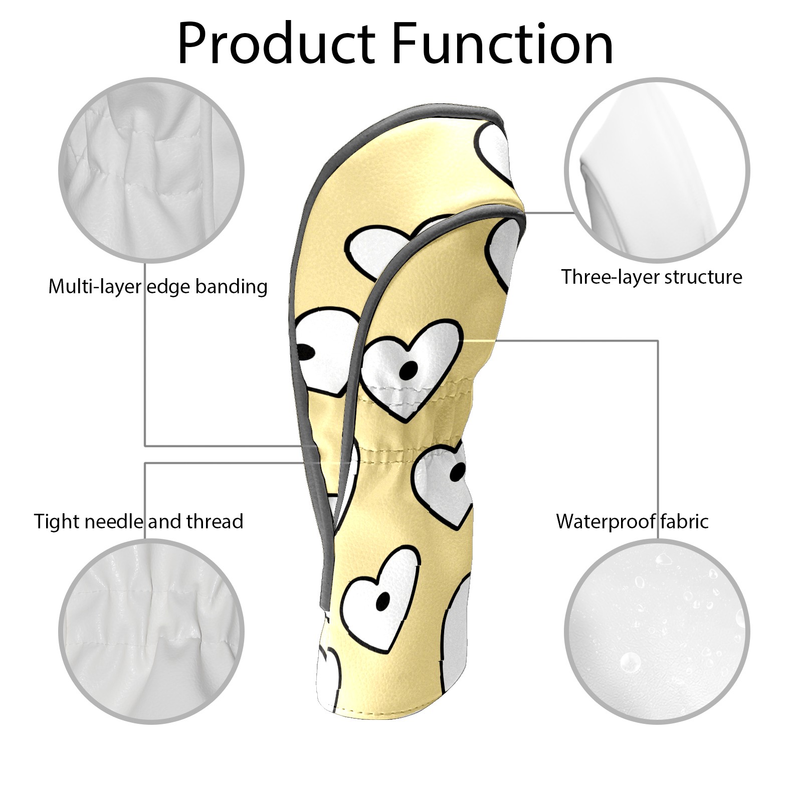 PU Leather Golf Club Head Covers, Fit Driver Head Cover/Fairway Wood Head Cover/Hybrid Club Head Cover, Men and Women Golfer Gift Heart