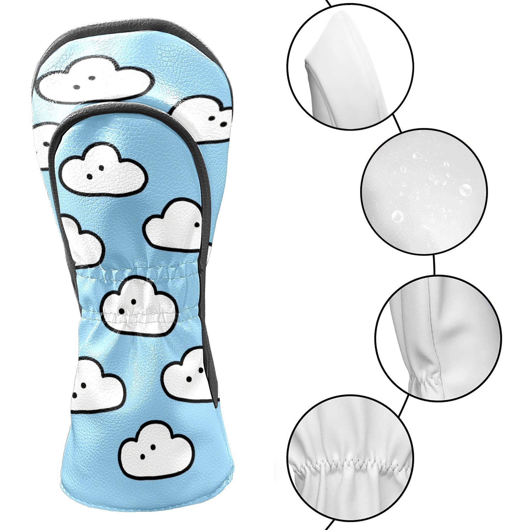 PU Leather Golf Club Head Covers, Fit Driver Head Cover/Fairway Wood Head Cover/Hybrid Club Head Cover, Men and Women Golfer Gift Cloud